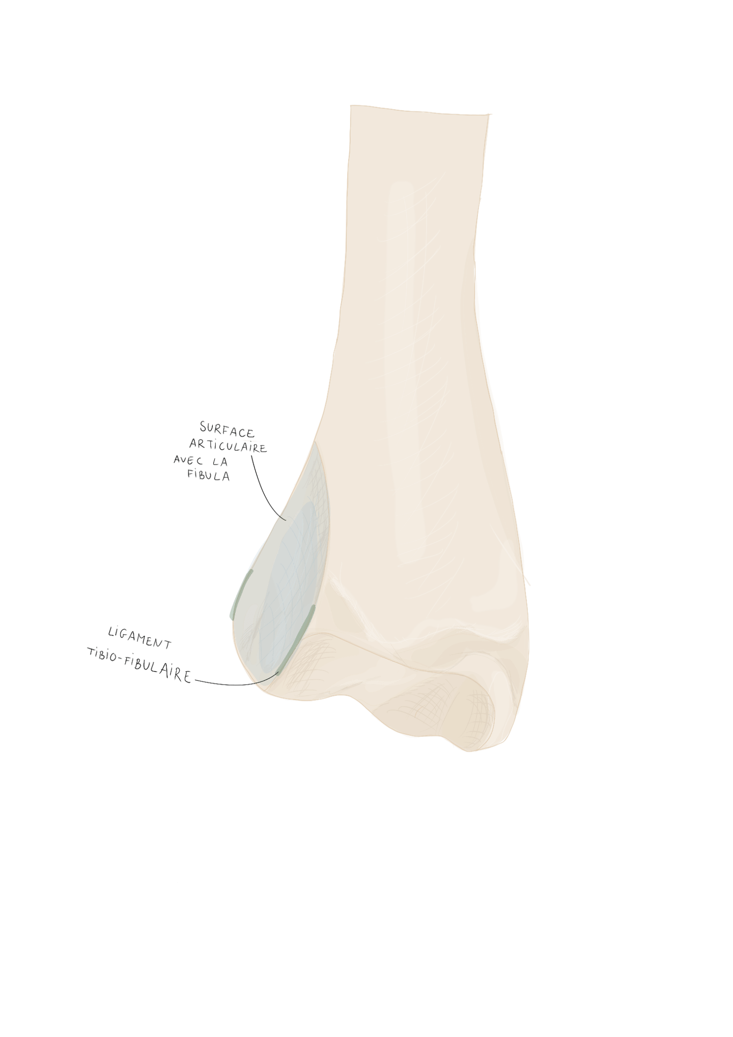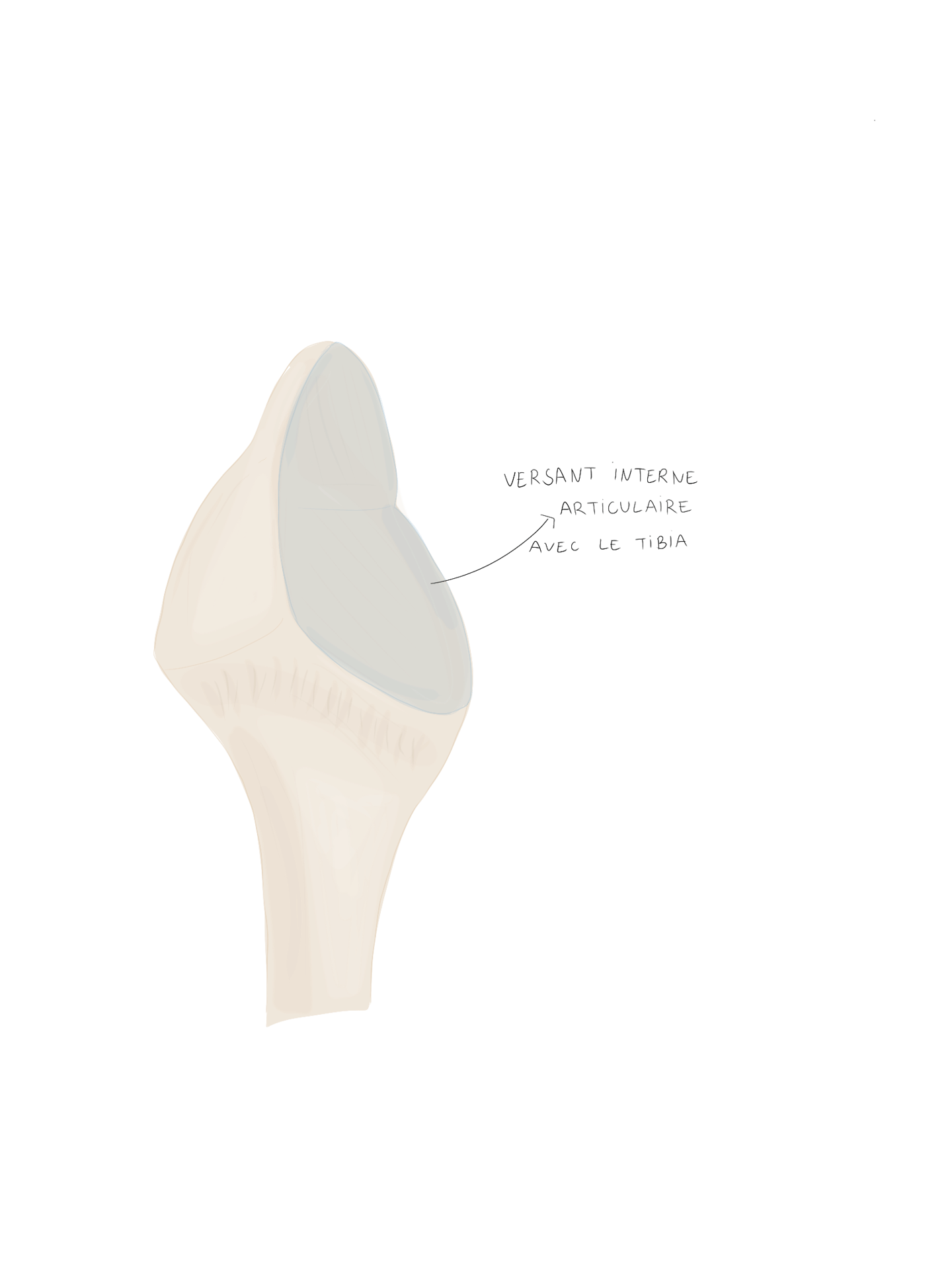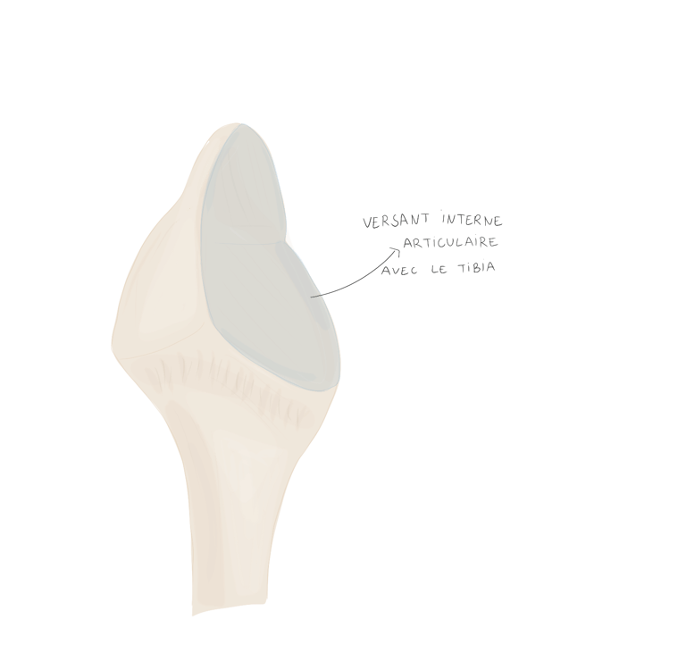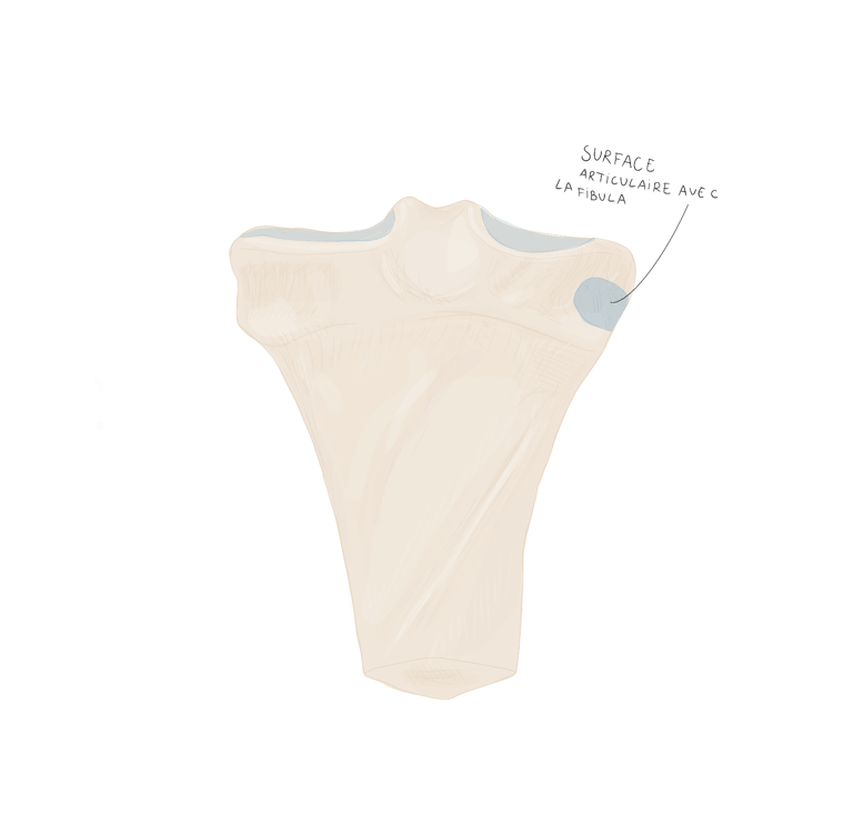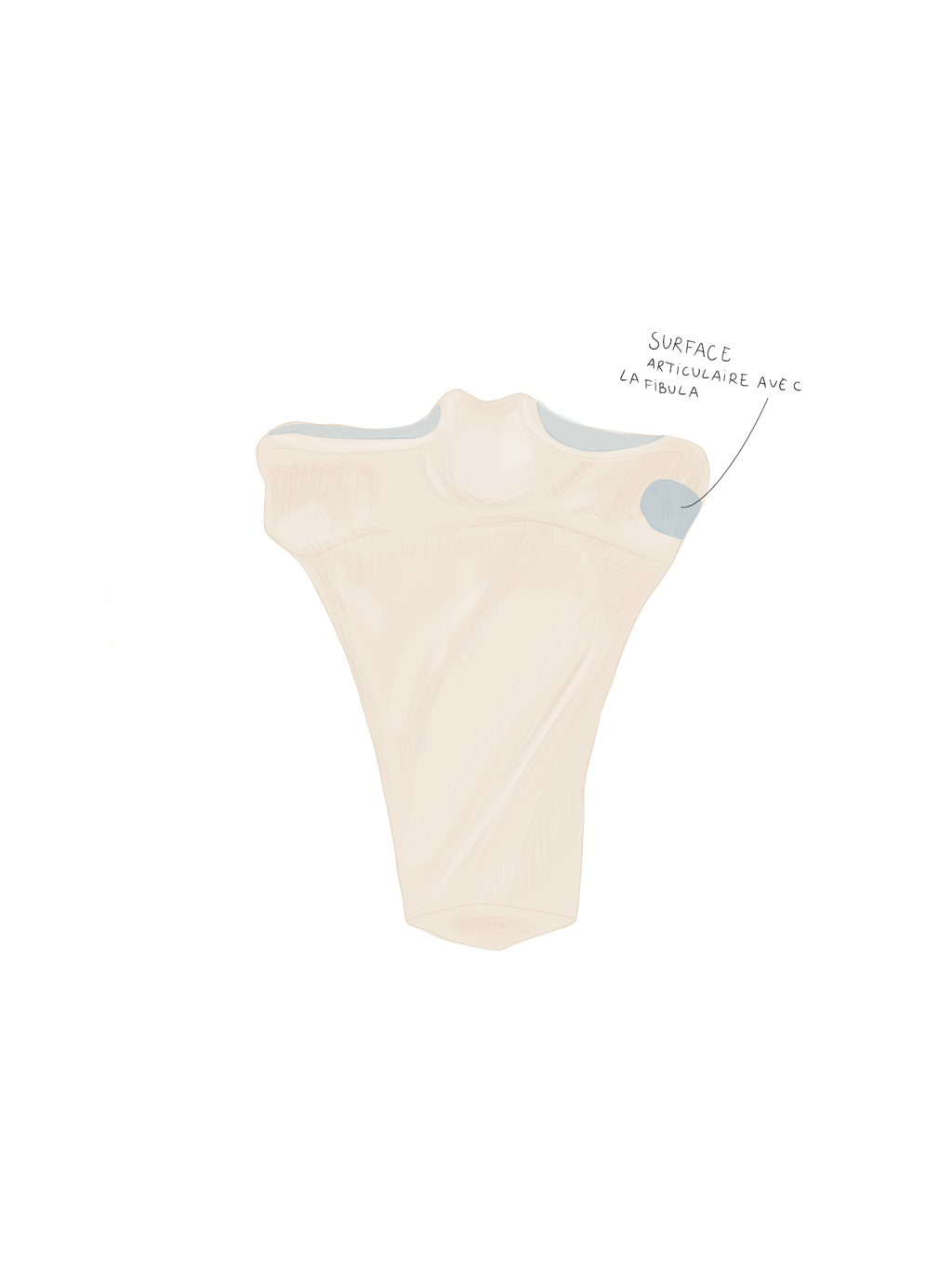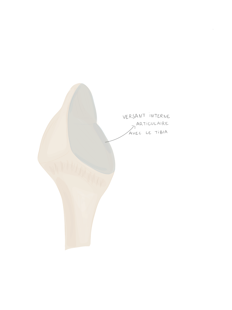 face antérieure du 1er cunéiforme ainsi que sa face latérale, surface antérieur.