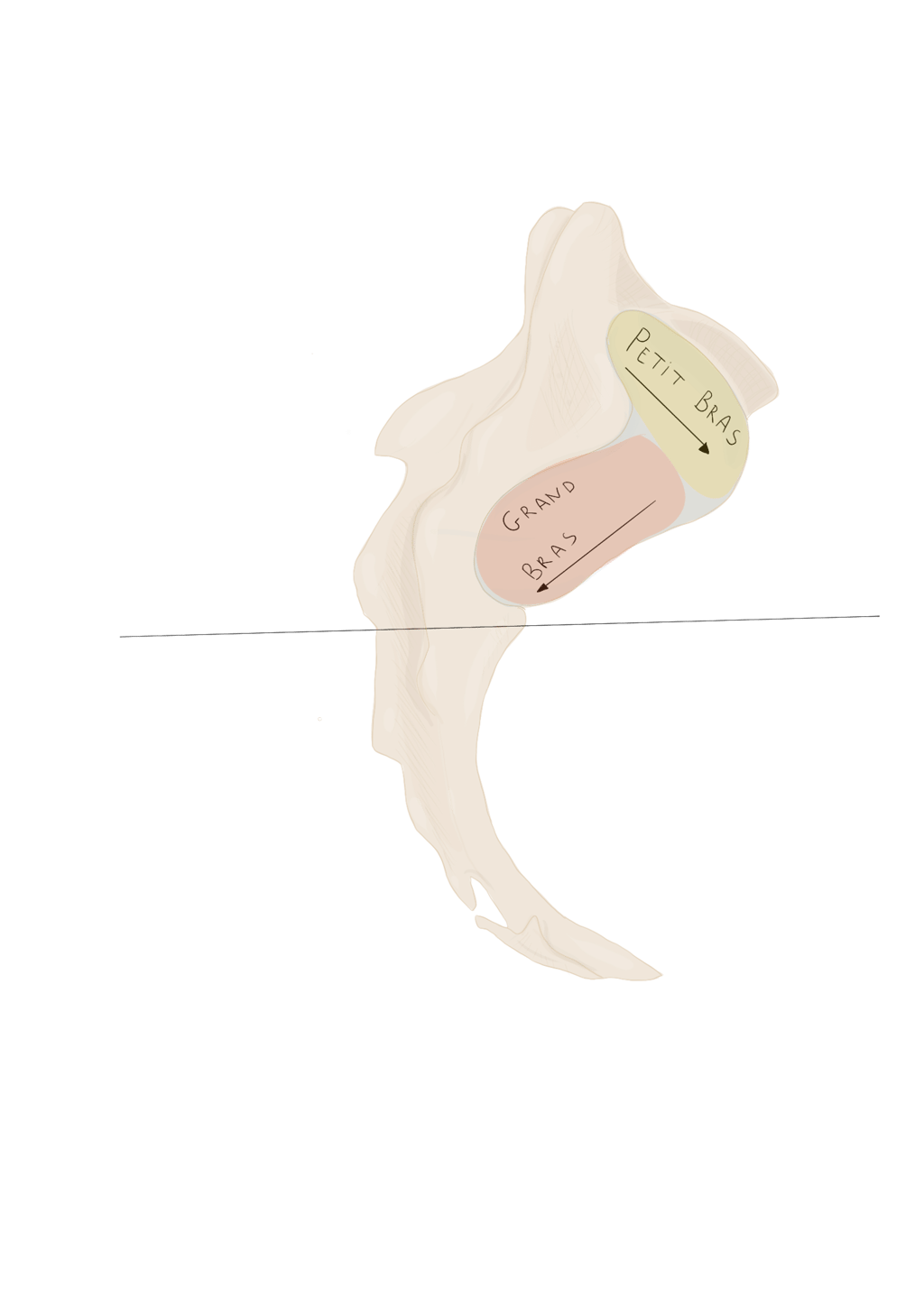De C3 partent 2 ligaments qui vont à M3 et M4.