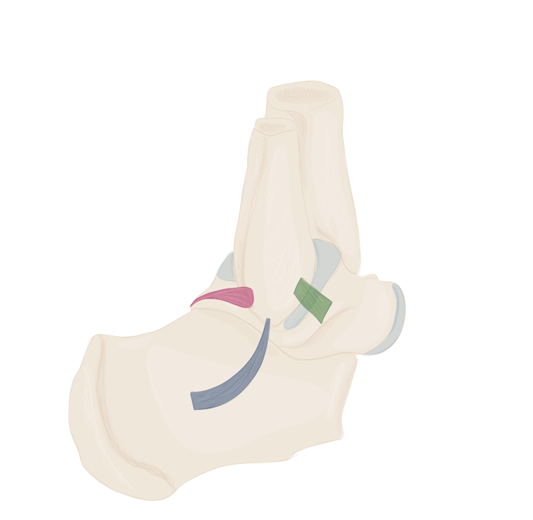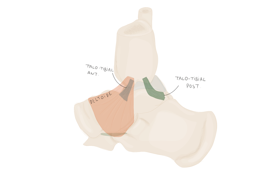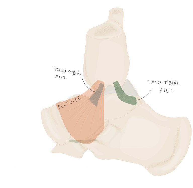 Terminaison : jusqu’à la face dorsale des cunéiformes.