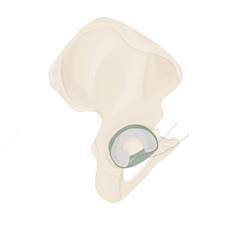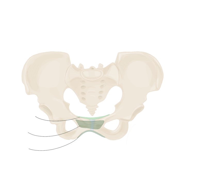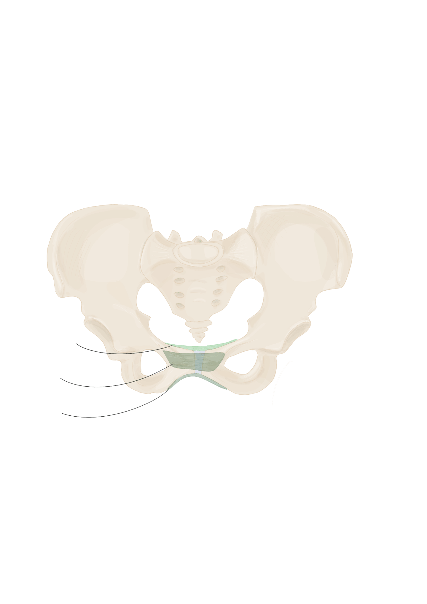 Il est tendu entre les 2 branches descendantes du pubis à leur partie inférieure.