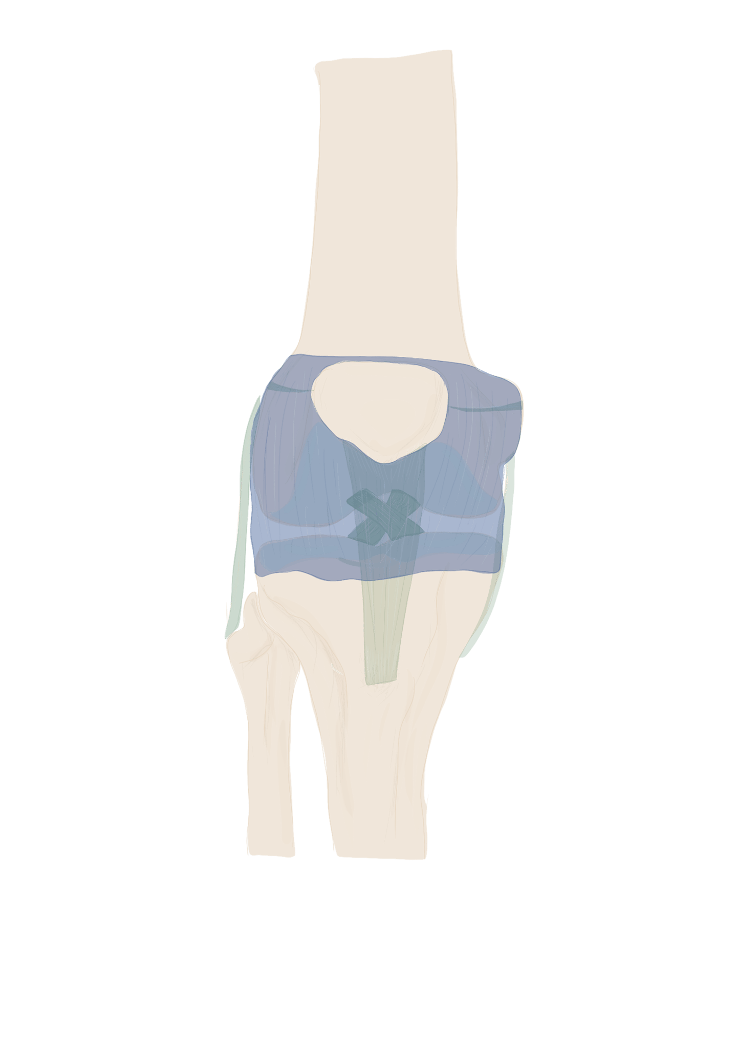 S'insère au pourtour des surfaces articulaires et tapisse la face profonde de la capsule