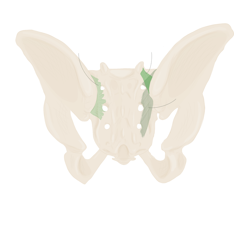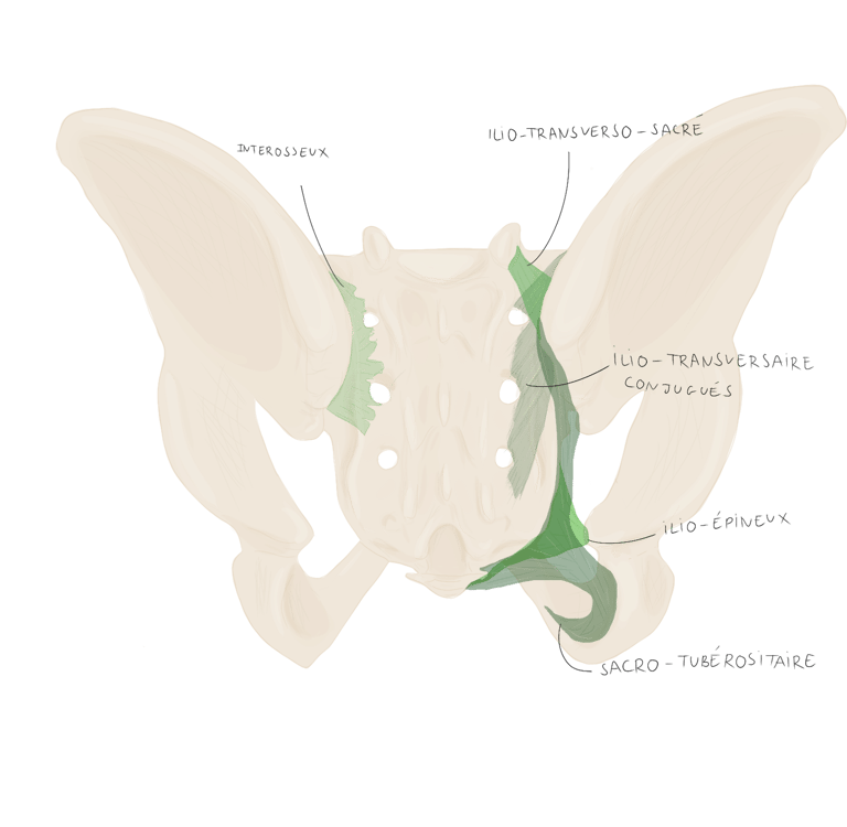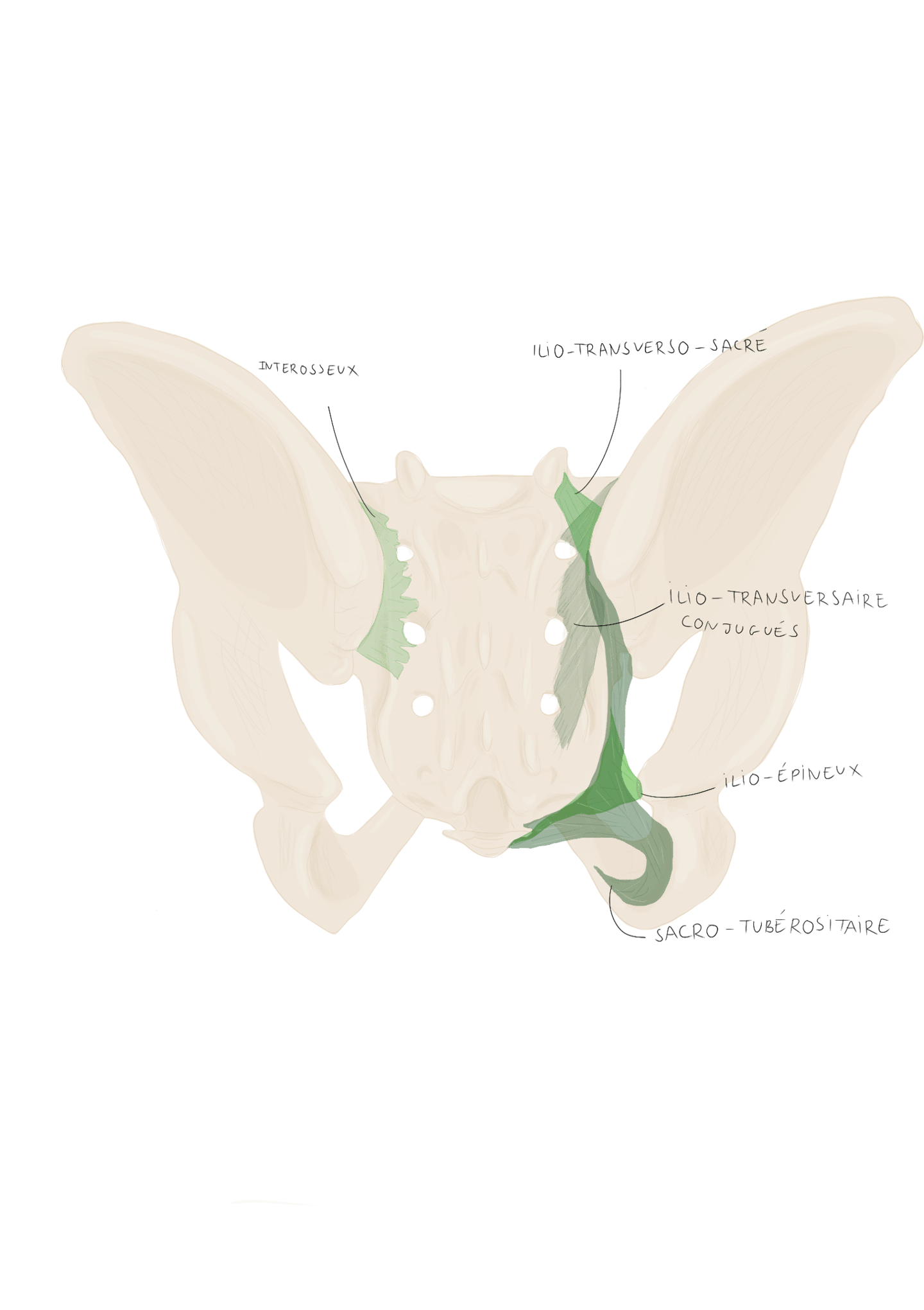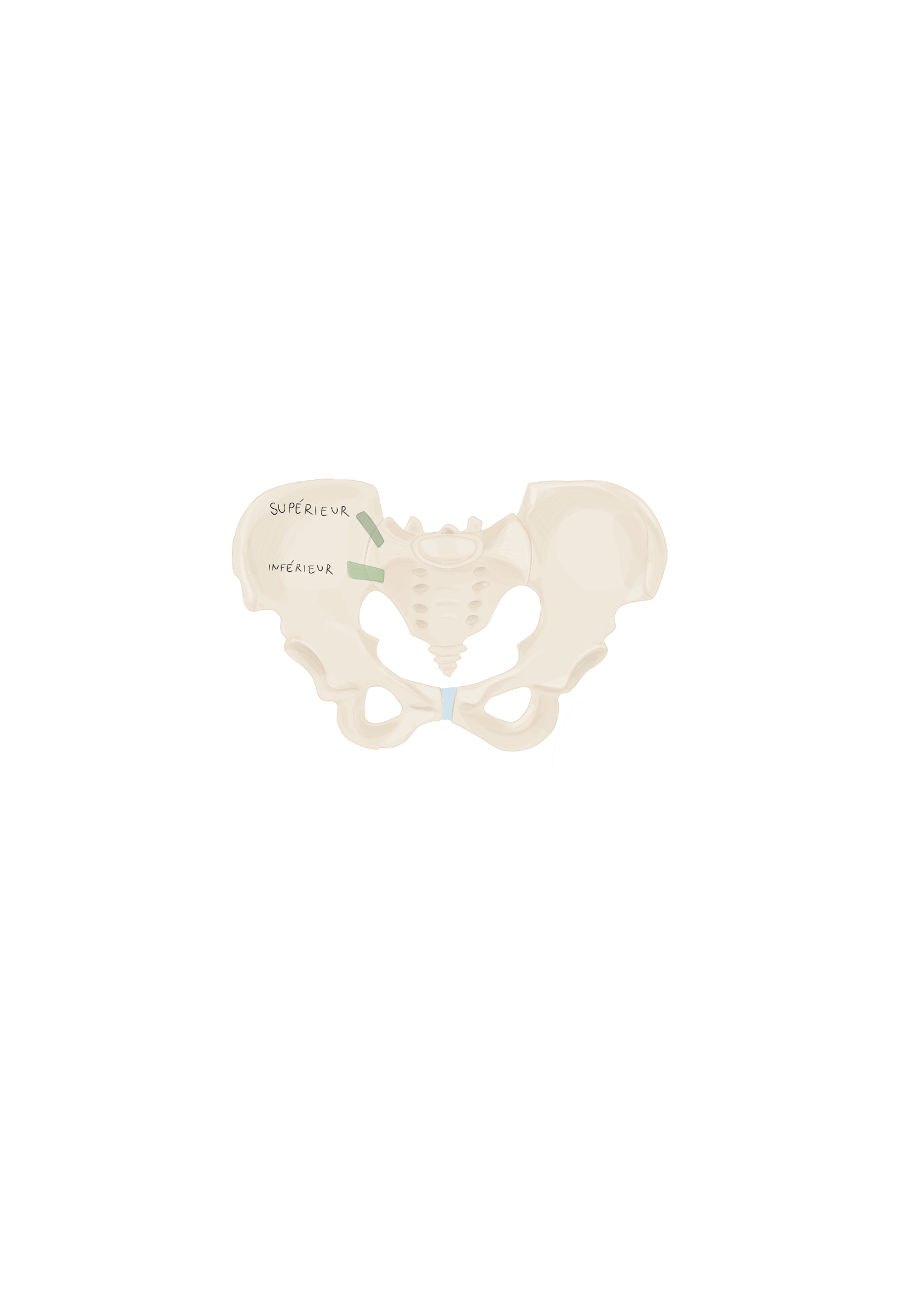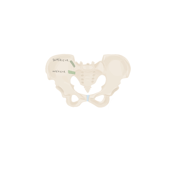 Tendu : entre l'extrémité postérieure de la crête iliaque → bord postérieur de l'aileron sacré