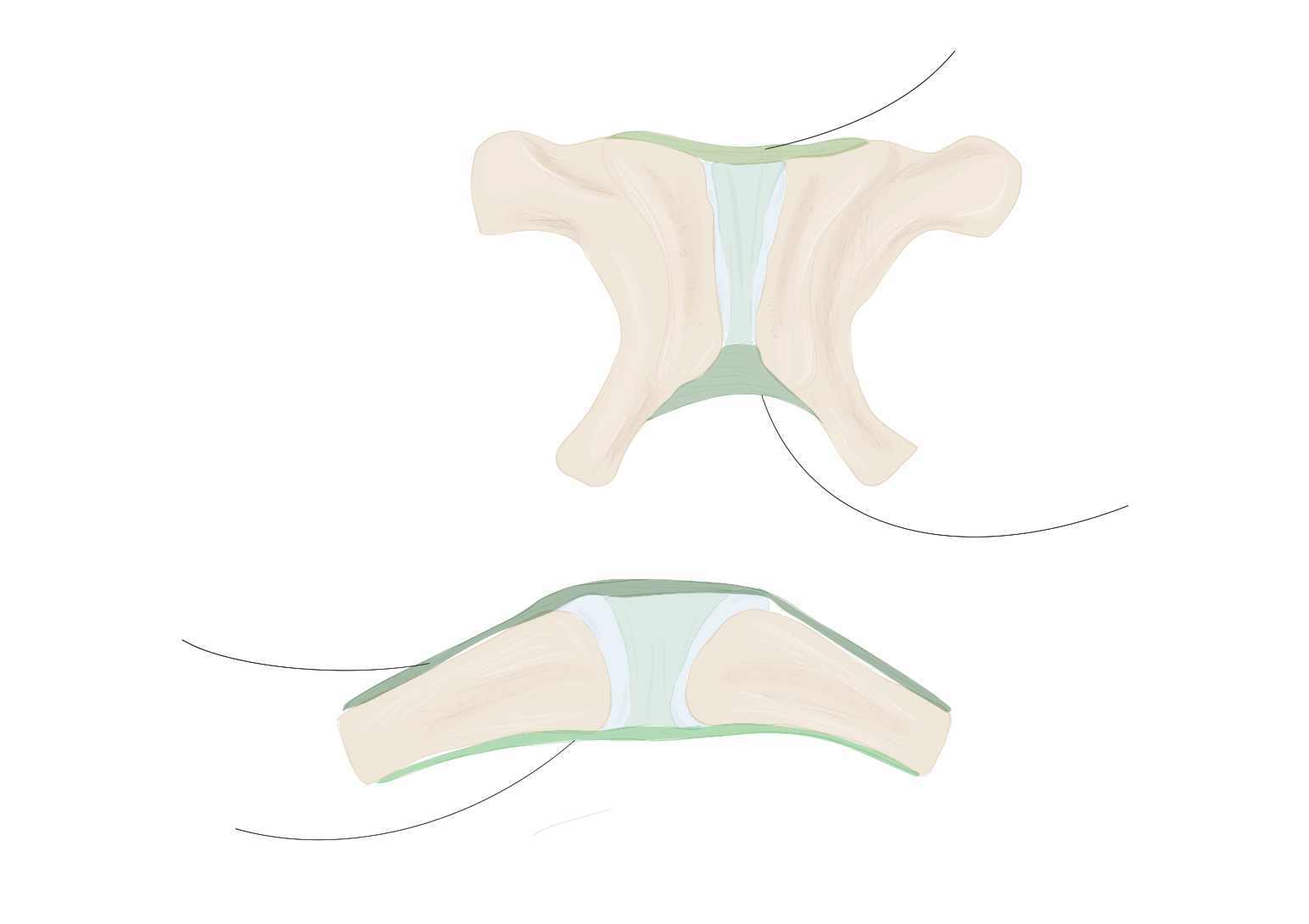 syndesmose : articulation ou les srufaces osseuse sont éloignés l'une de l'autre et unis par une vaste formation de tissus conjonctif