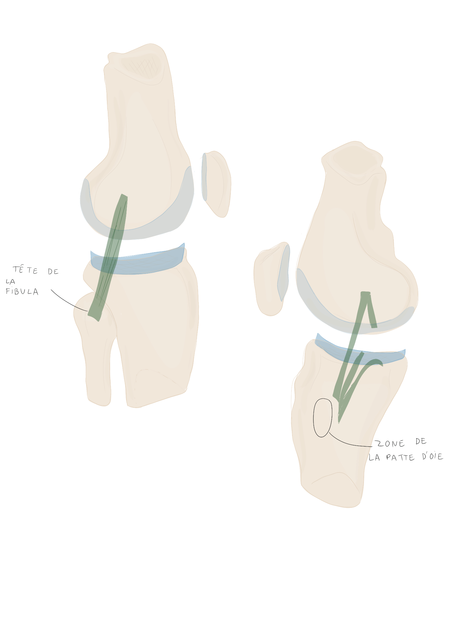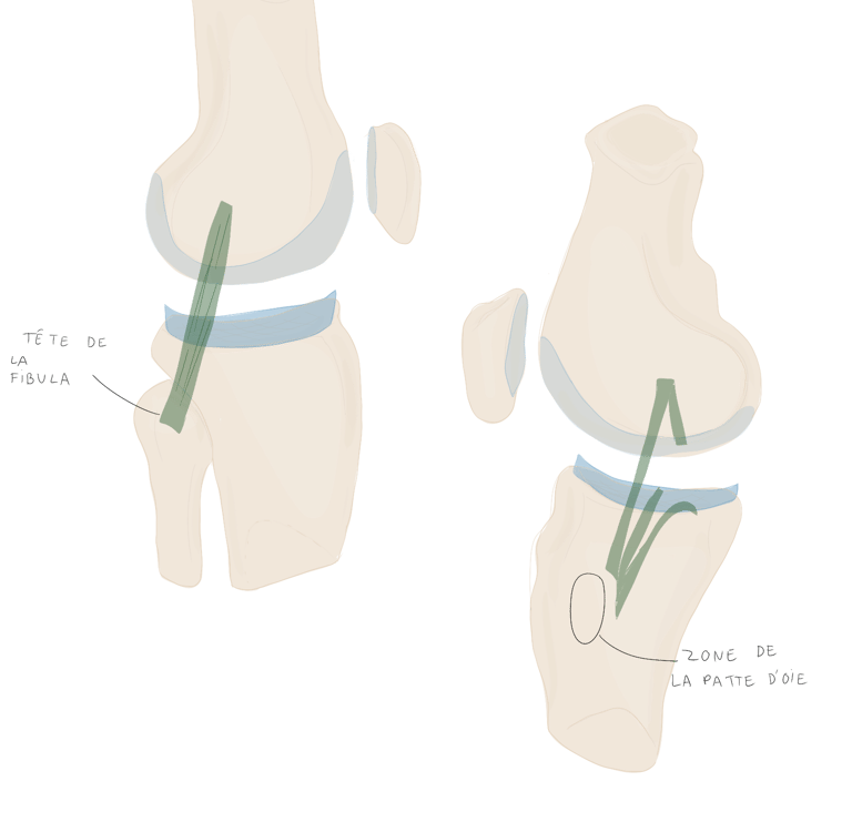 Tendu : de la tubérosité iliaque jusqu'aux 2 premières fosses criblée