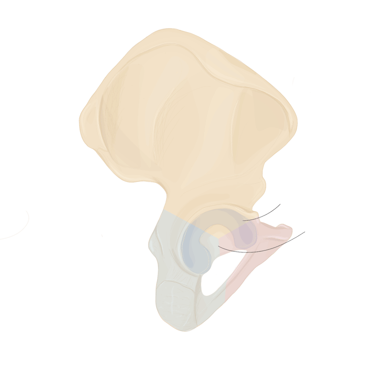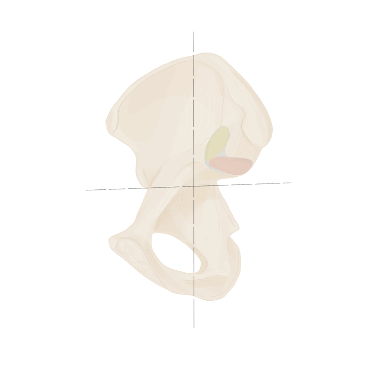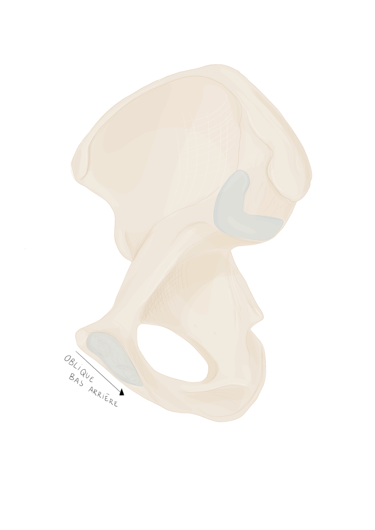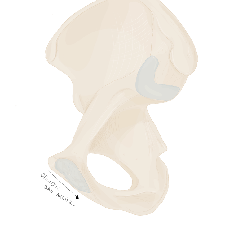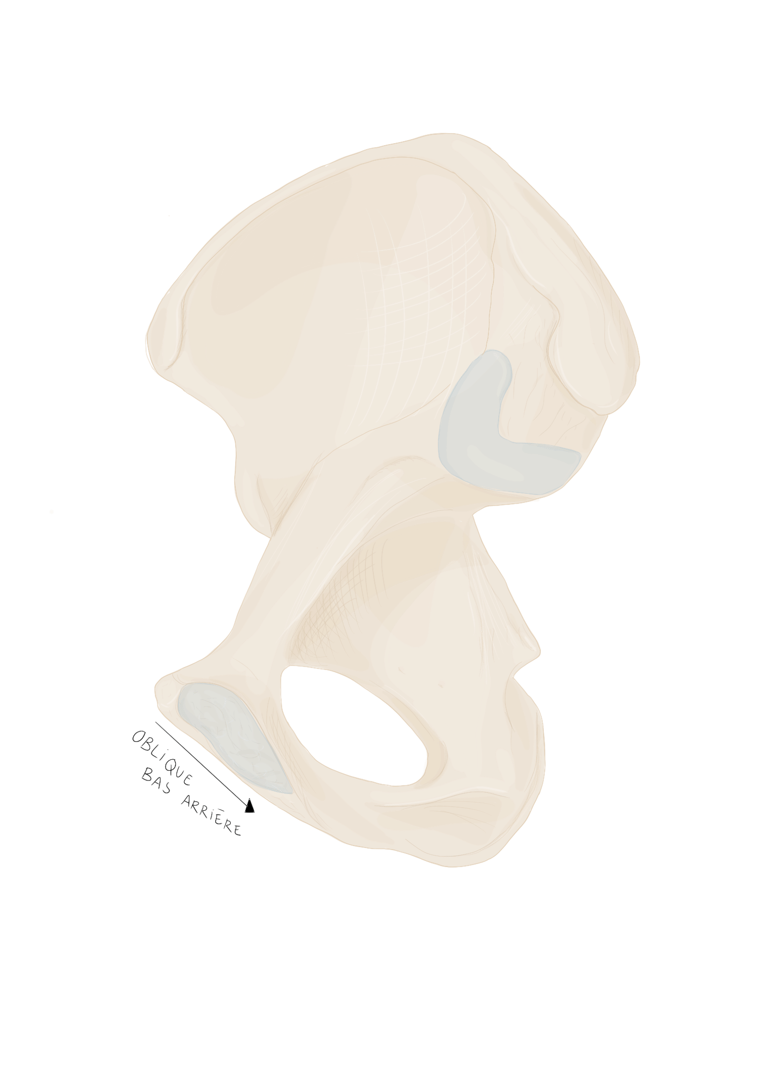 Situation surface articulaire (SA) : Sur la face interne de l'os, au-desuss de la ligne innominée et en arrière du muscle iliaque