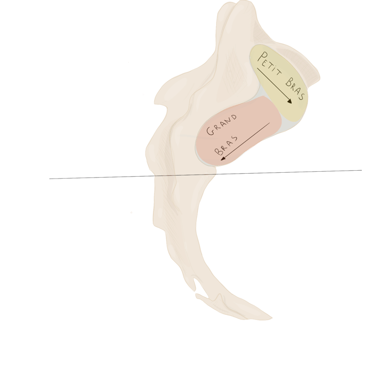 Bord latéral de la 1ʳᵉ et 2ᵉ vertèbres coccygiennes