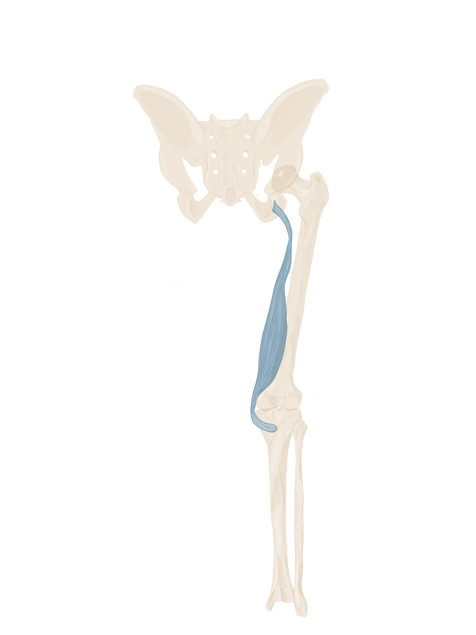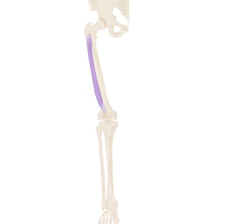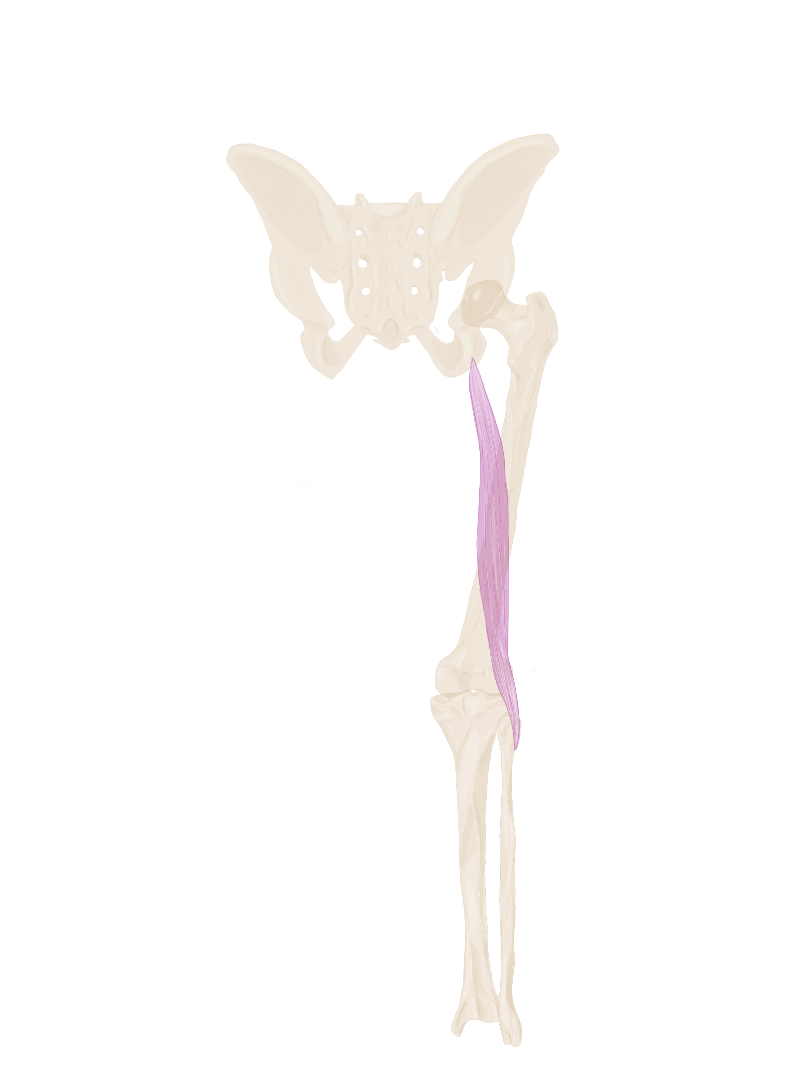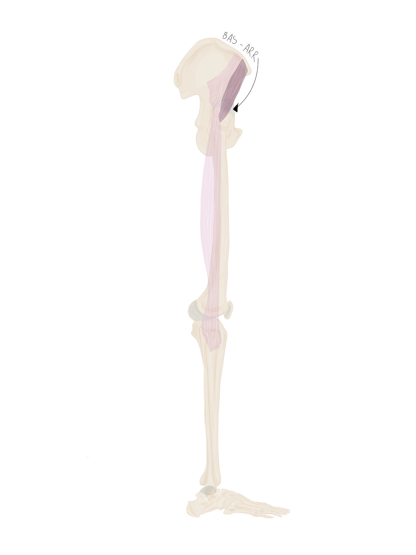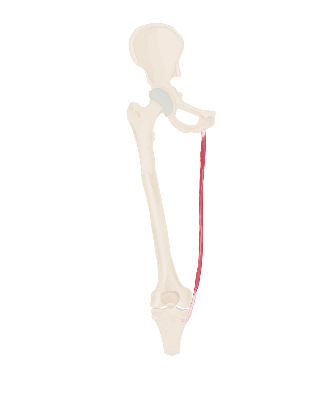A ce niveau, il sera accompagné à son bord supérieur par le muscle jumeau supérieur et à son bord inférieur par le muscle jumeau inférieur.