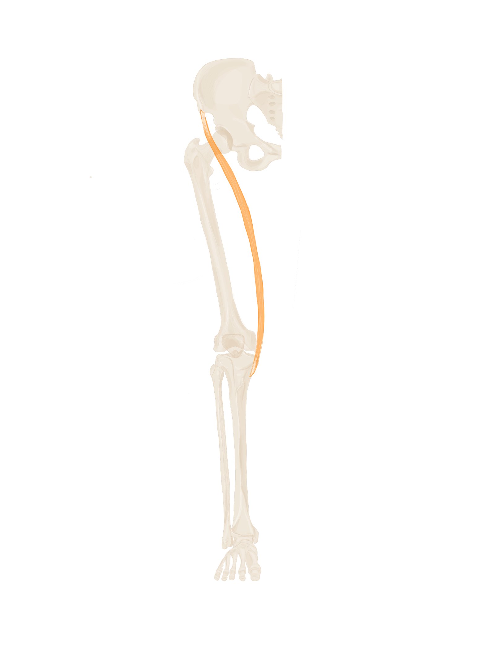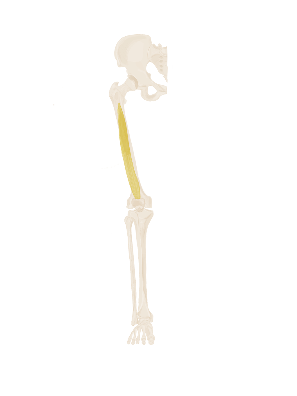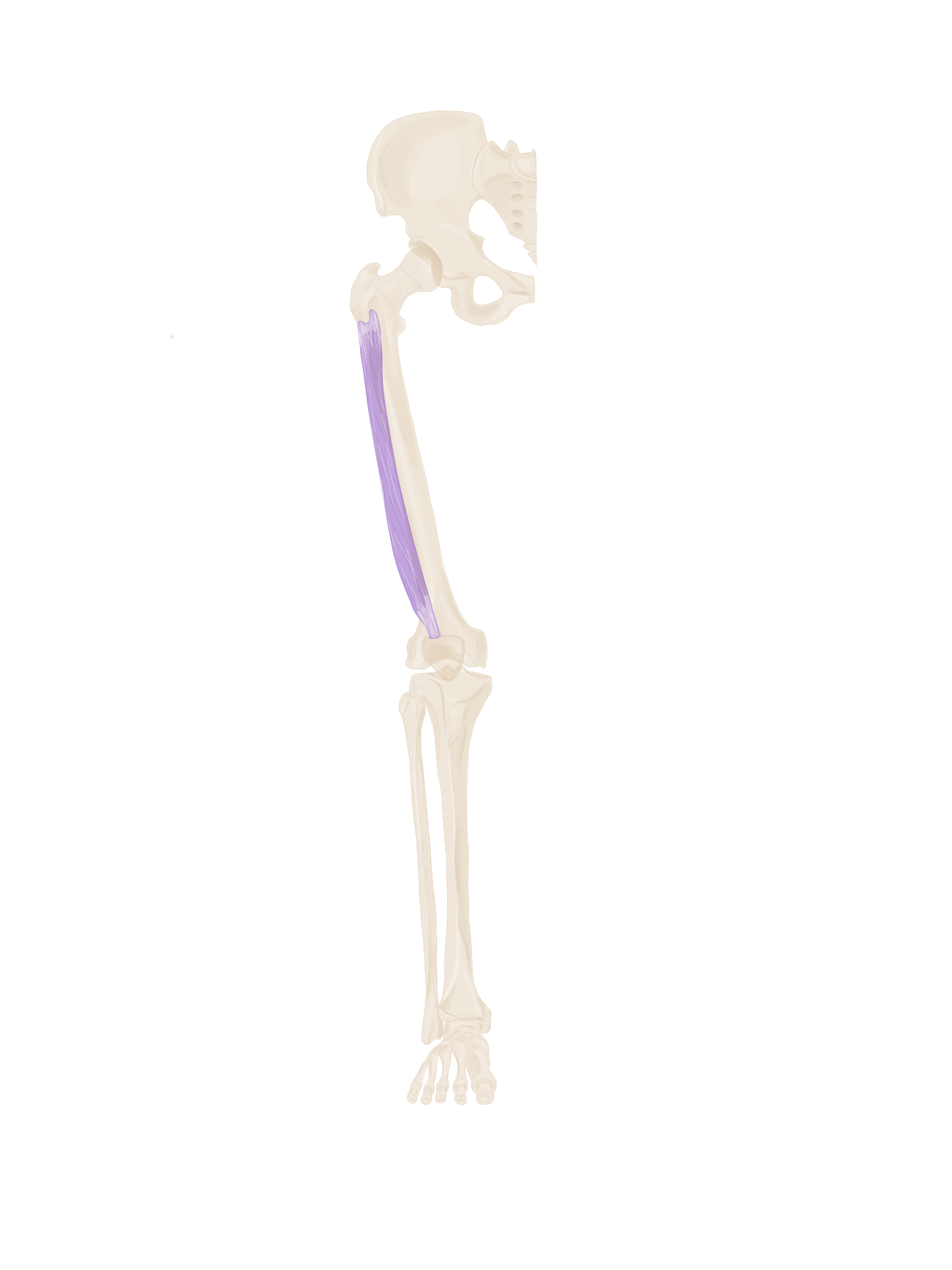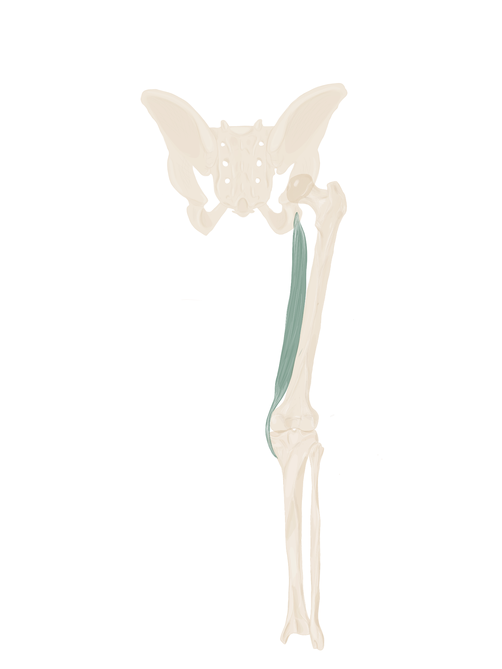 A ce niveau, il sera accompagné à son bord supérieur par le muscle jumeau supérieur et à son bord inférieur par le muscle jumeau inférieur.