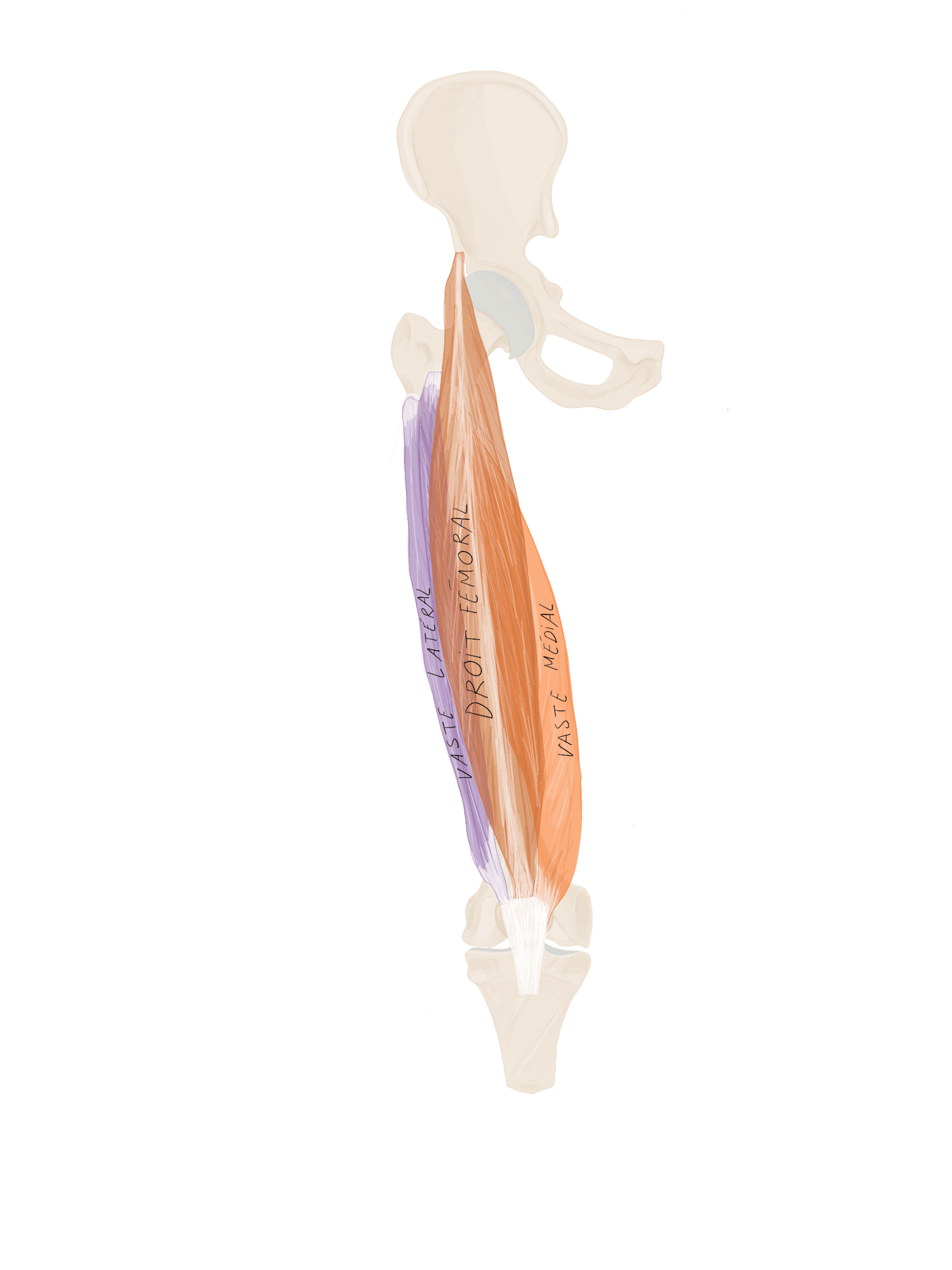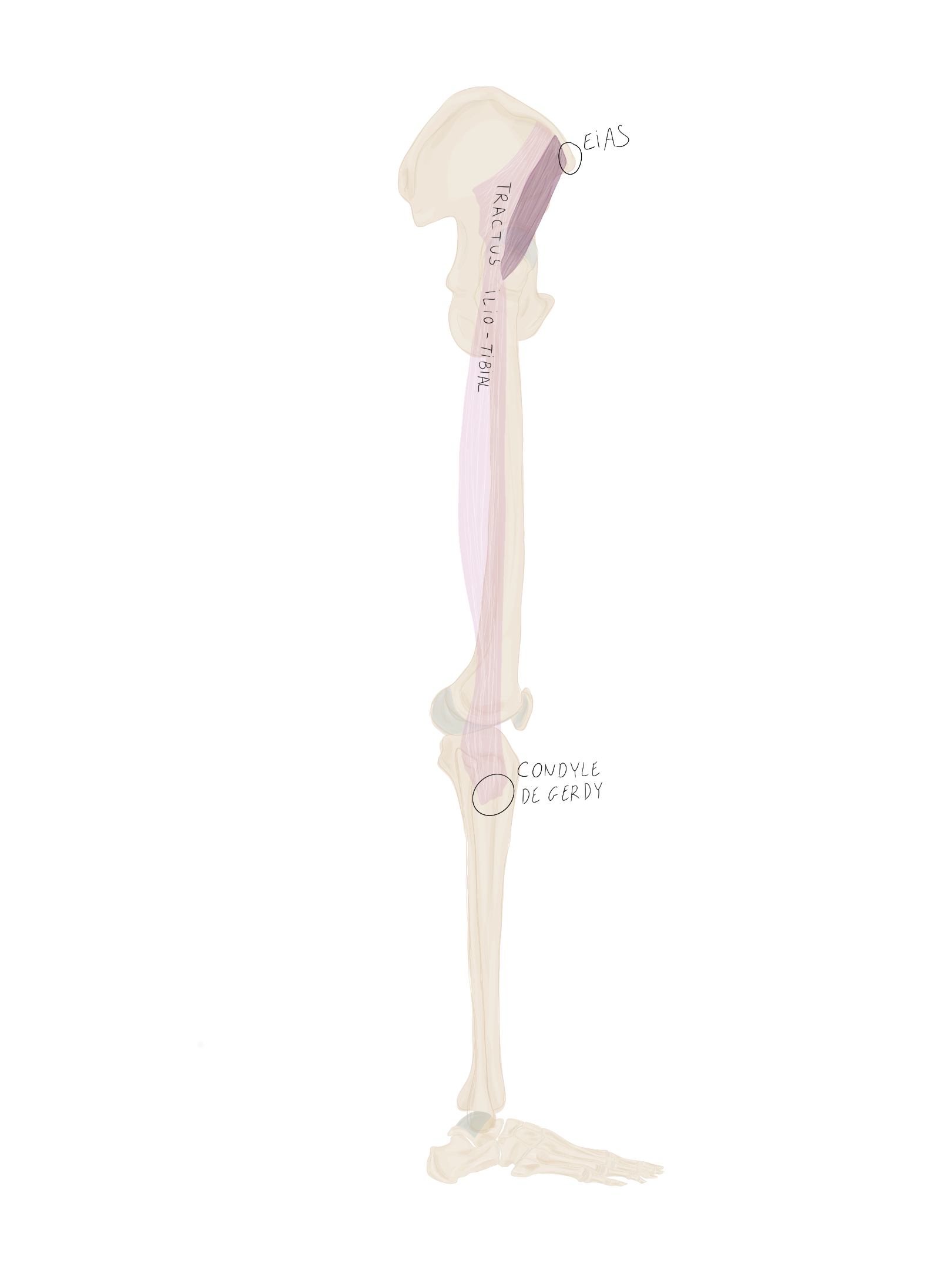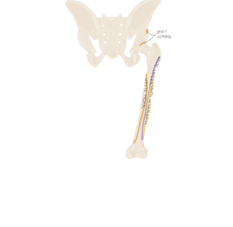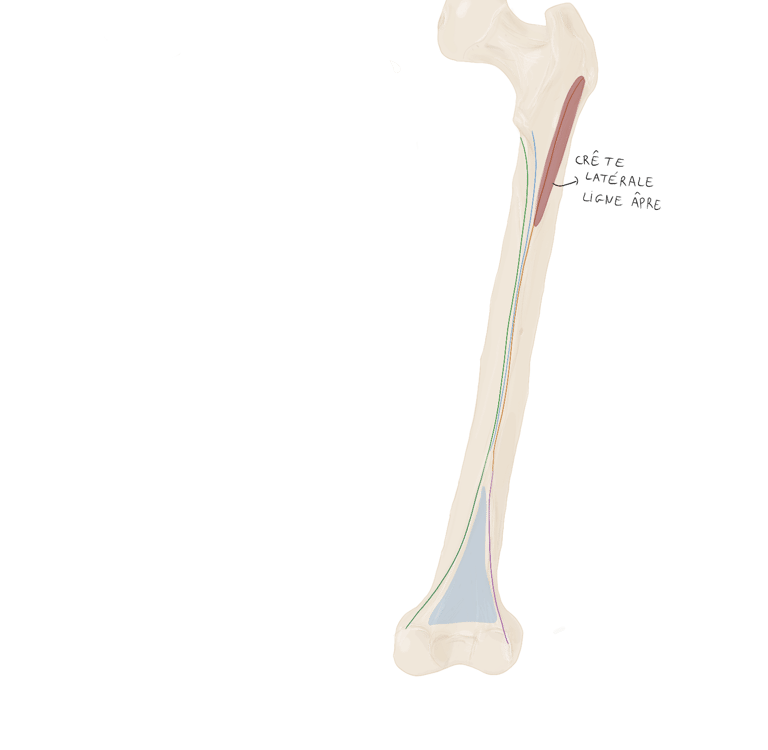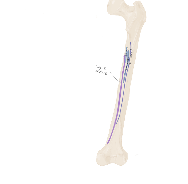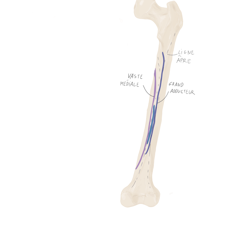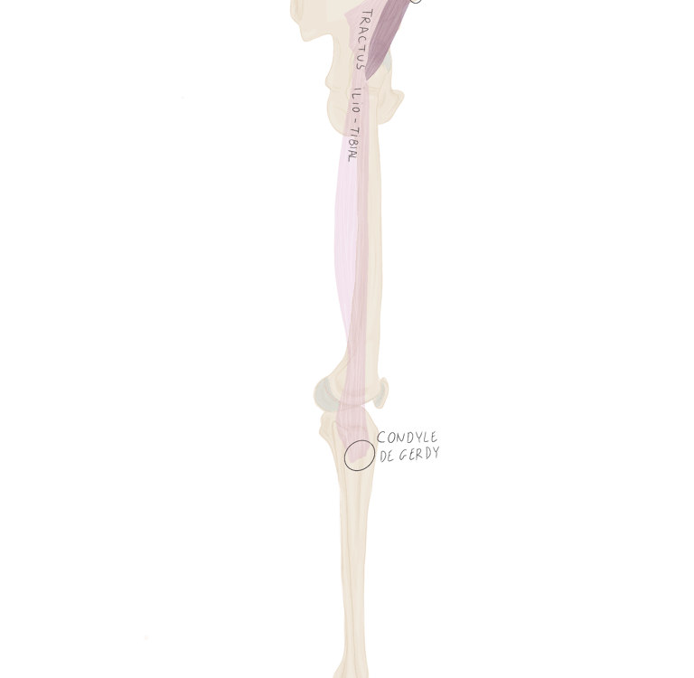 Le tractus ilio-tibial continue sa descente dans la cuisse et se termine au niveau du tubercule de Gerdy