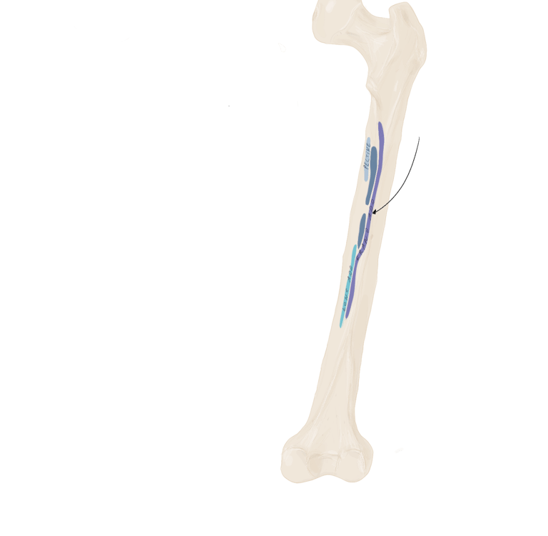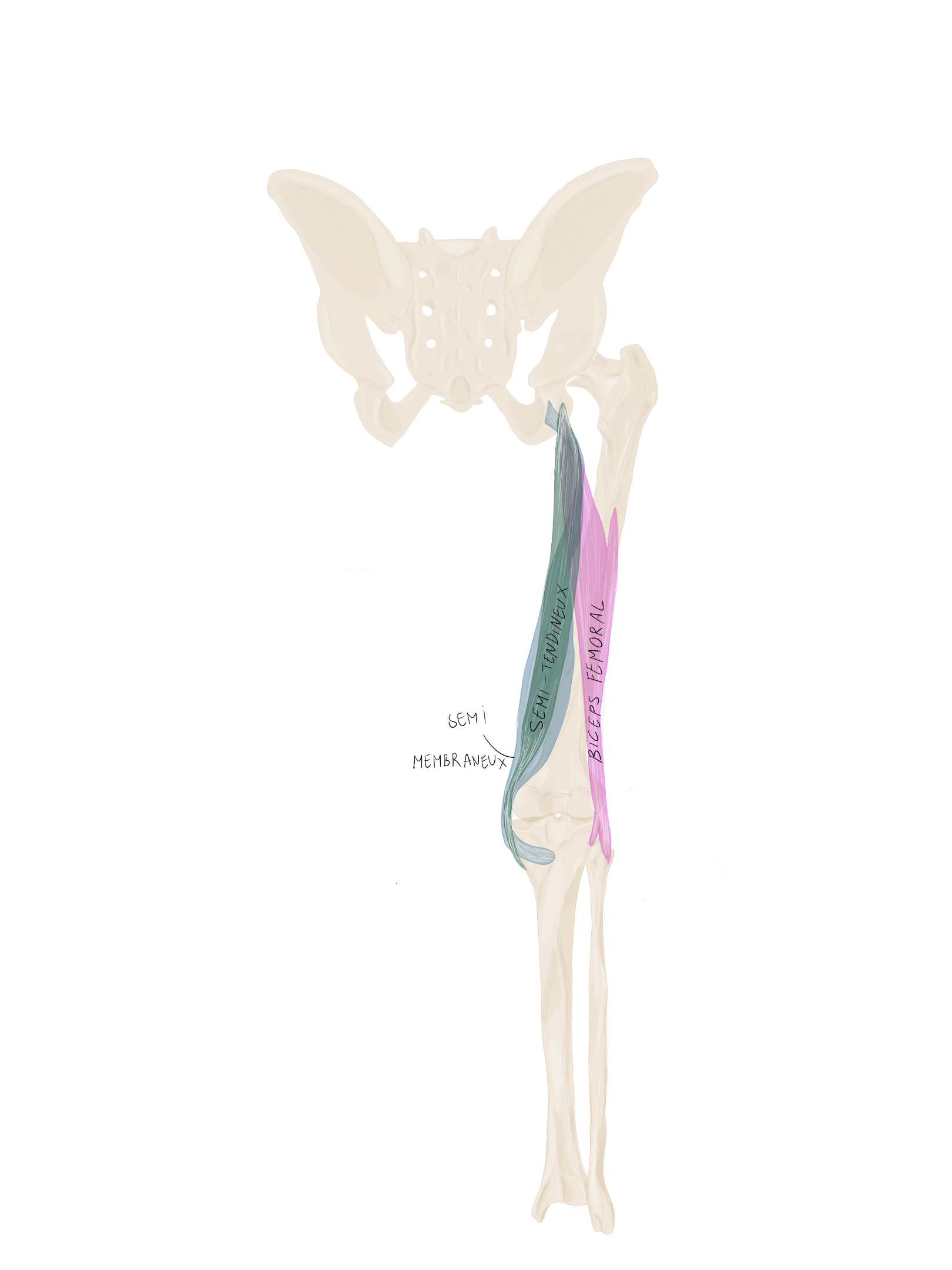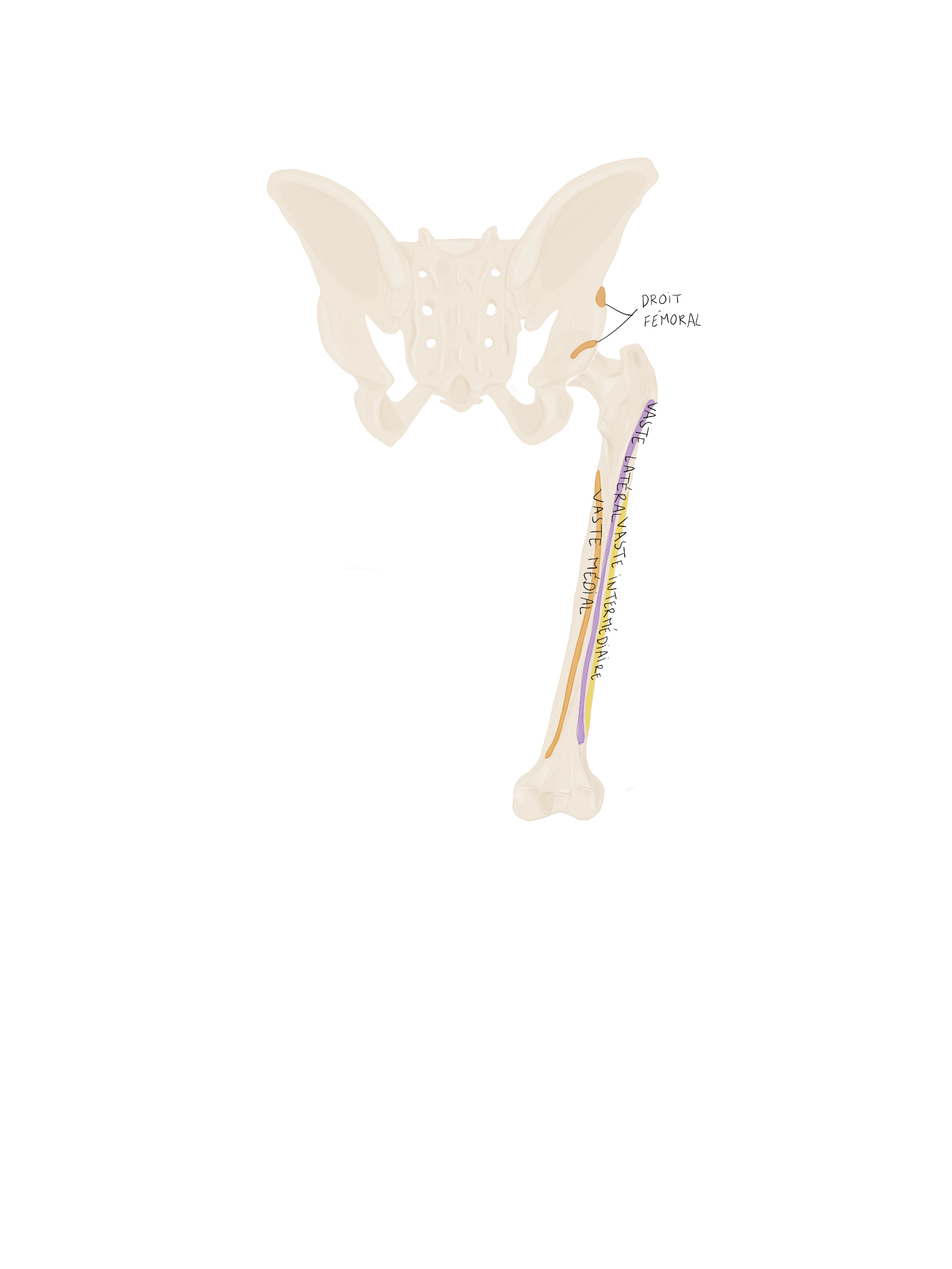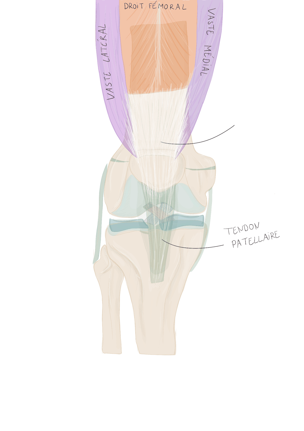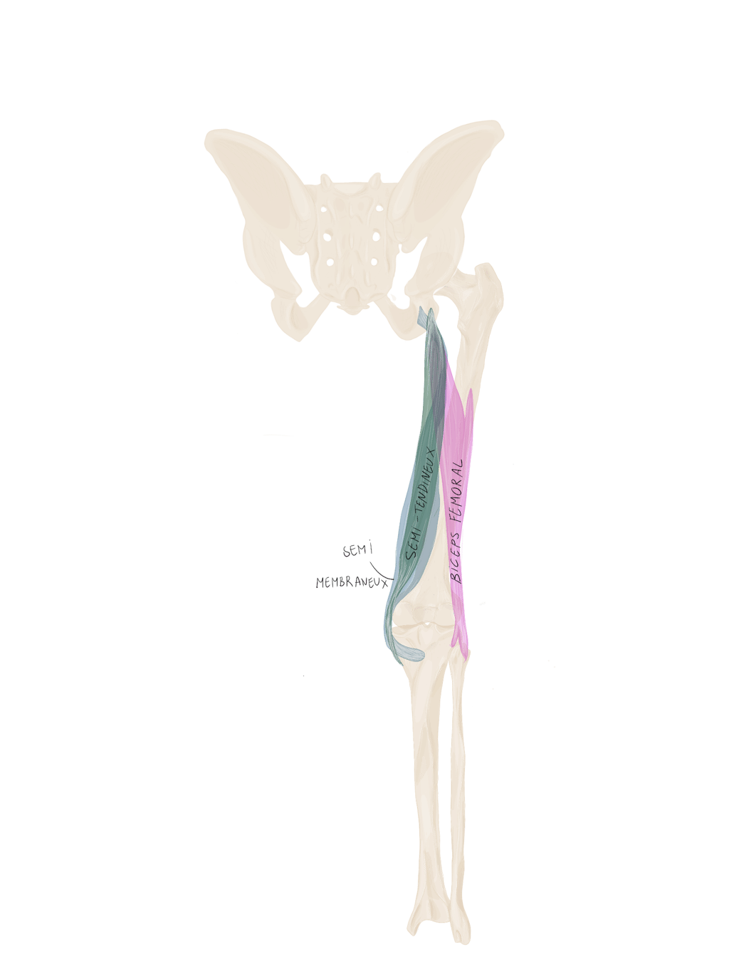 Le tractus ilio-tibial continue sa descente dans la cuisse et se termine au niveau du tubercule de Gerdy