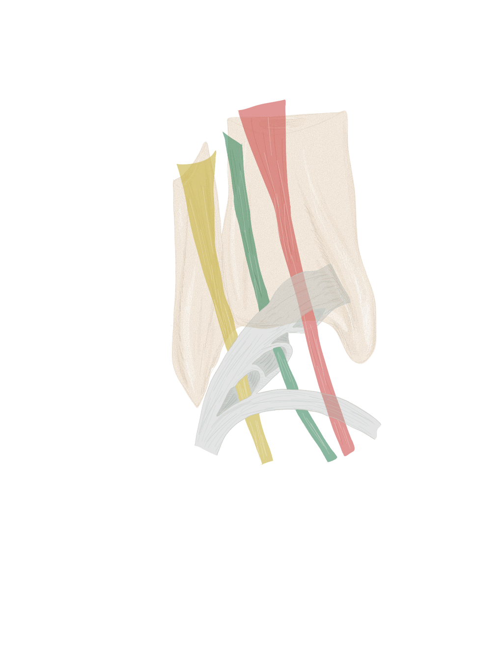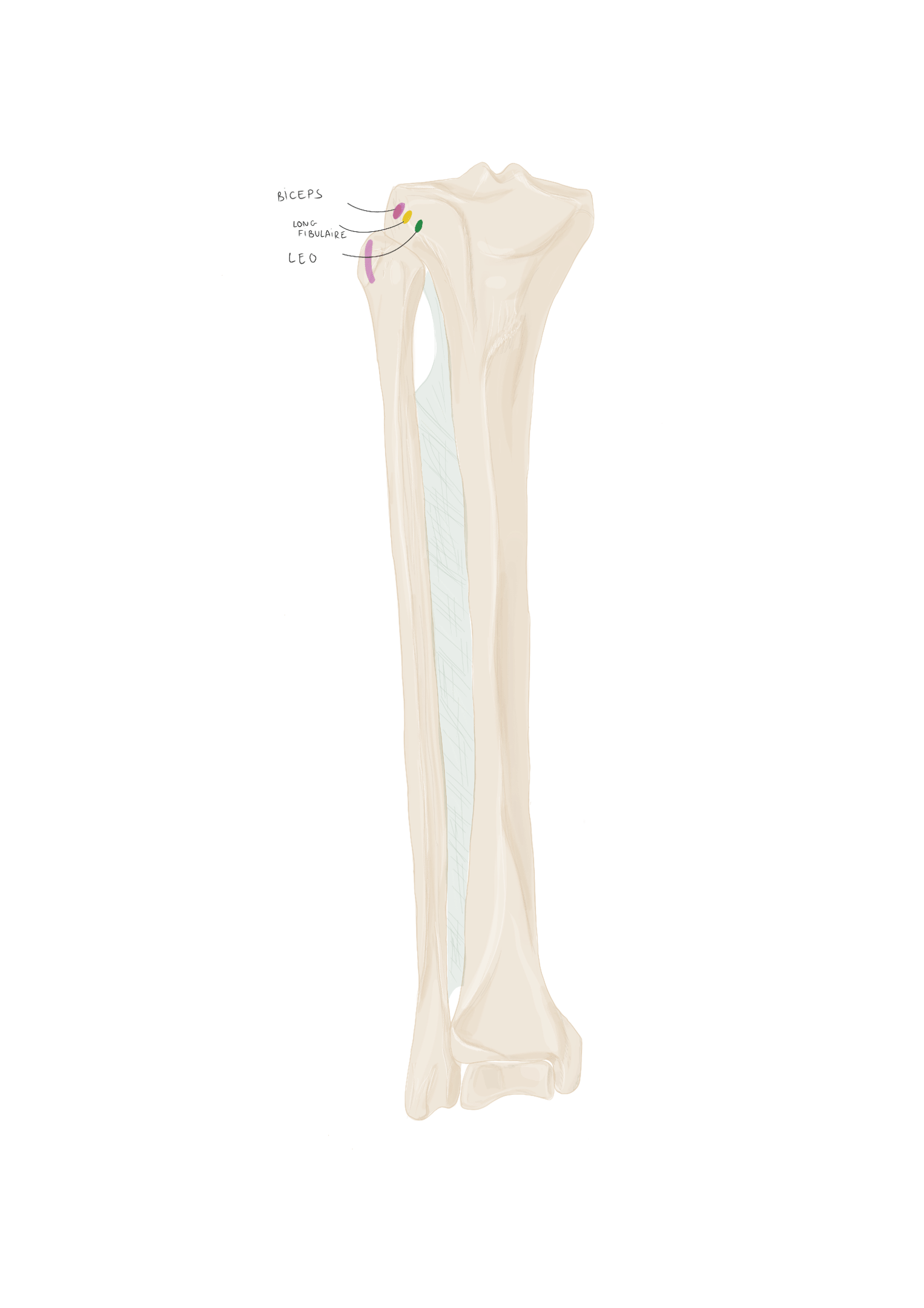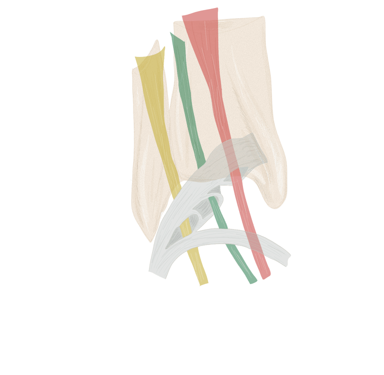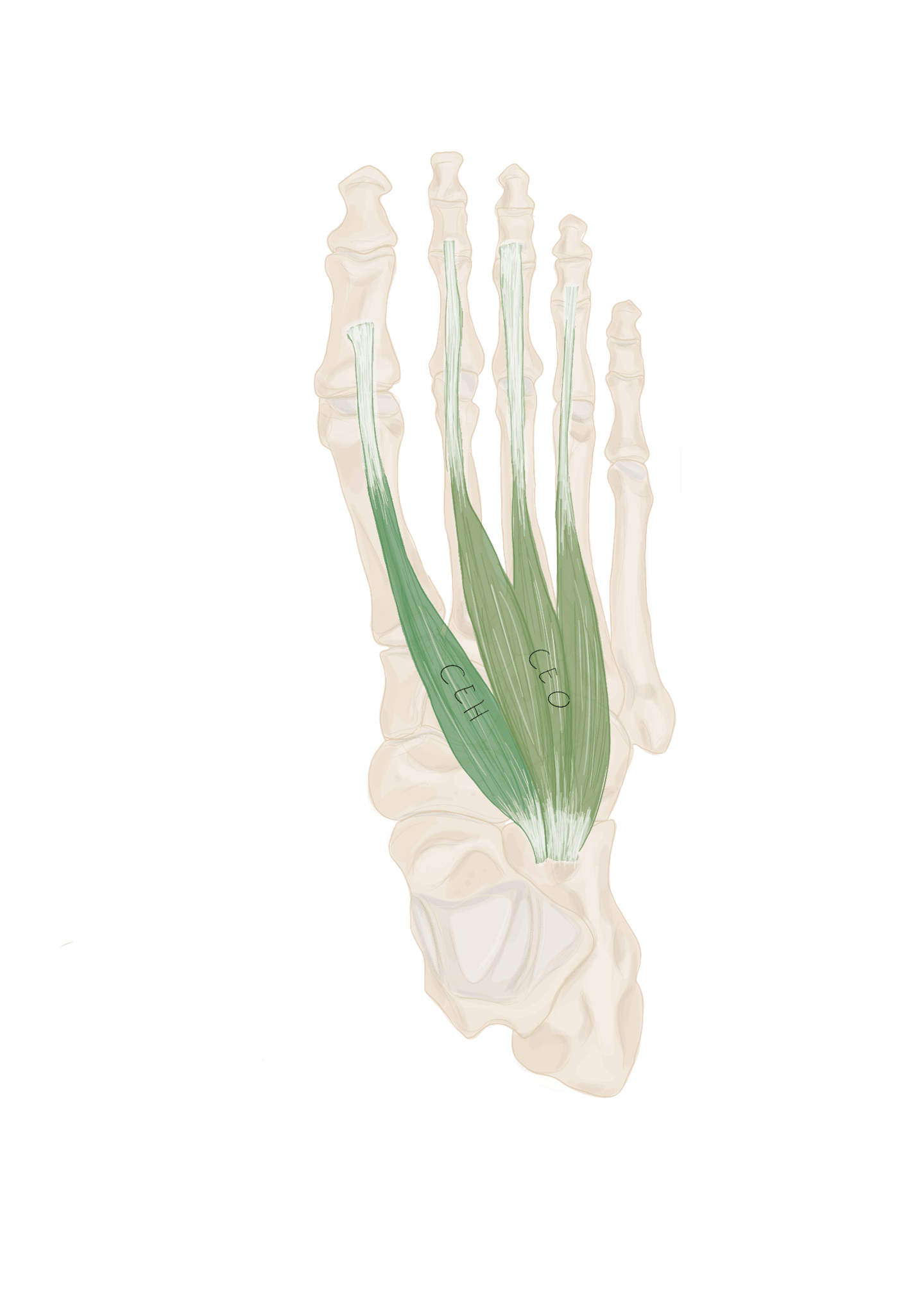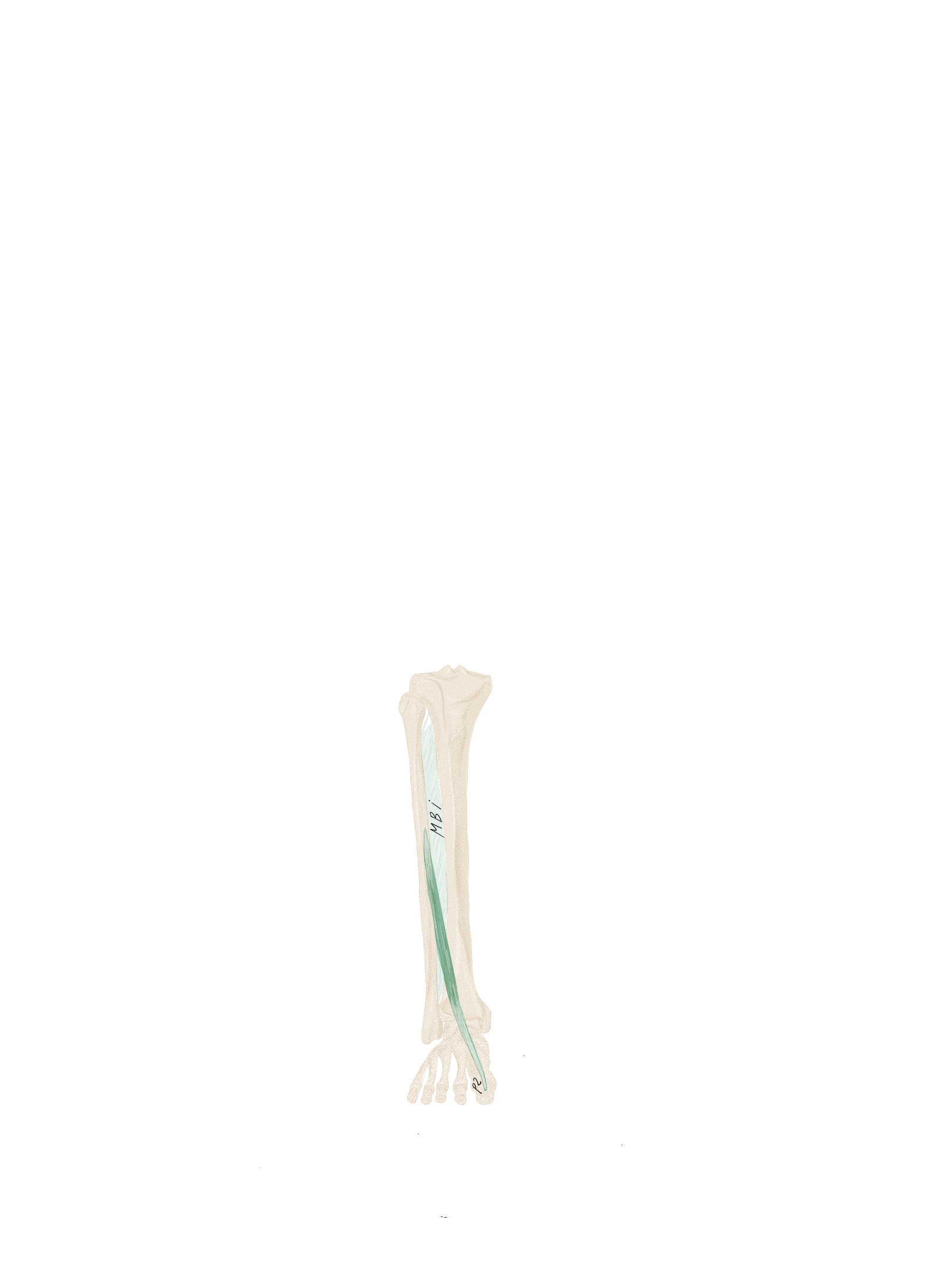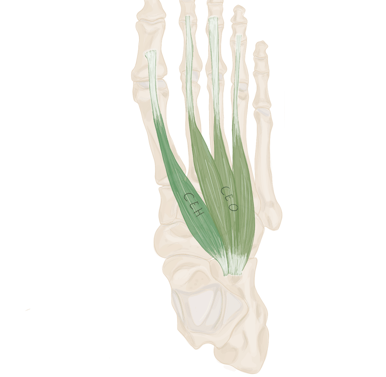 Les 2 bandelettes se réunissent à la face dorsale du long fléchisseur des orteils pour se terminer à la face inférieure de P2.