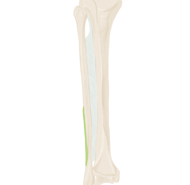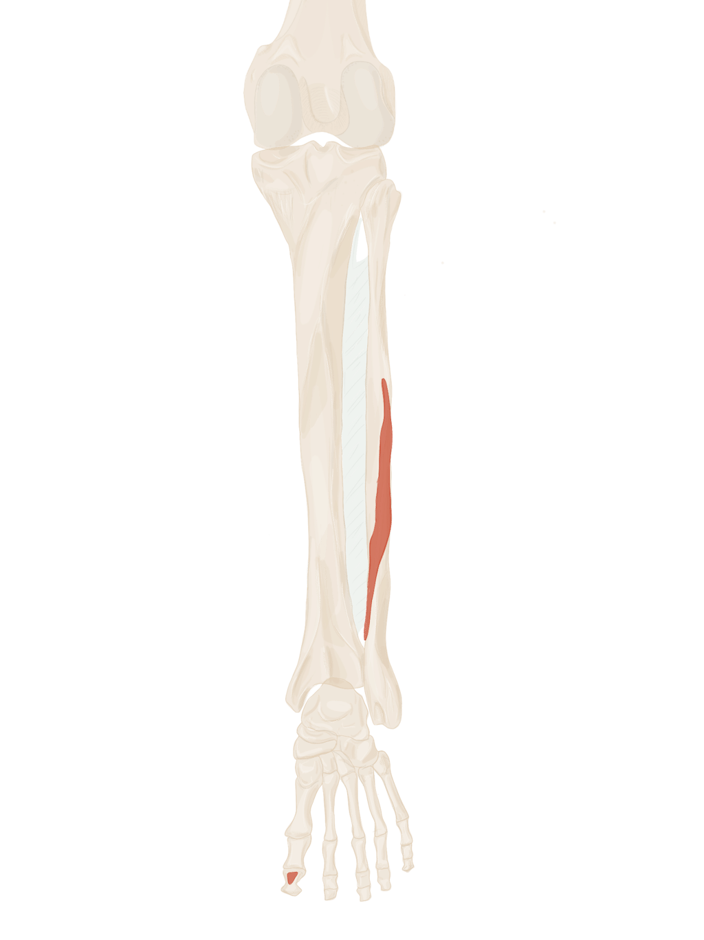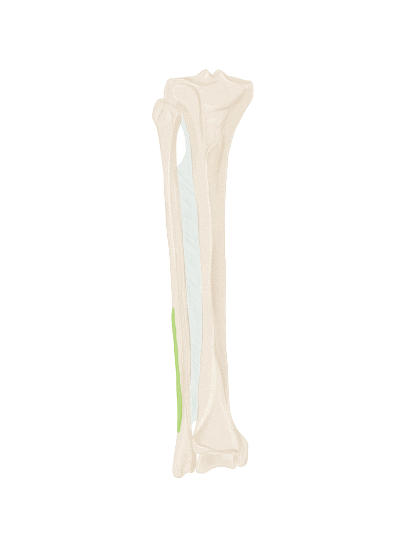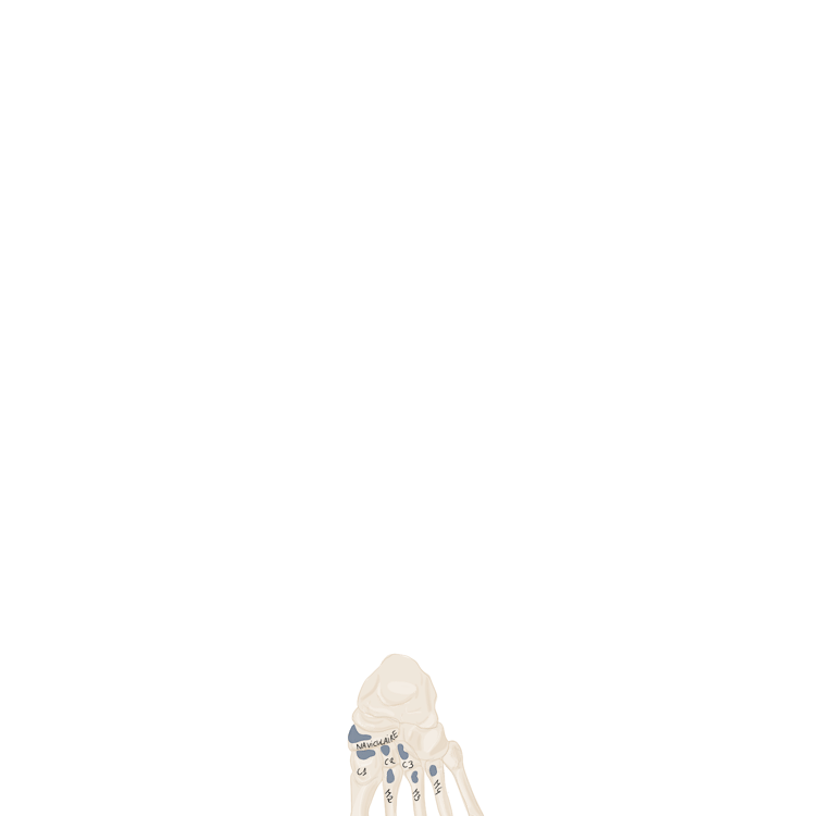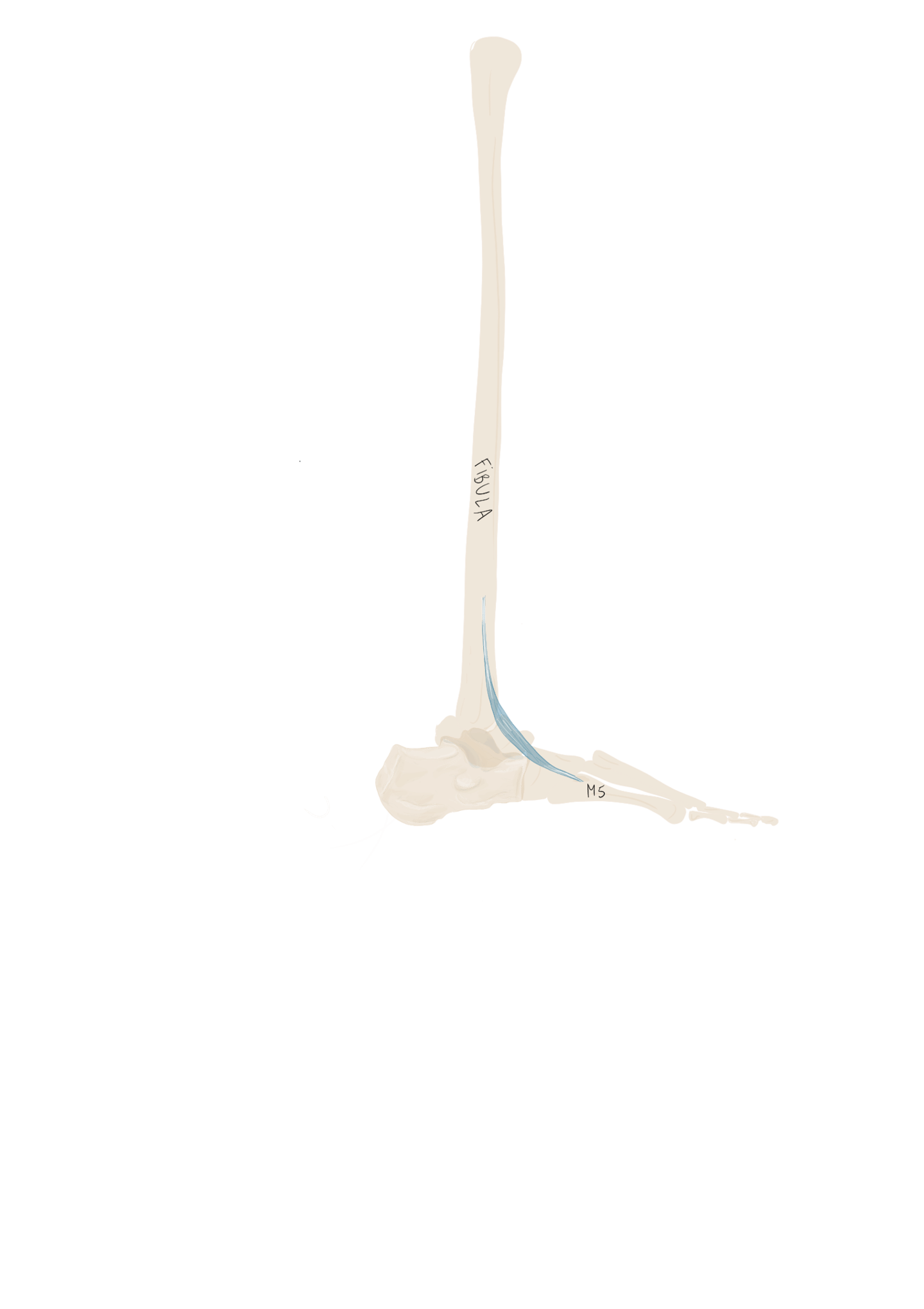 Sur la face périphérique de P1 la plus éloignée de l’axe du pied. Se termine sur P1 du 3, 4 et 5.