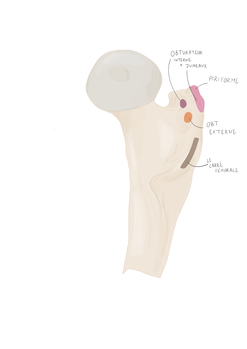 face interne du grand trochanter.