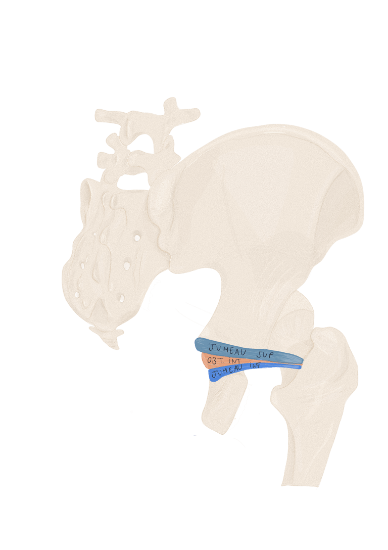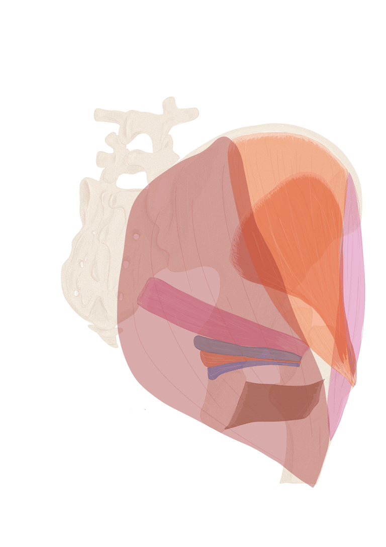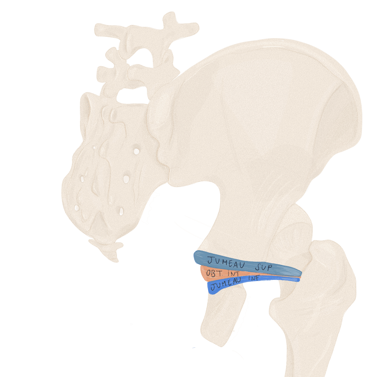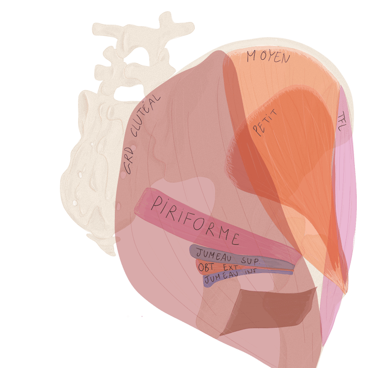 Profond : en haut → le petit fessier, en bas : les pelvis trochantériens