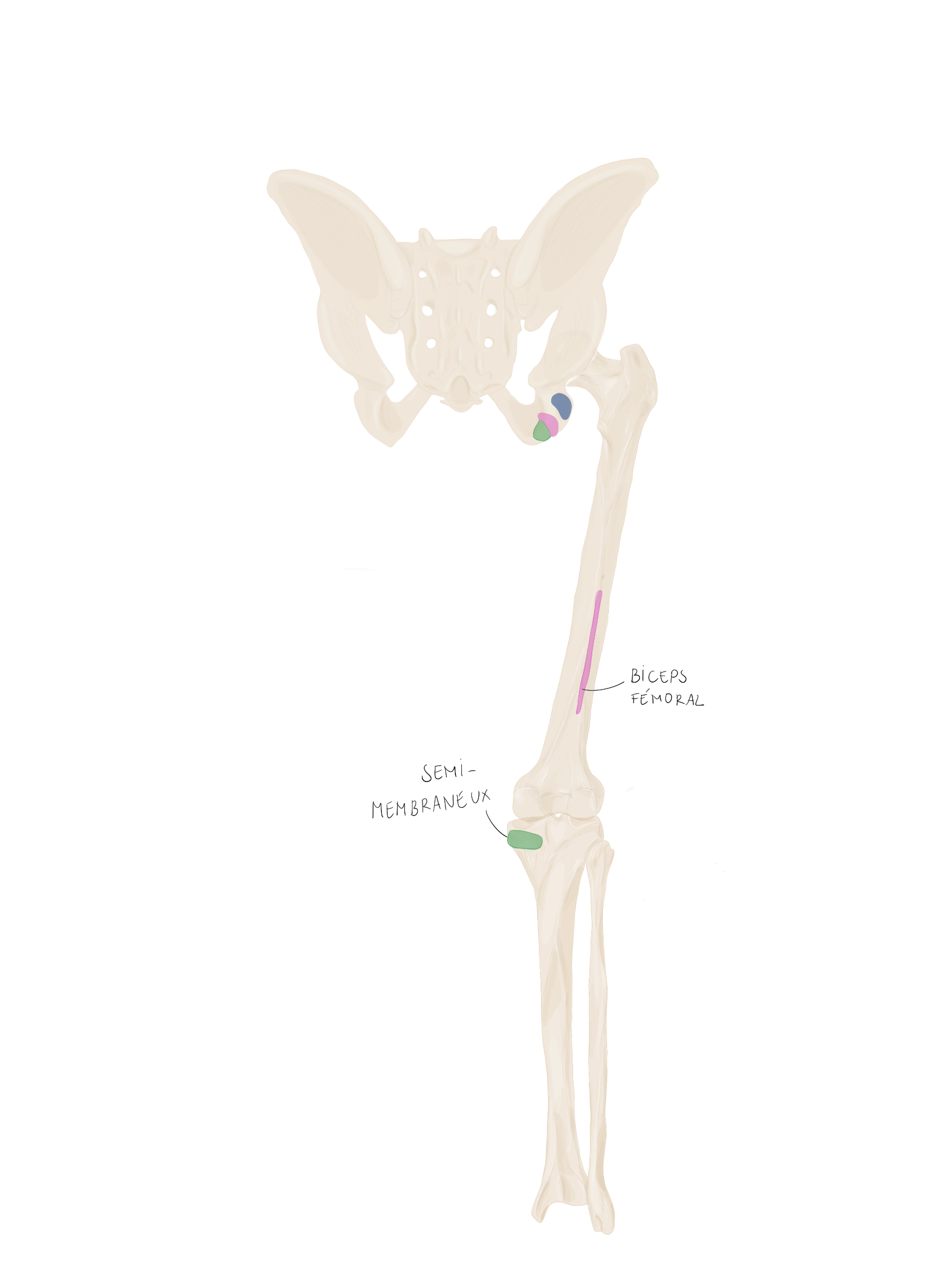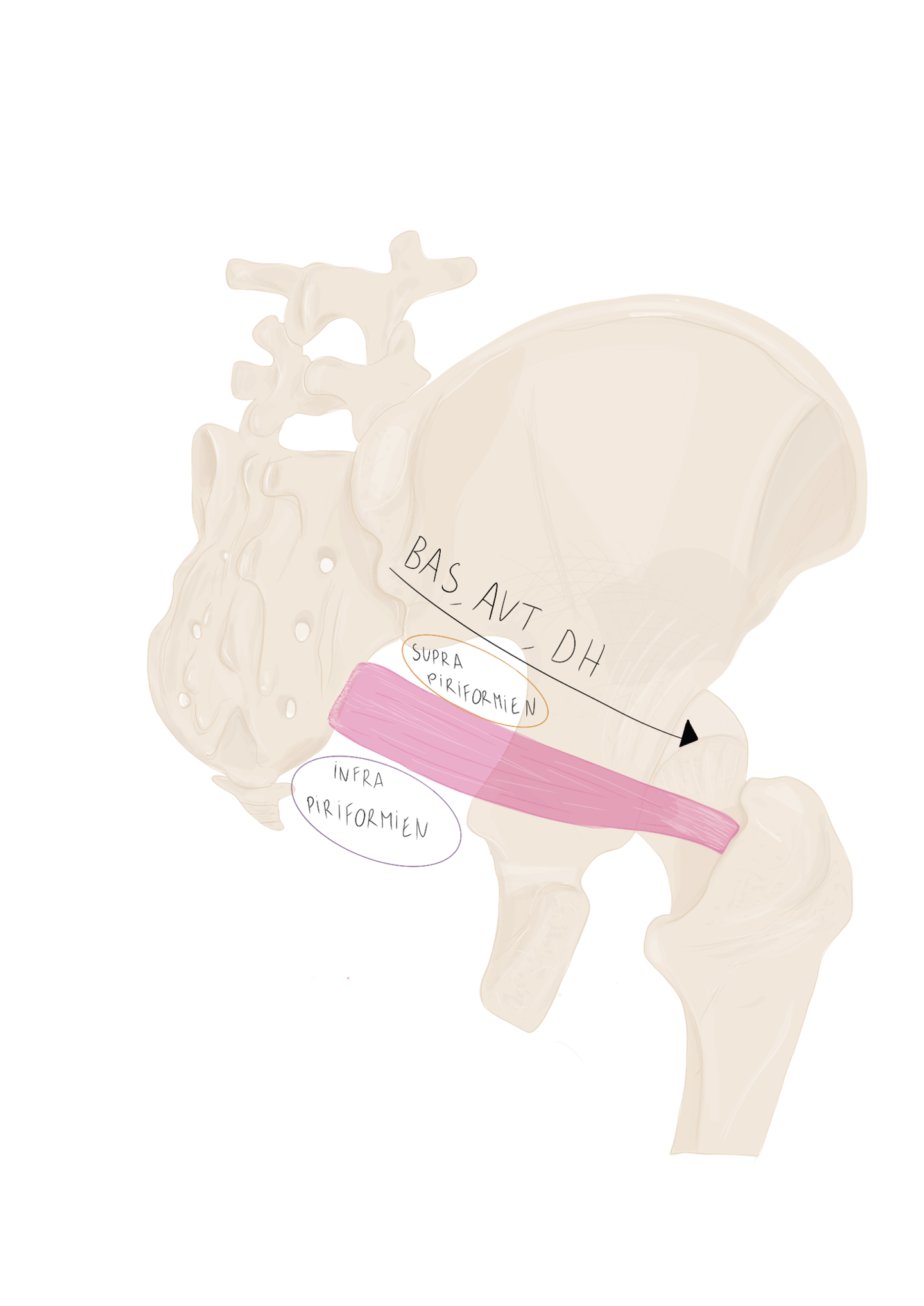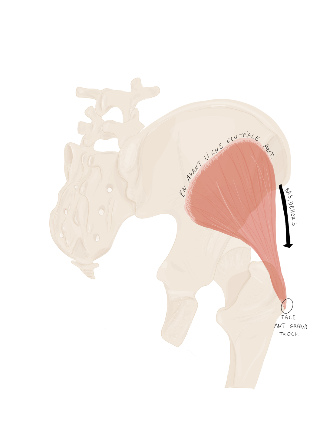 Profond : en haut → le petit fessier, en bas : les pelvis trochantériens