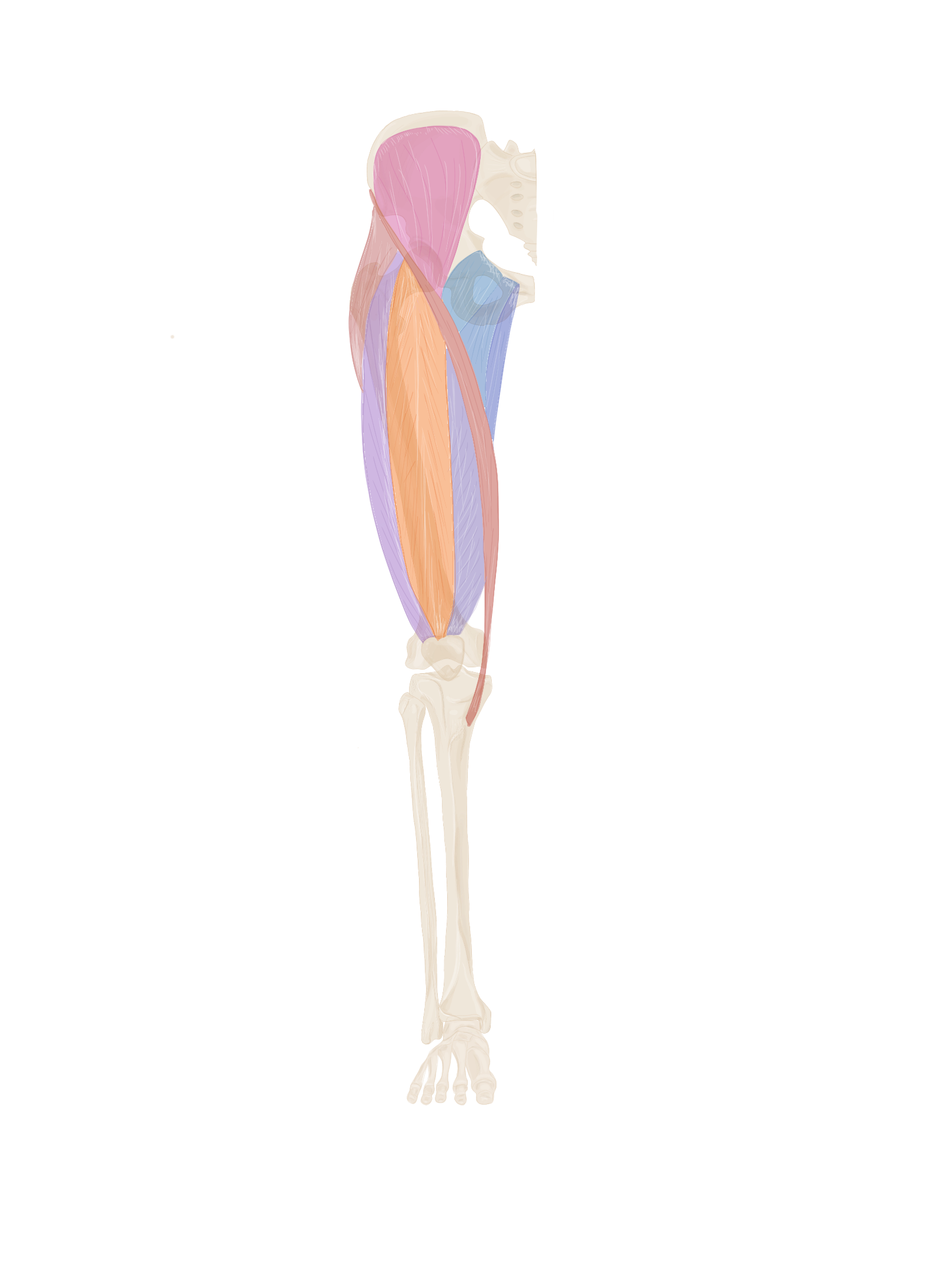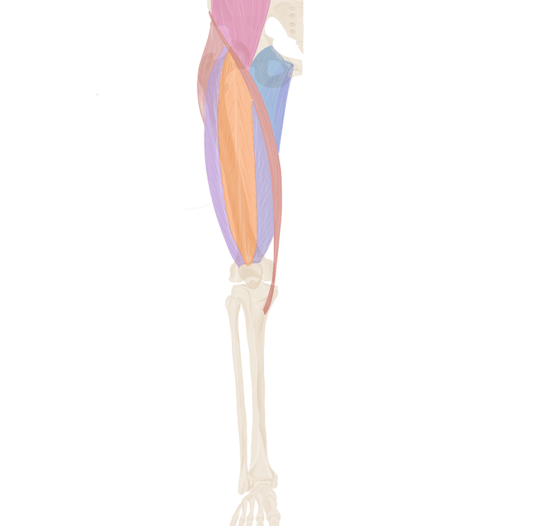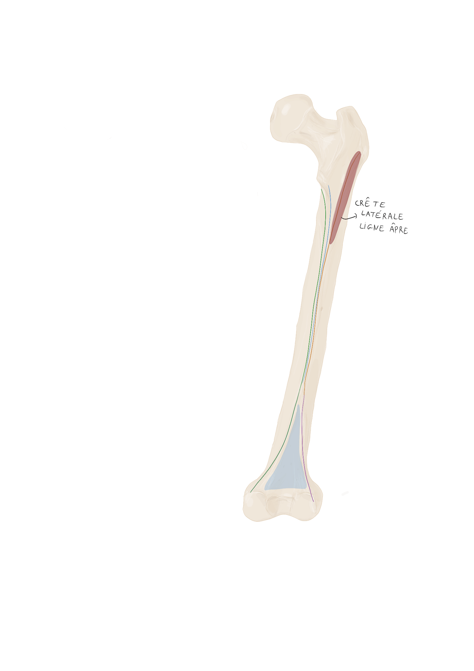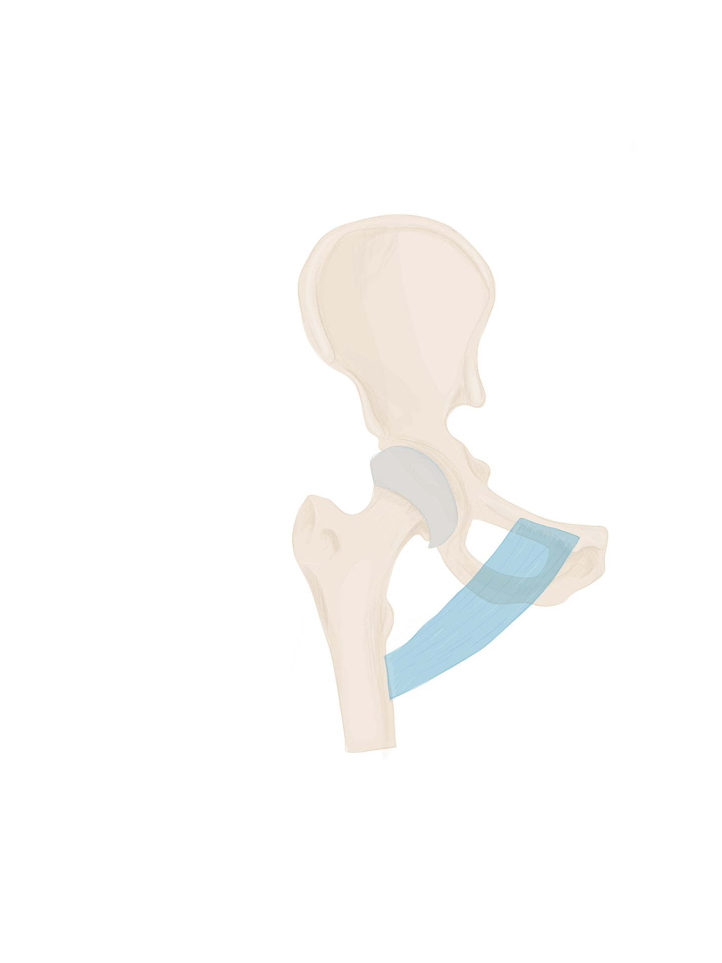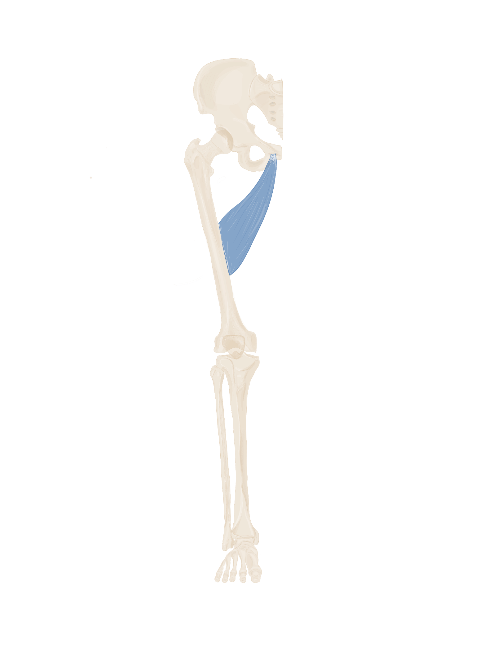 C’est un muscle triangulaire à base supérieure. Une partie de ce muscle va être recouverte par la muscle moyen fessier.