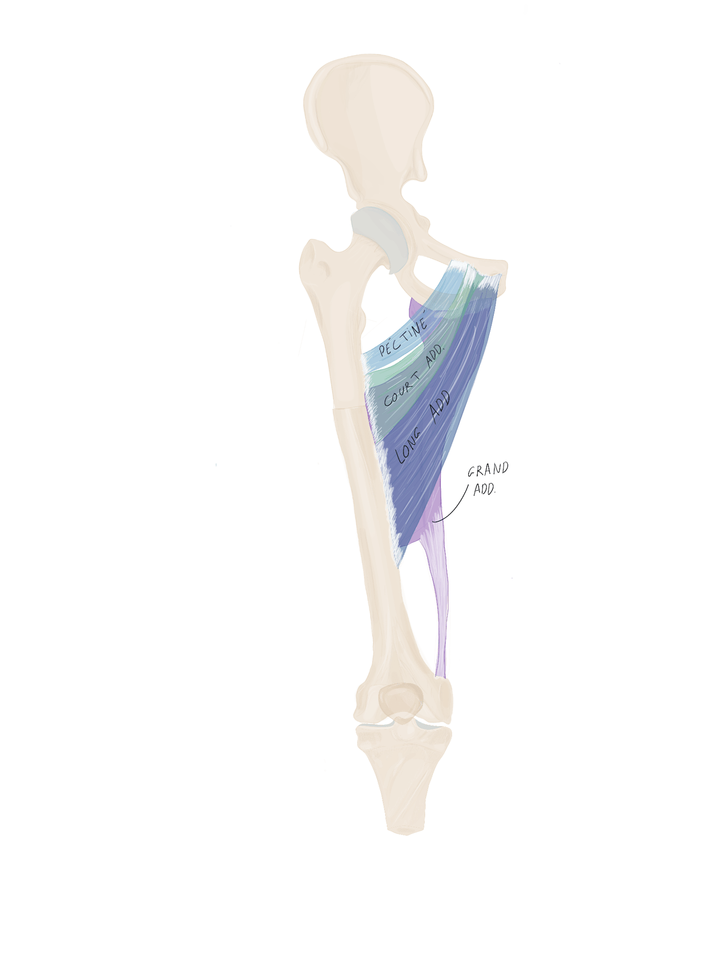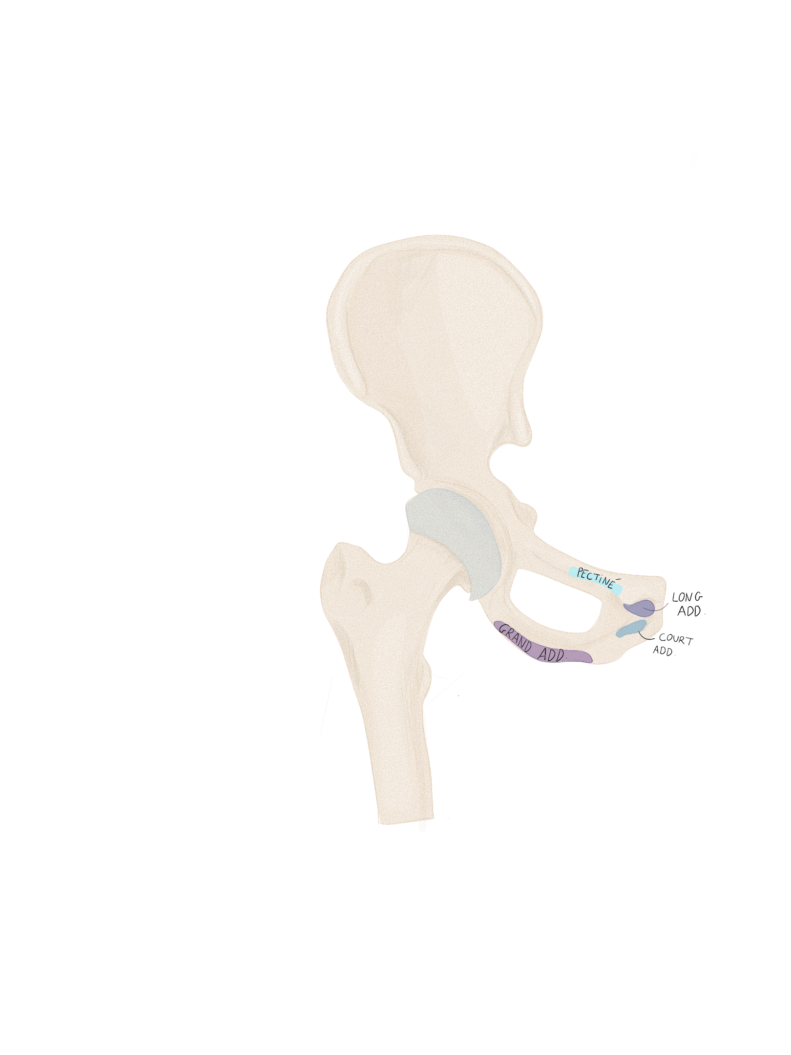 Triangulaire à base supérieure, les fibres convergent vers le grand trochanter