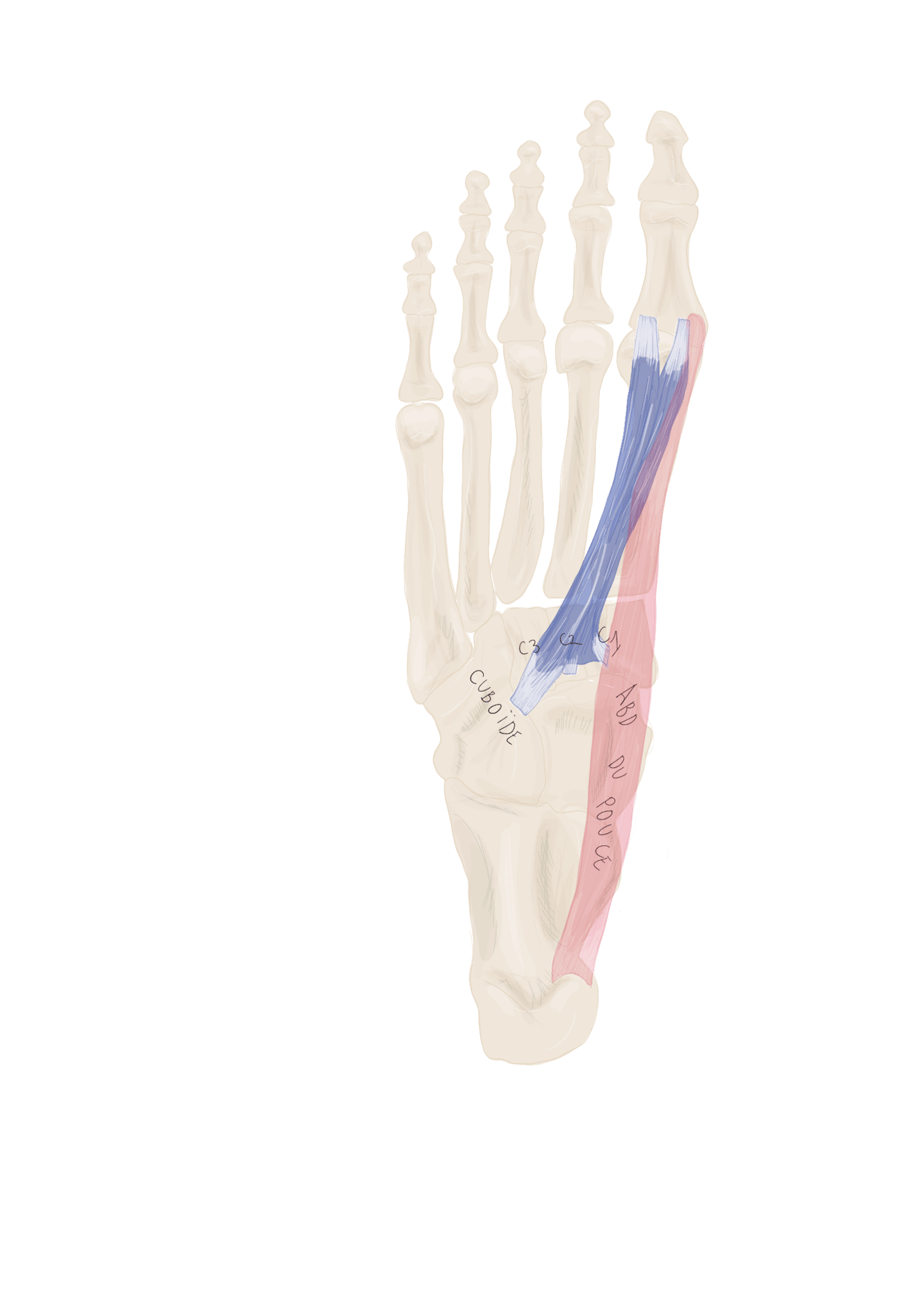 Sauf pour le métatarse : il ne s’insère que sur la base de M1.