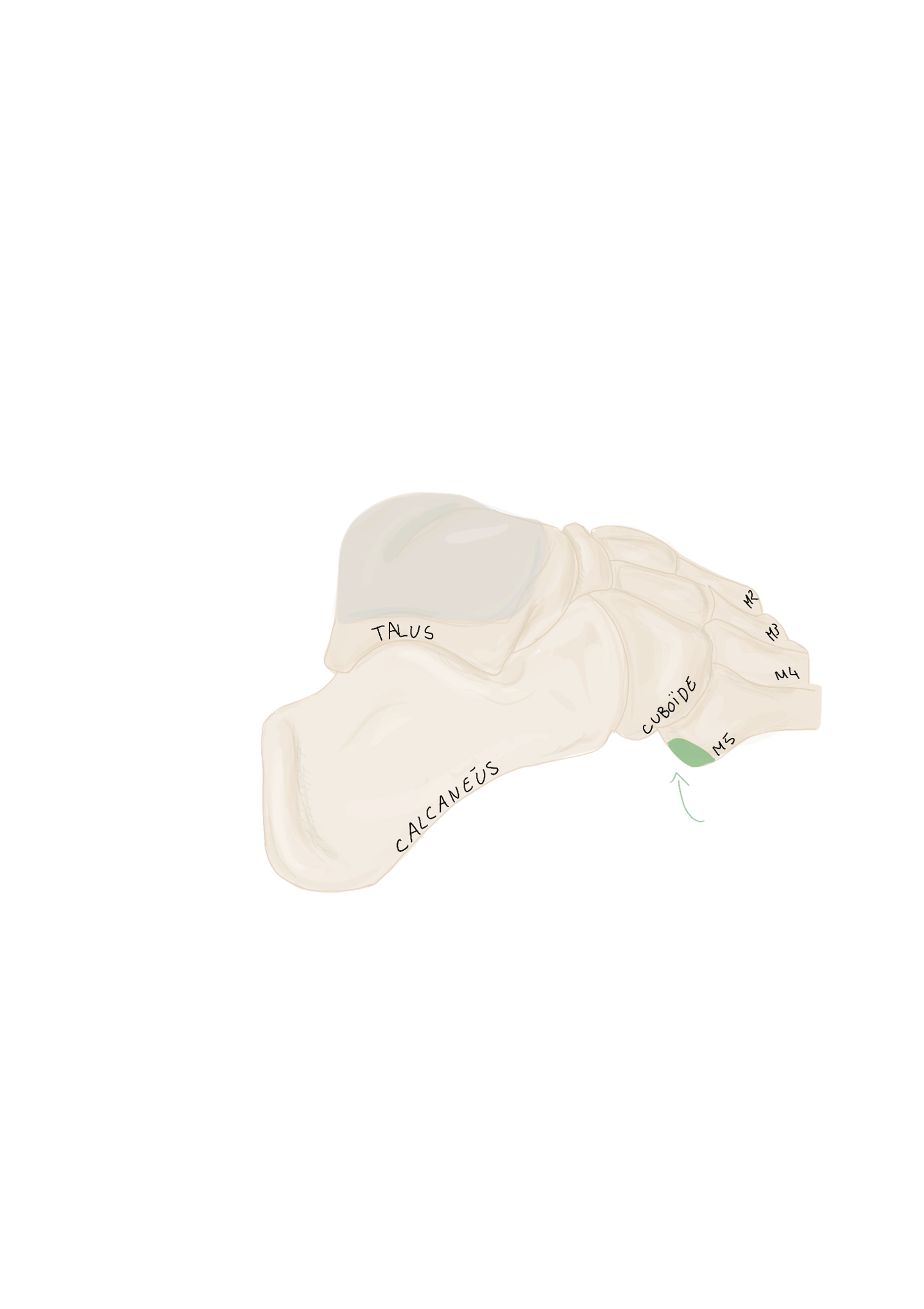 Cuboïde, face inférieure, sur la crête.
