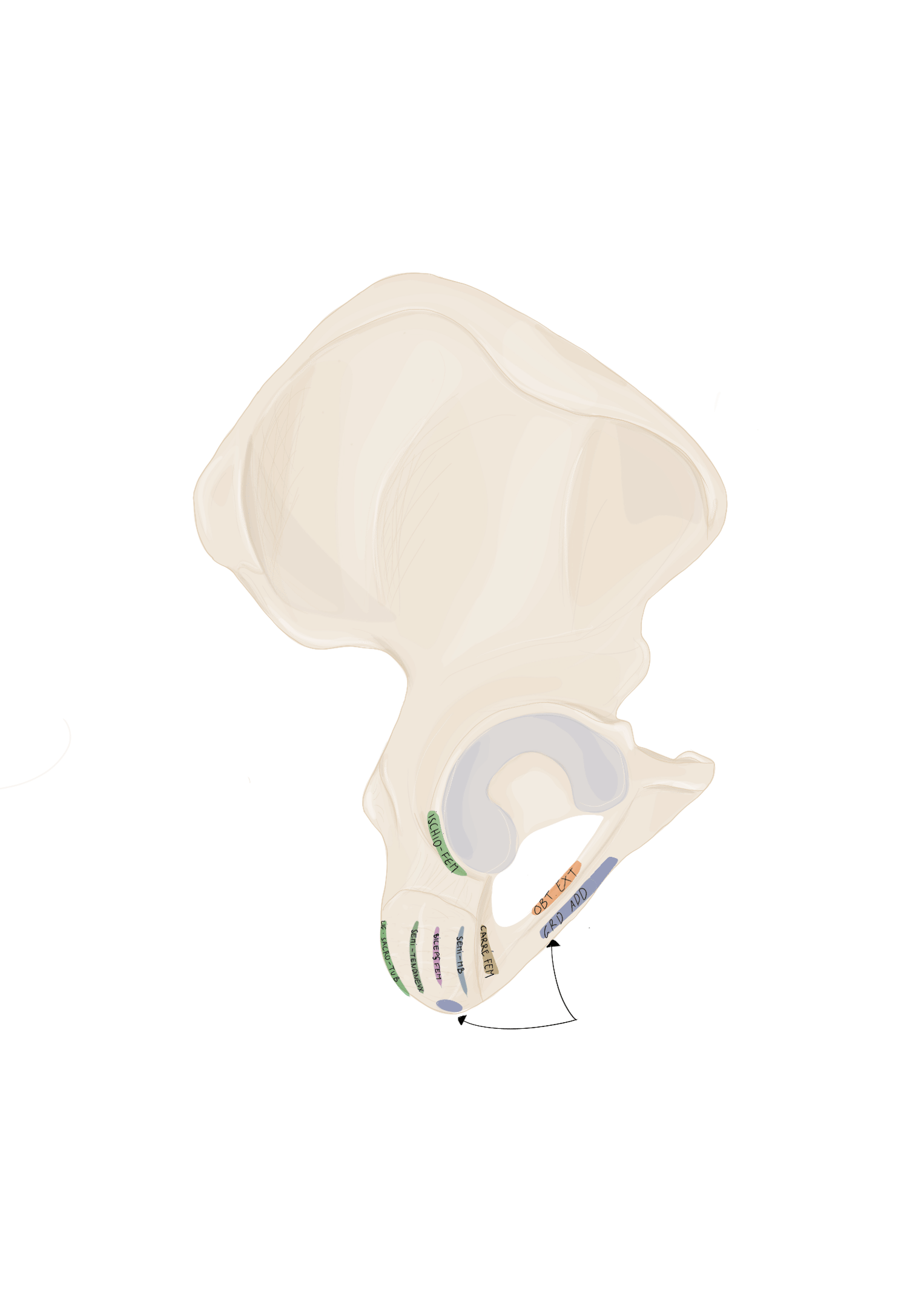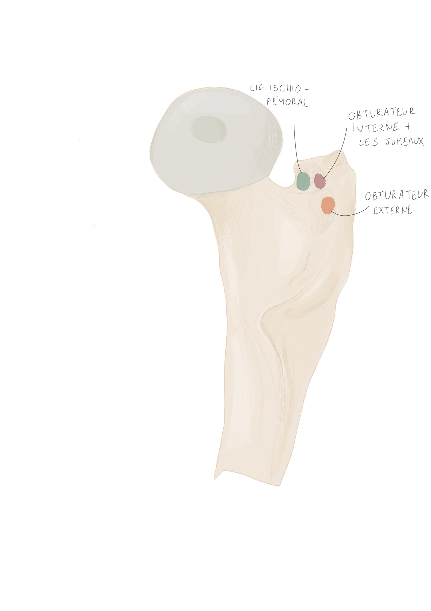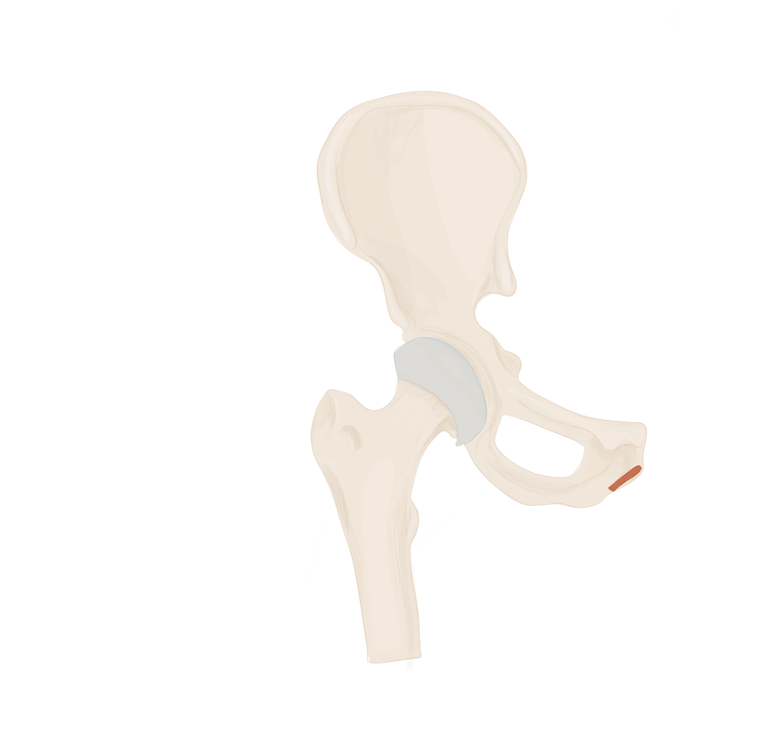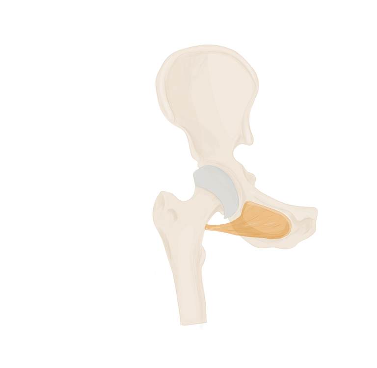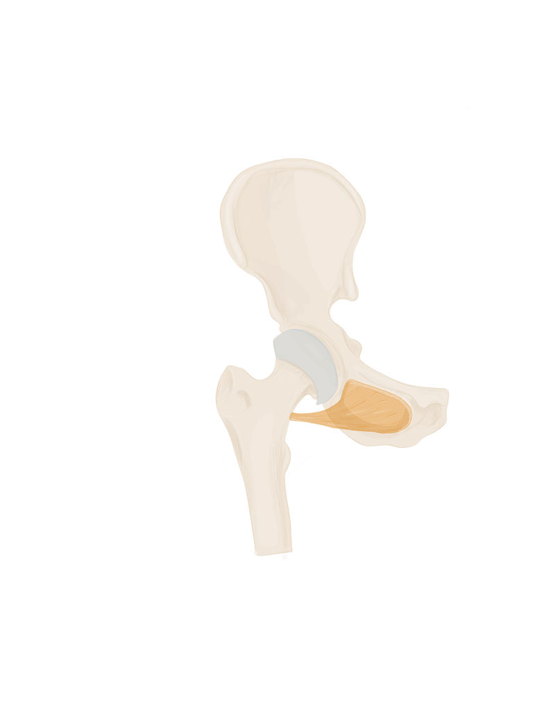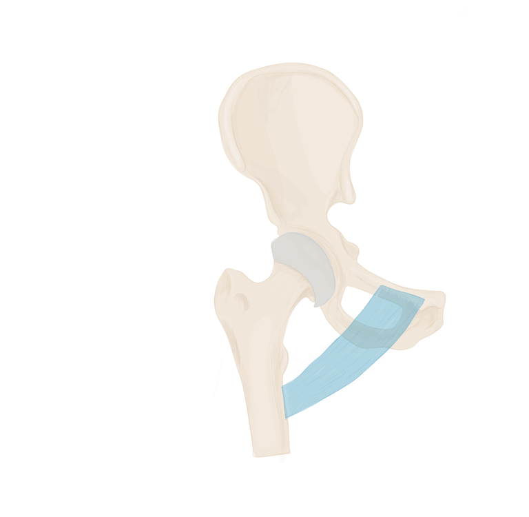 En arrière de lui se trouvera le muscle obturateur externe et en avant de lui le ligament ischio-fémoral.