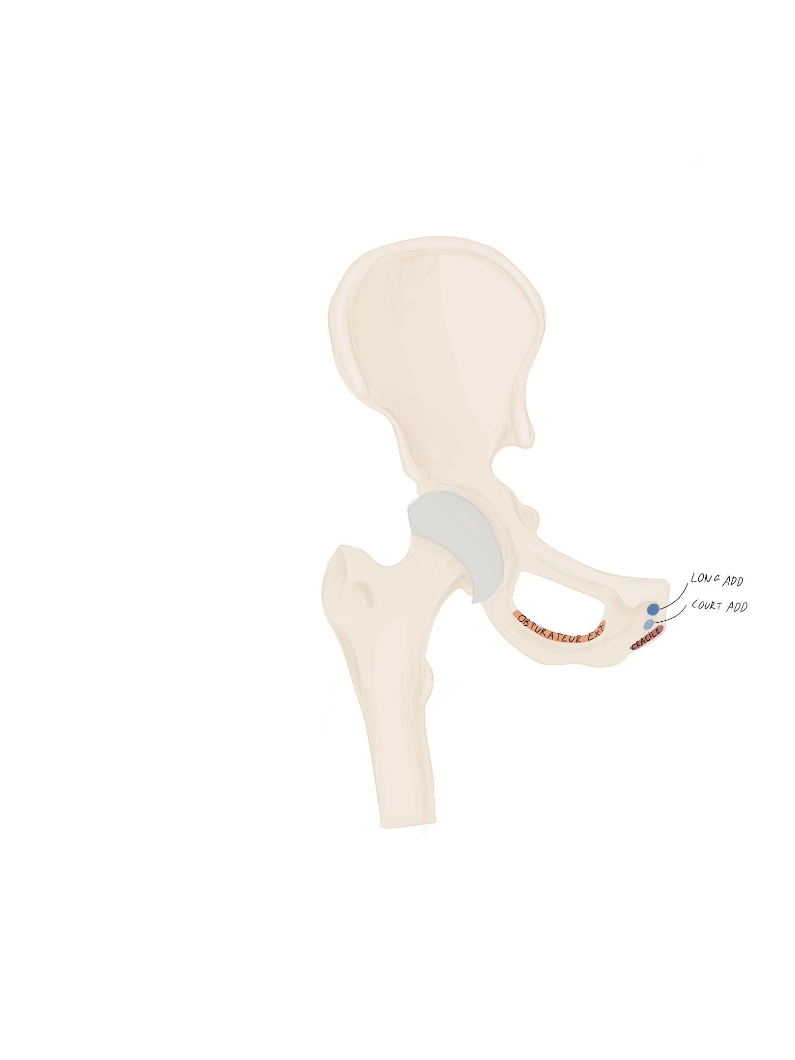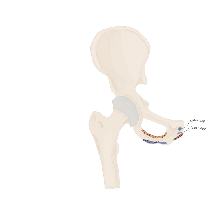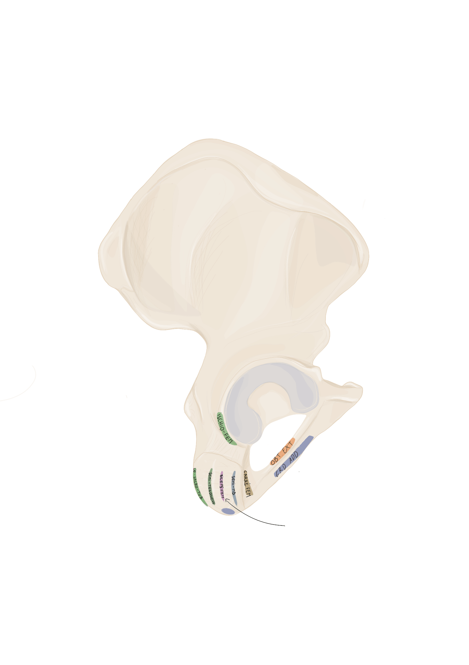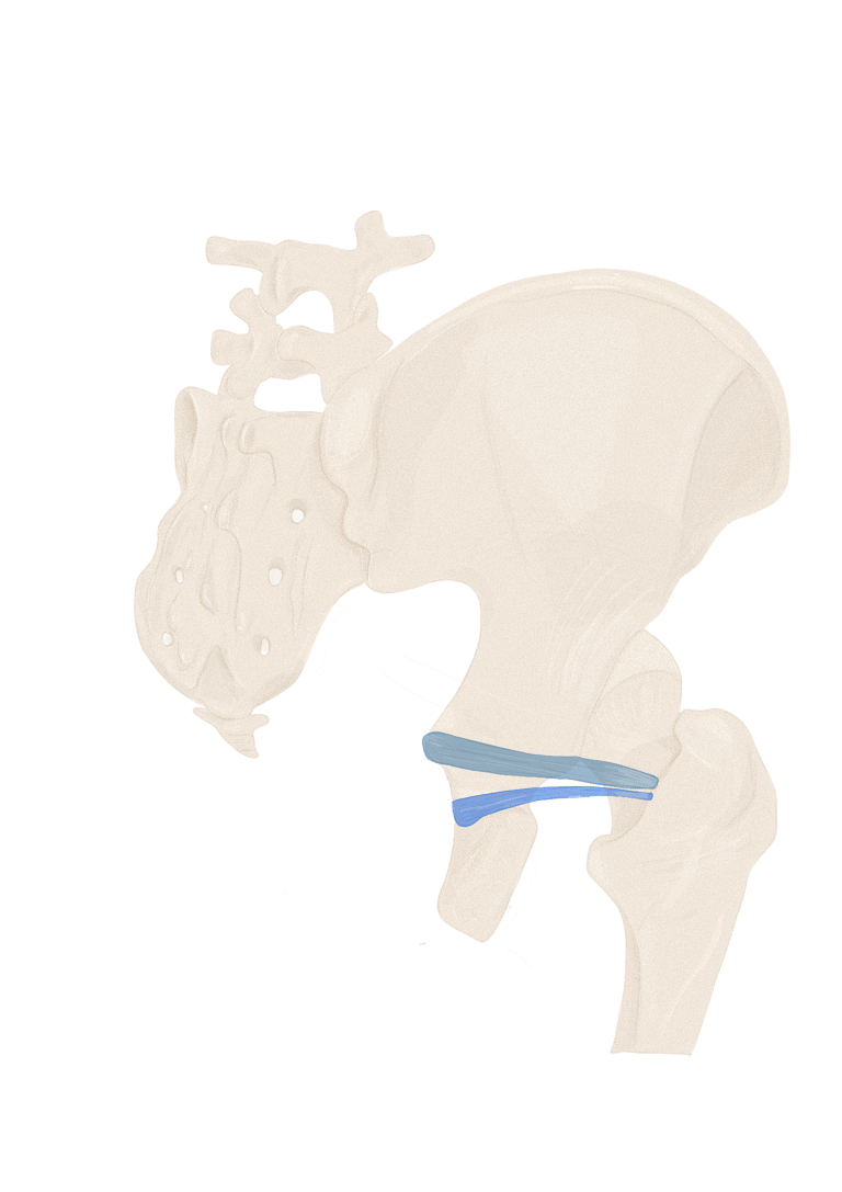 En arrière de lui se trouvera le muscle obturateur externe et en avant de lui le ligament ischio-fémoral.