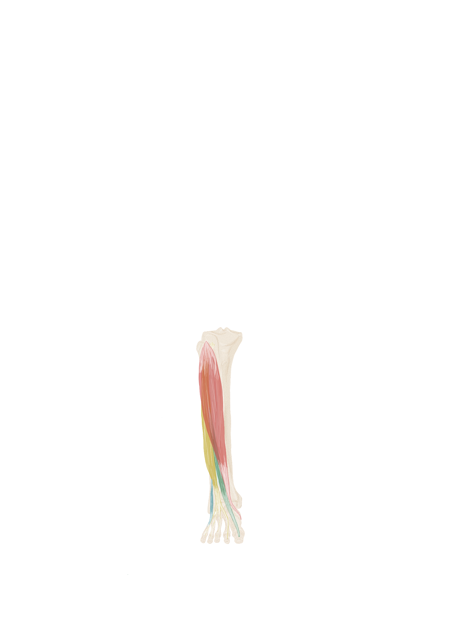 Chaque tendon va se diviser en 2 bandelettes qui contournent le tendon du long fléchisseur des orteils correspondant.
