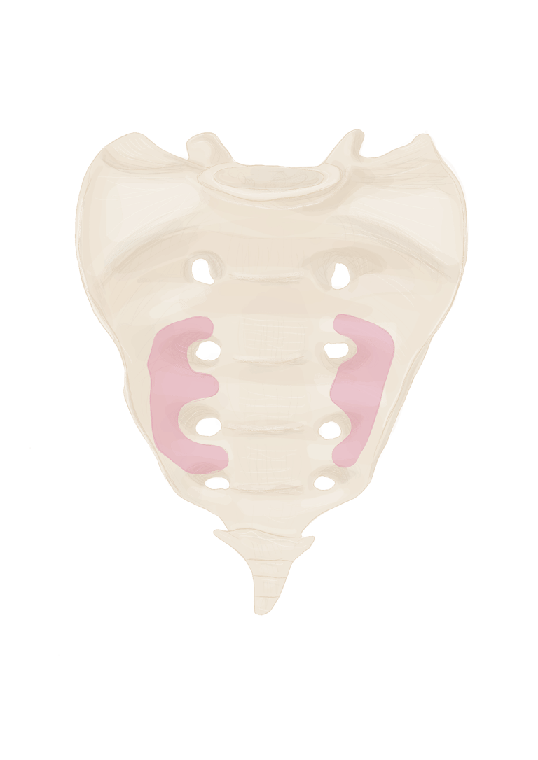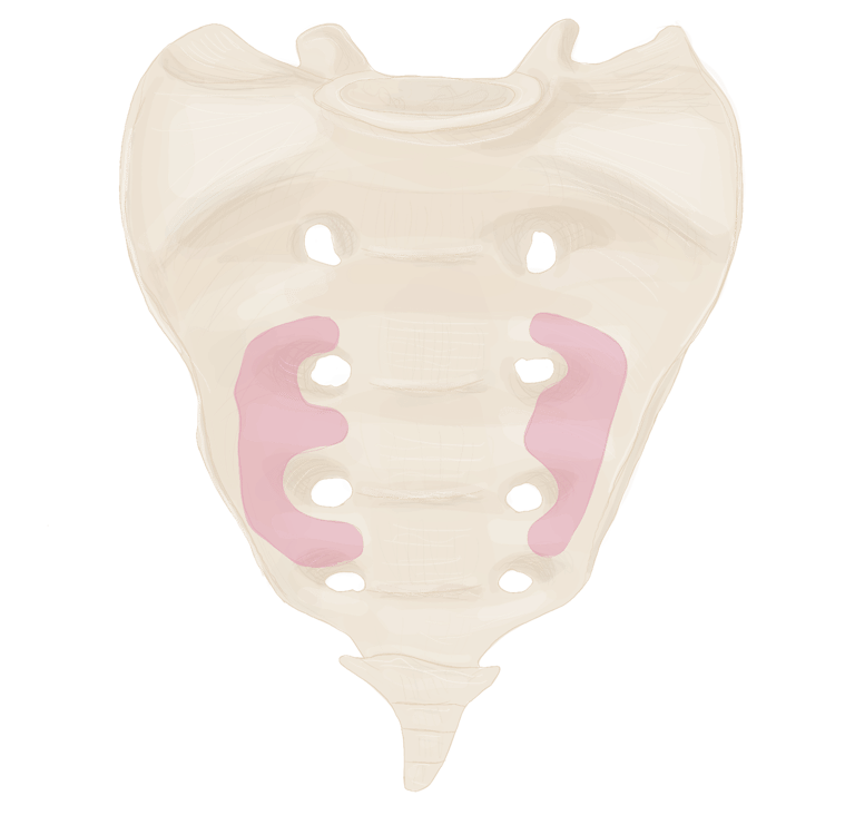 Le pourtour des 2ᵉ et 3ᵉ foramens sacrés.
