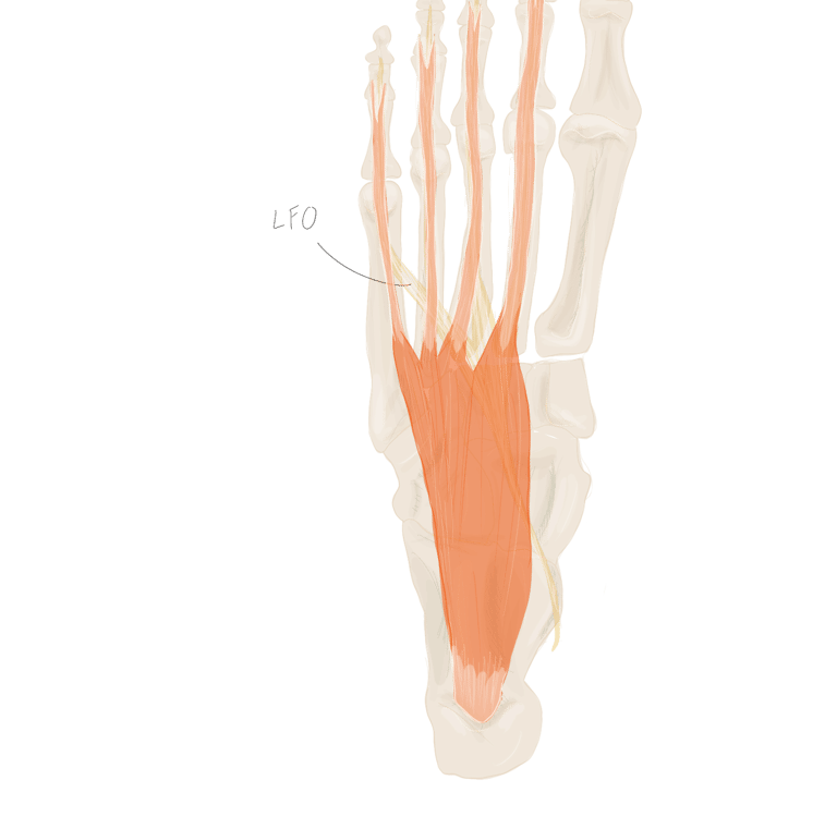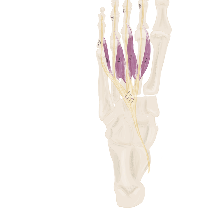 . En arrière de lui se trouve le muscle court fléchisseur des orteils.