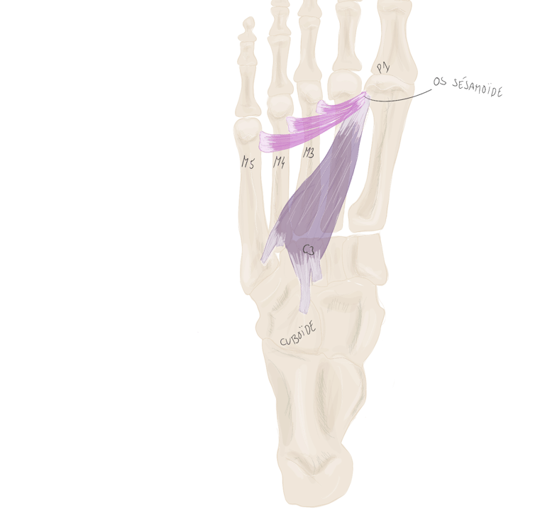 Ce sont des fléchisseurs de P1, Adducteur des orteils 3 à 5 (ils rapprochent ces orteils.