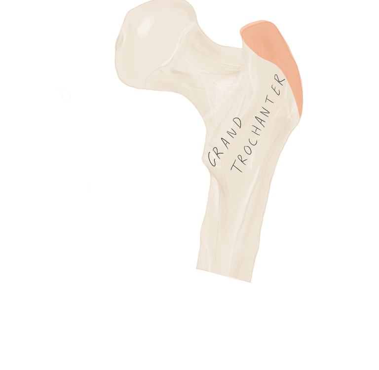 Face latérale du grand trochanter.