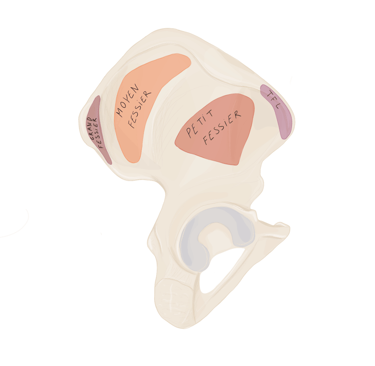 Superficiels : le grand fessier et le tenseur fascia lata