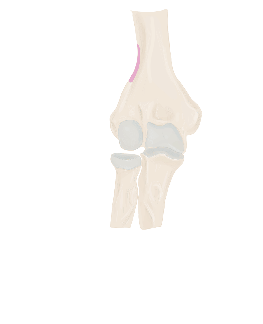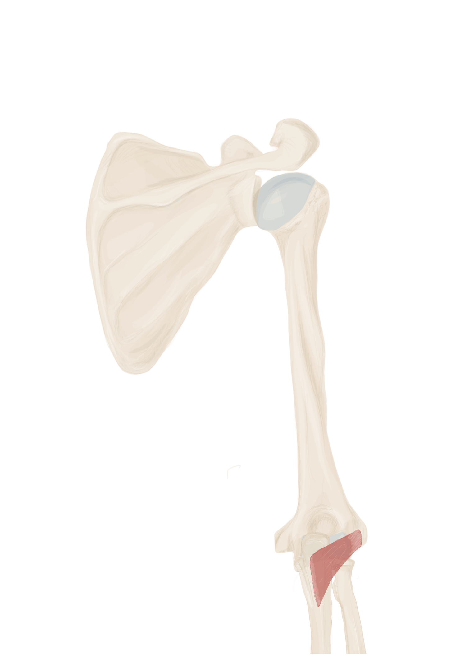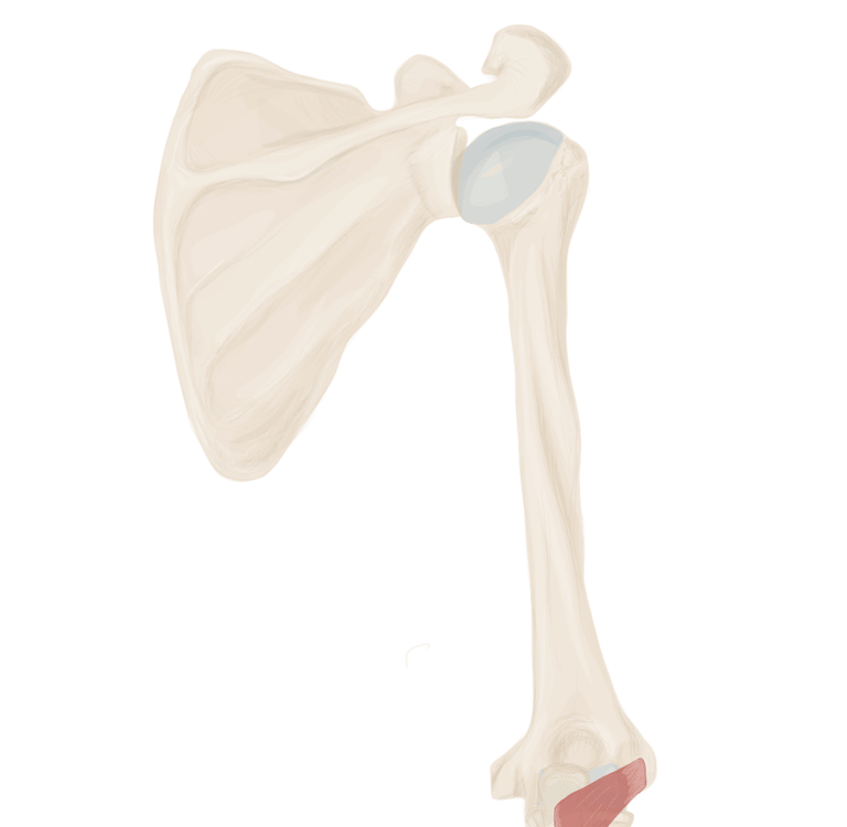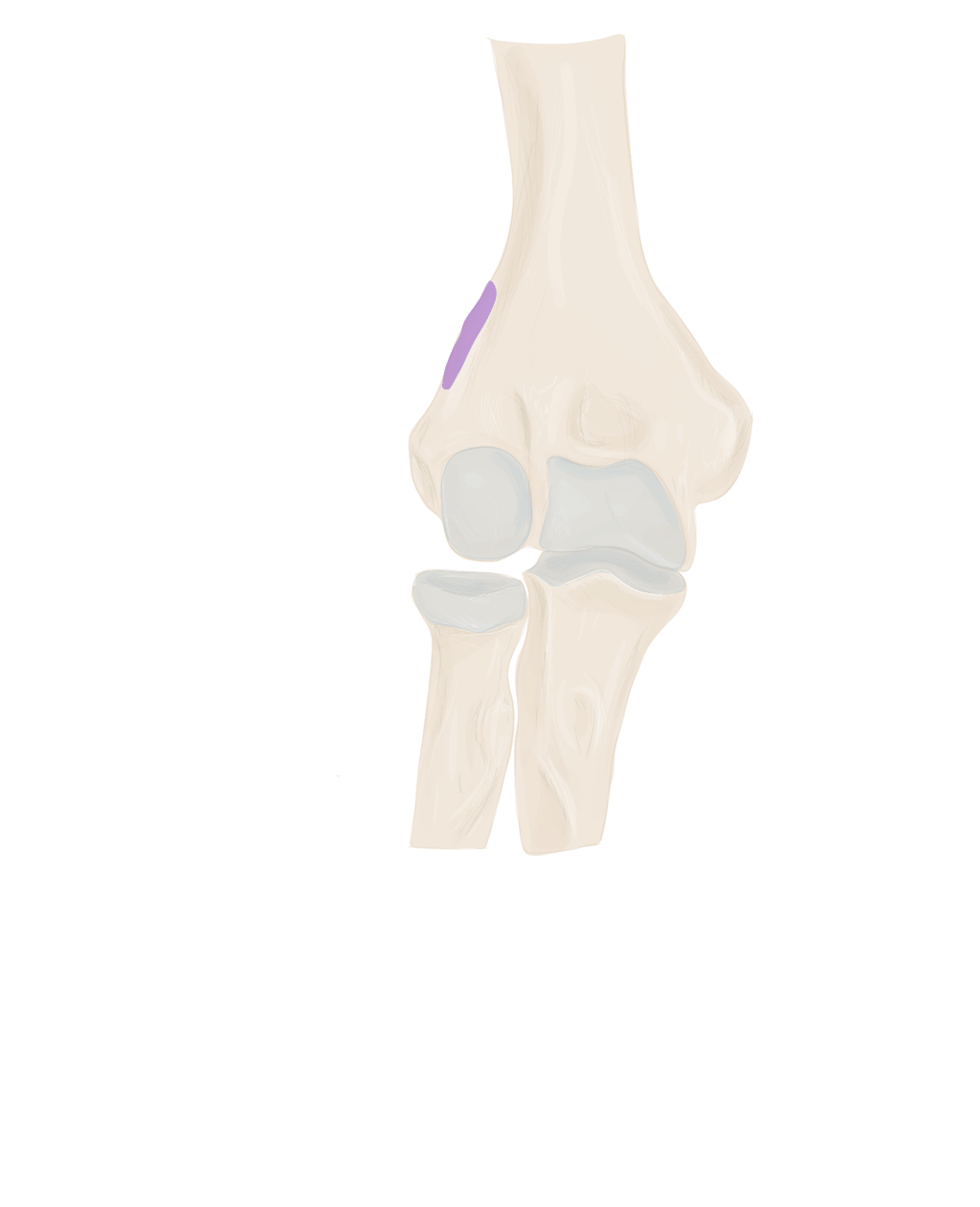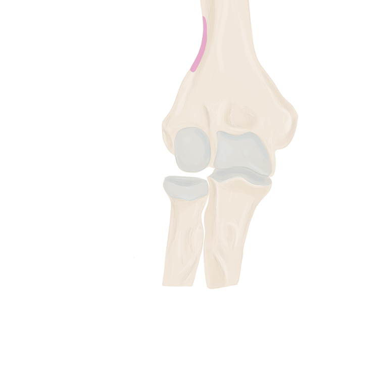 face Ant de l’épicondyle LAT de l’humérus, au dessus du chef court du supinateur