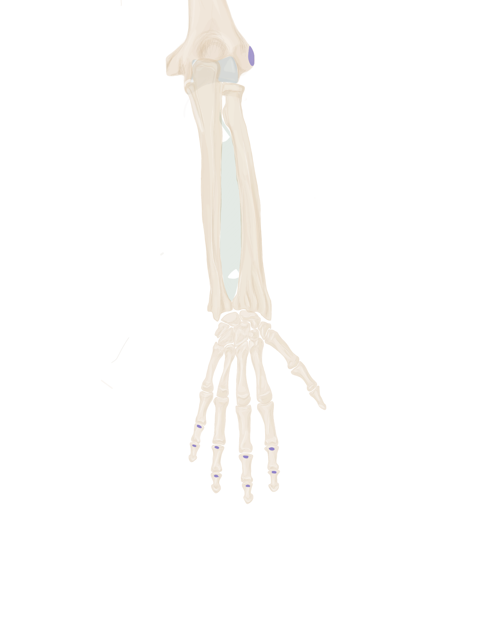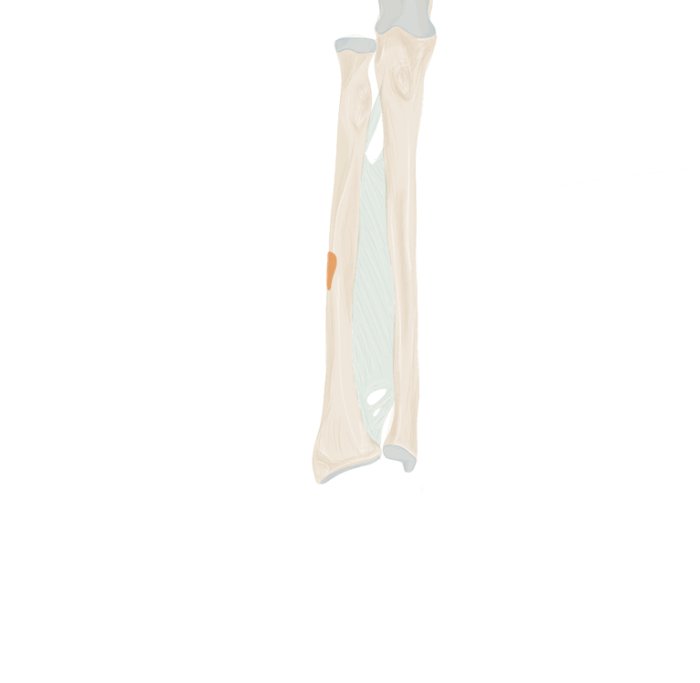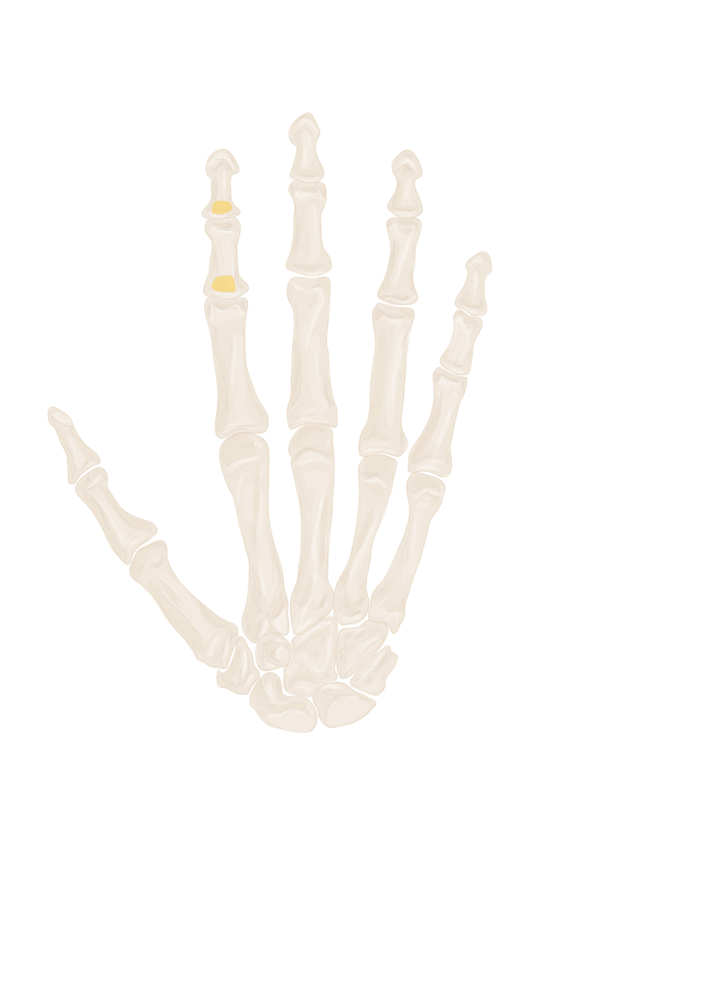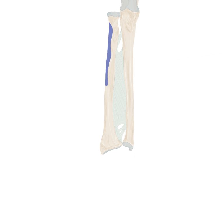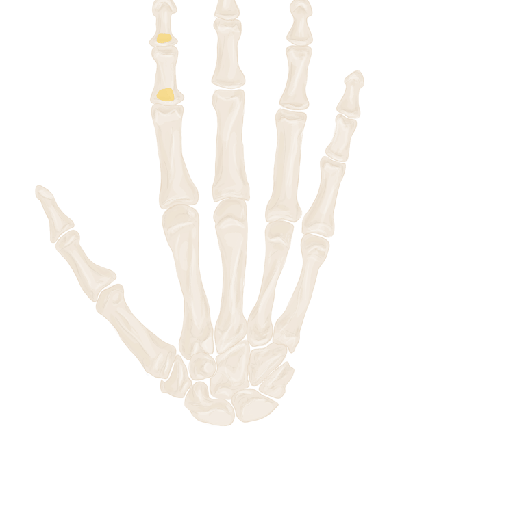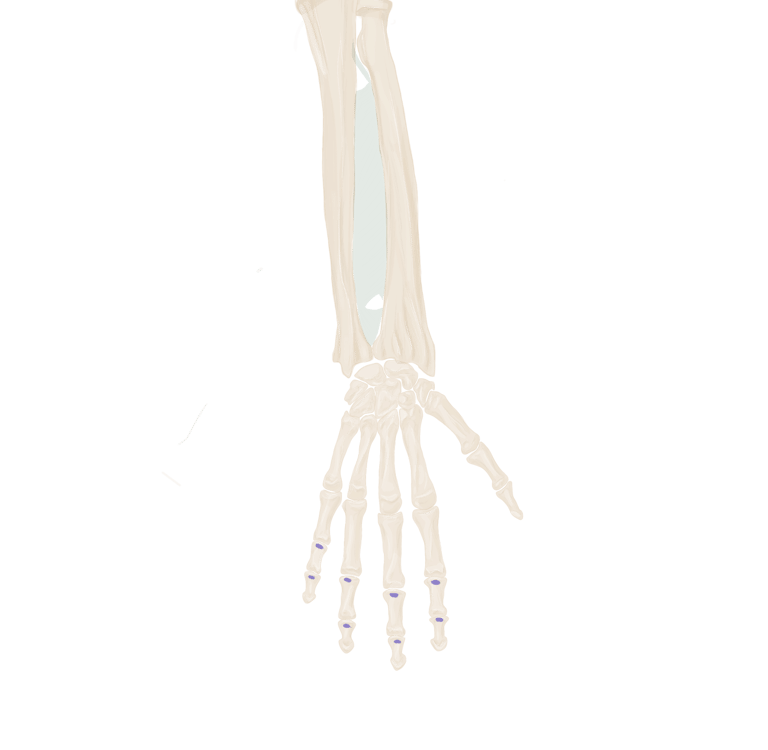 Sur la totalité de la face LAT des métacarpiens les plus près de l’axe de la main et
