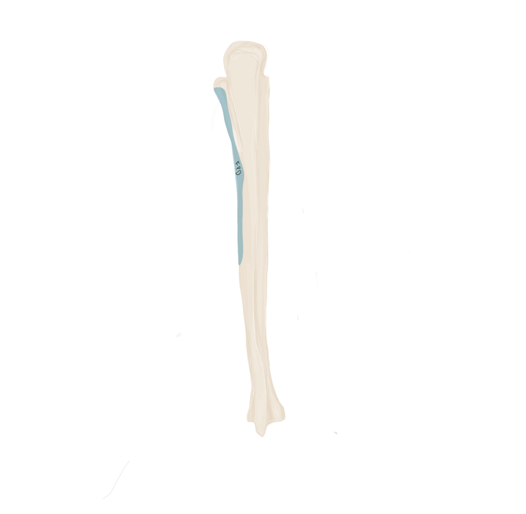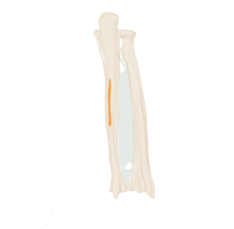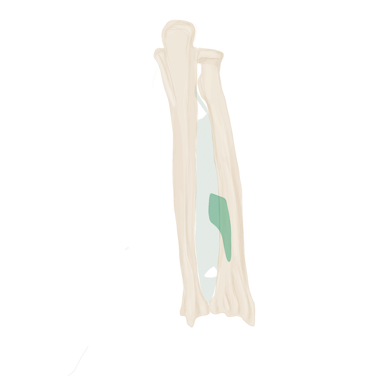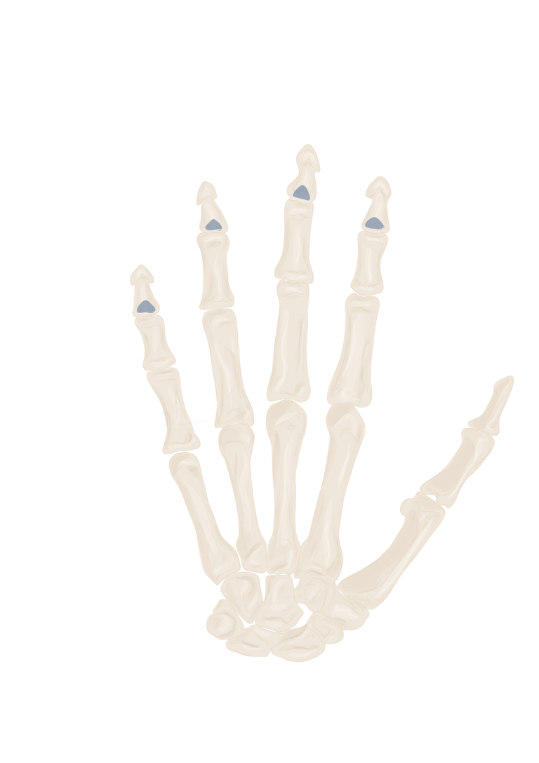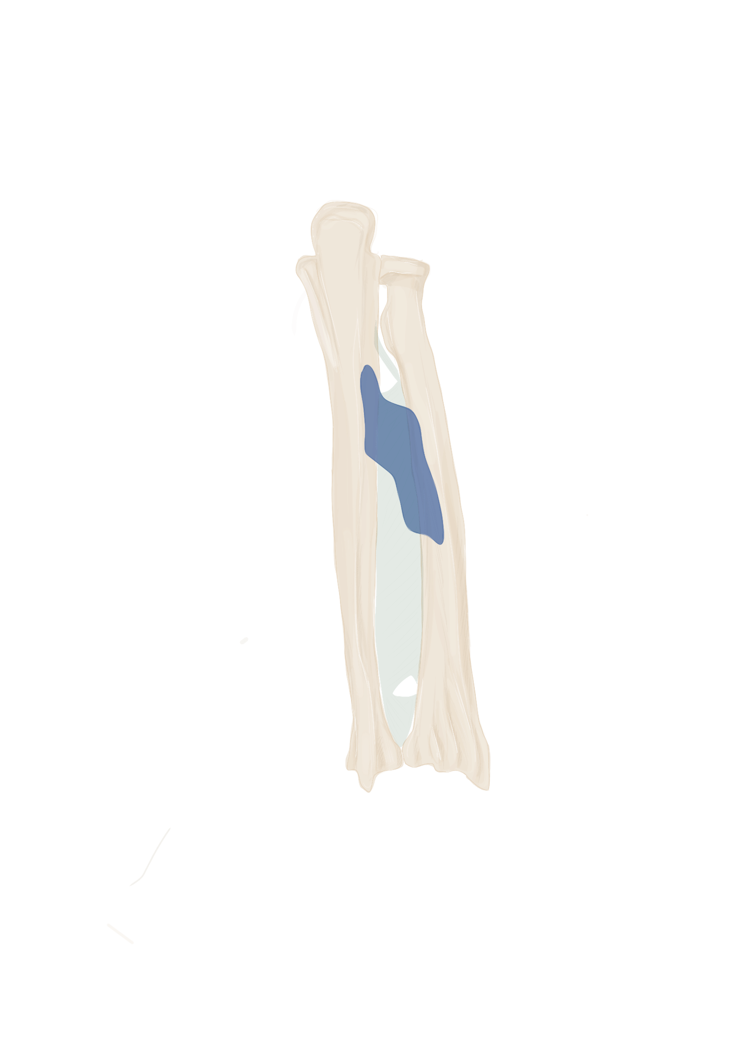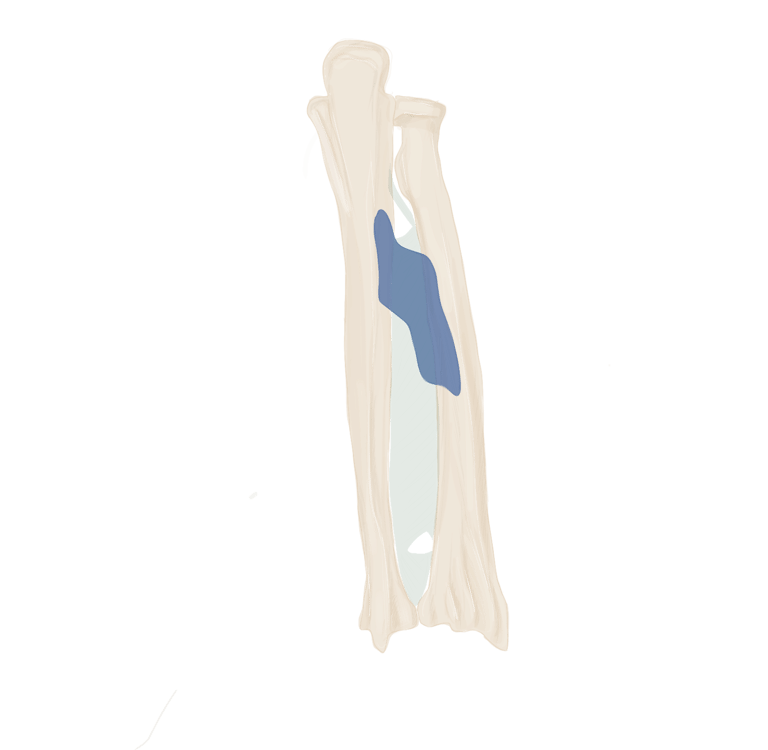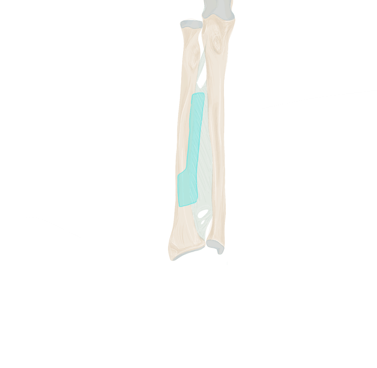 Sur la totalité de la face LAT des métacarpiens les plus près de l’axe de la main et