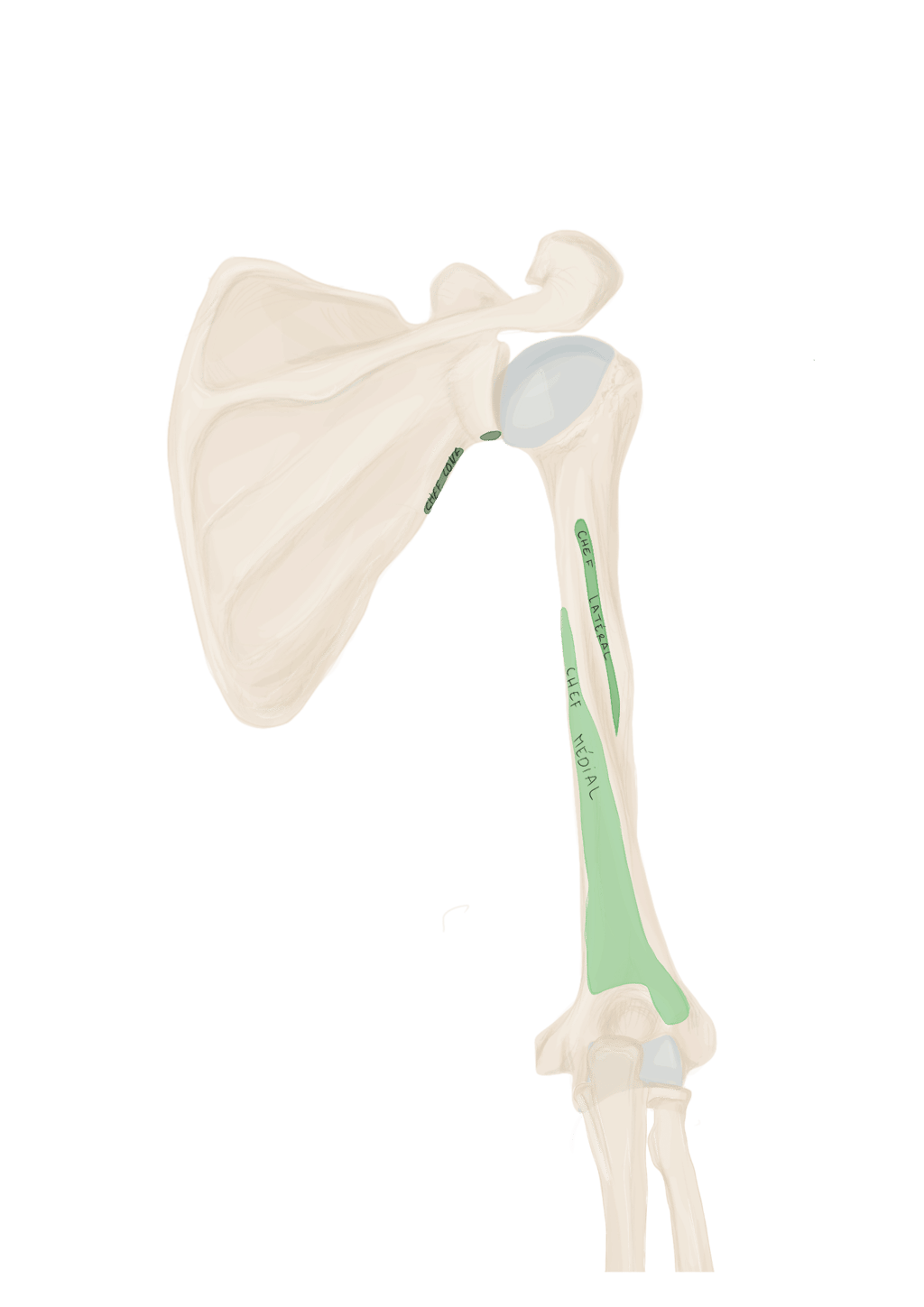 Par des fibres musculaires sur le septum intermusculaire LAT du bras