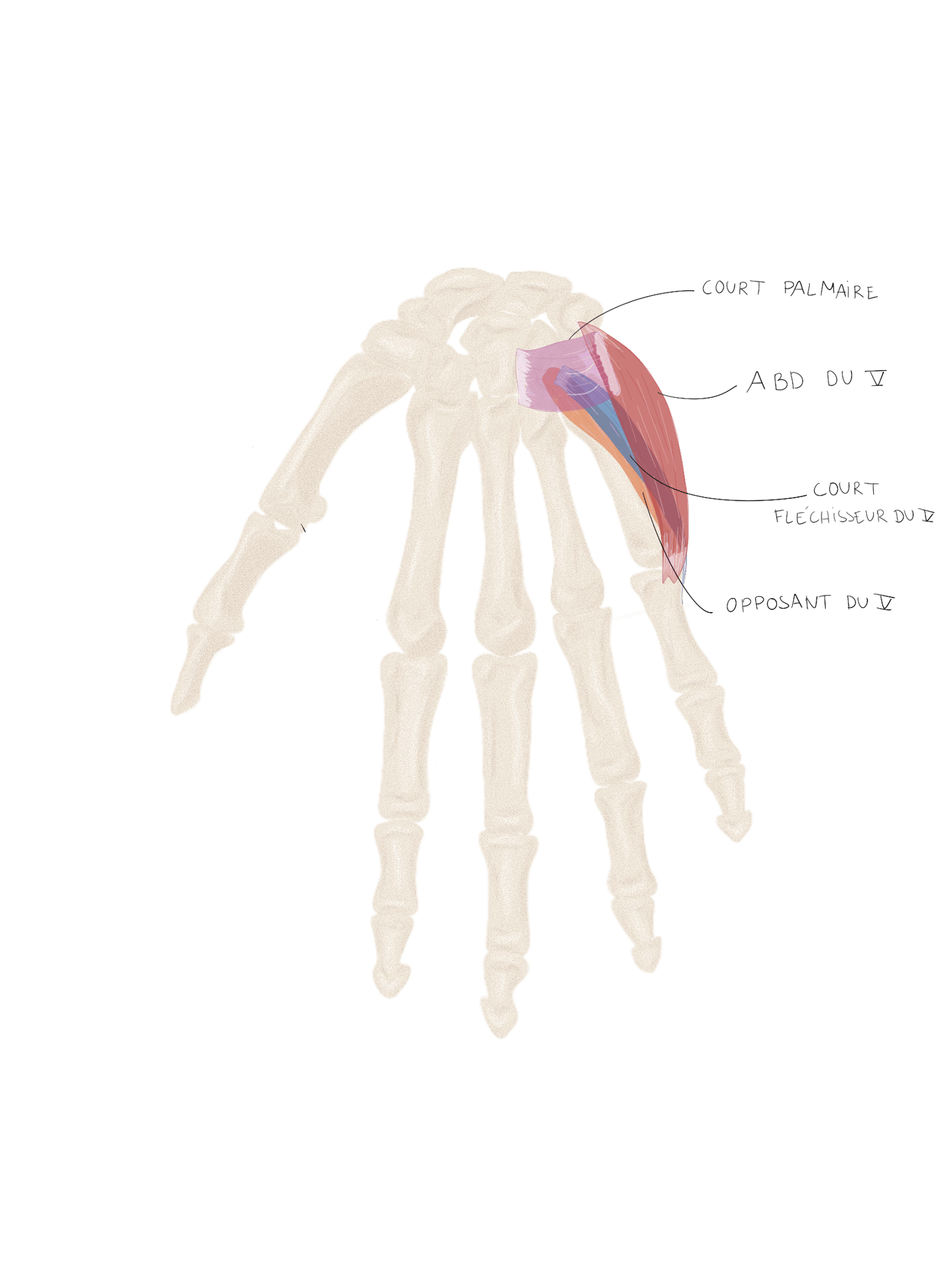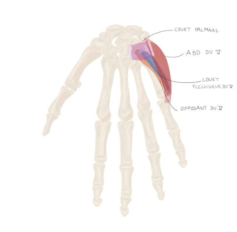 Pronateur du 1 métacarpien, opposition, flexion, adduction, stabilisateur métacarpo-phalangienne du I