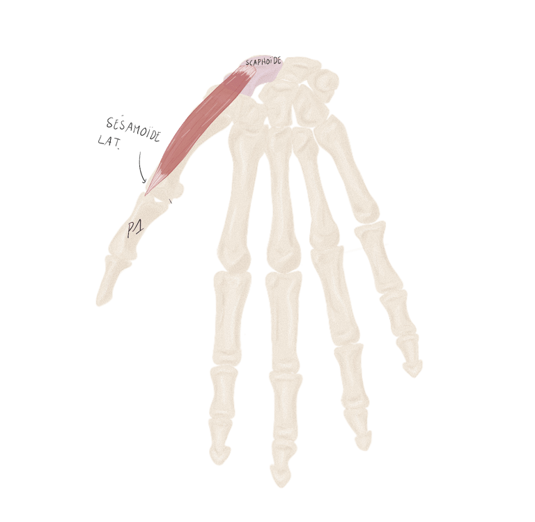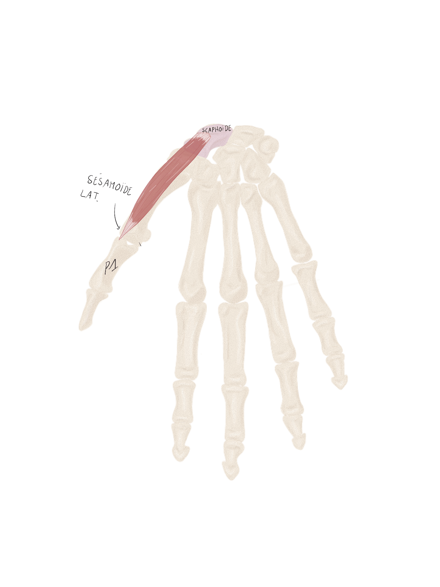Pronateur et abducteur du 1er méta et fléchisseur de P1, stabilisateur de la métacarpo-phalangienne du I