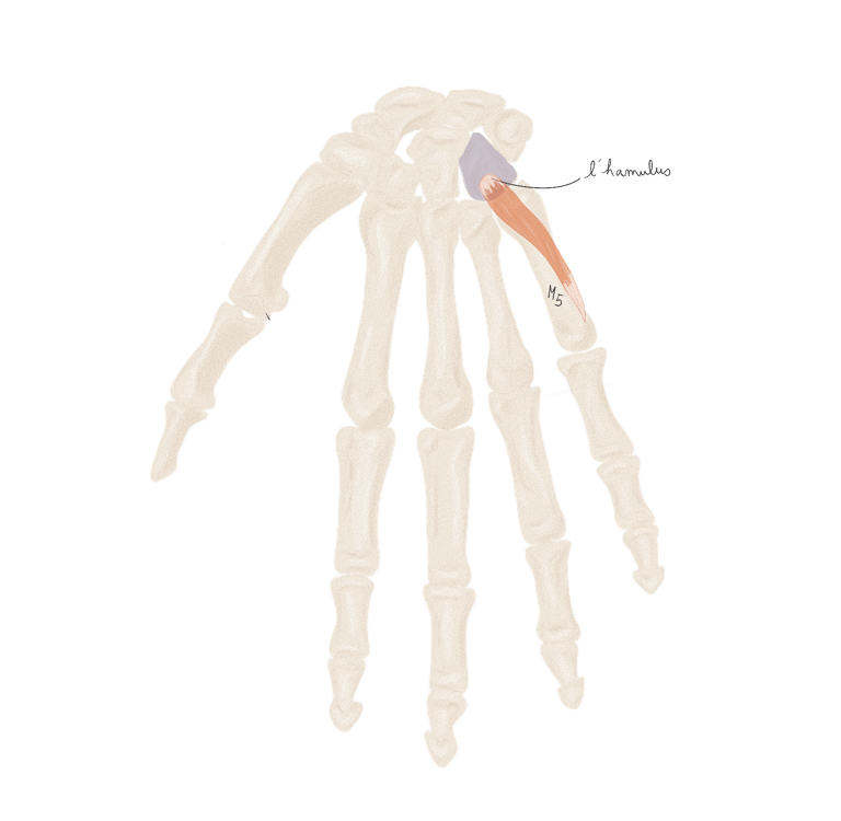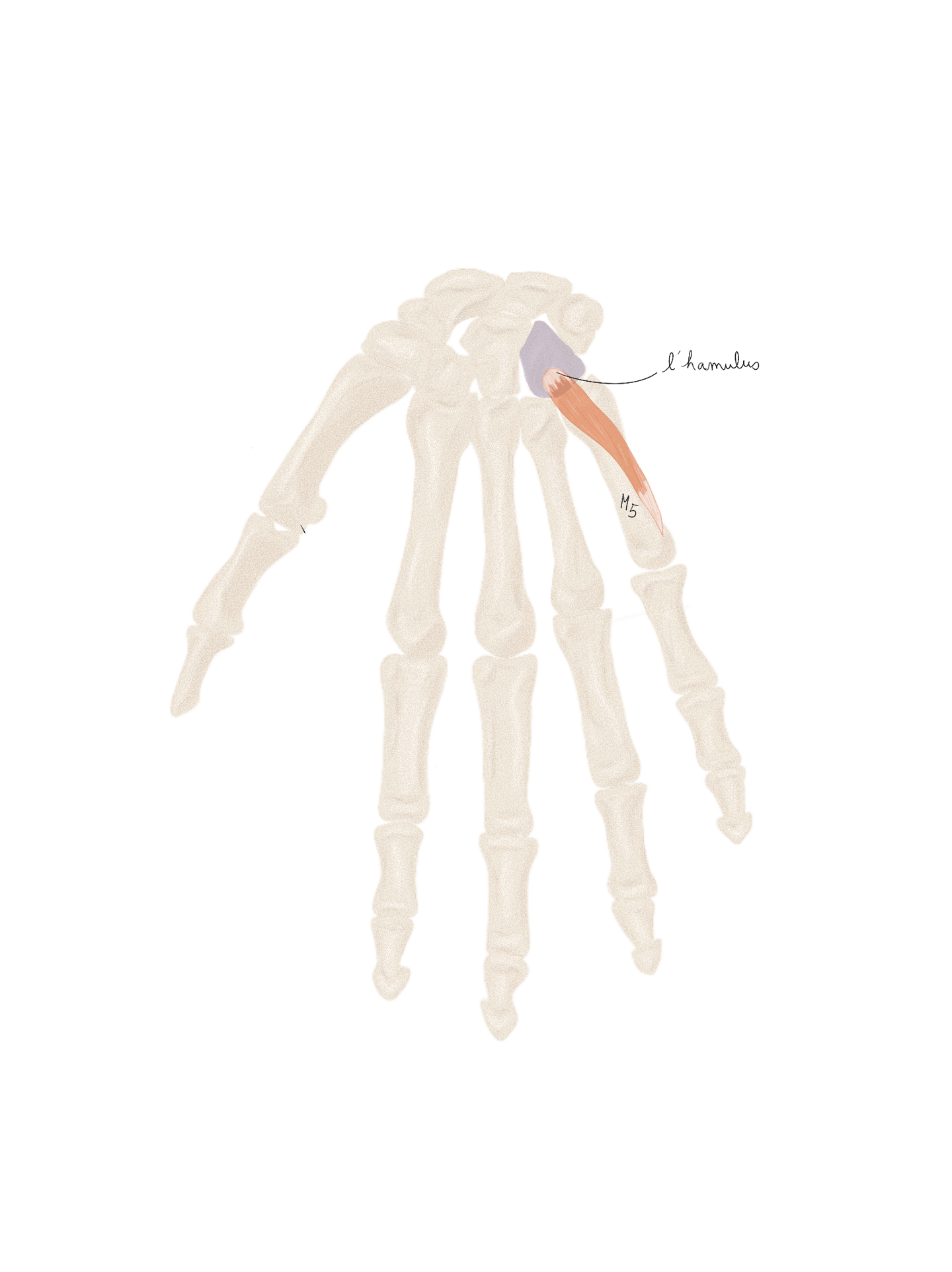 Face ant et hamulus de l’hamatum, partie antero-médiale du rétinaculum des fléchisseurs