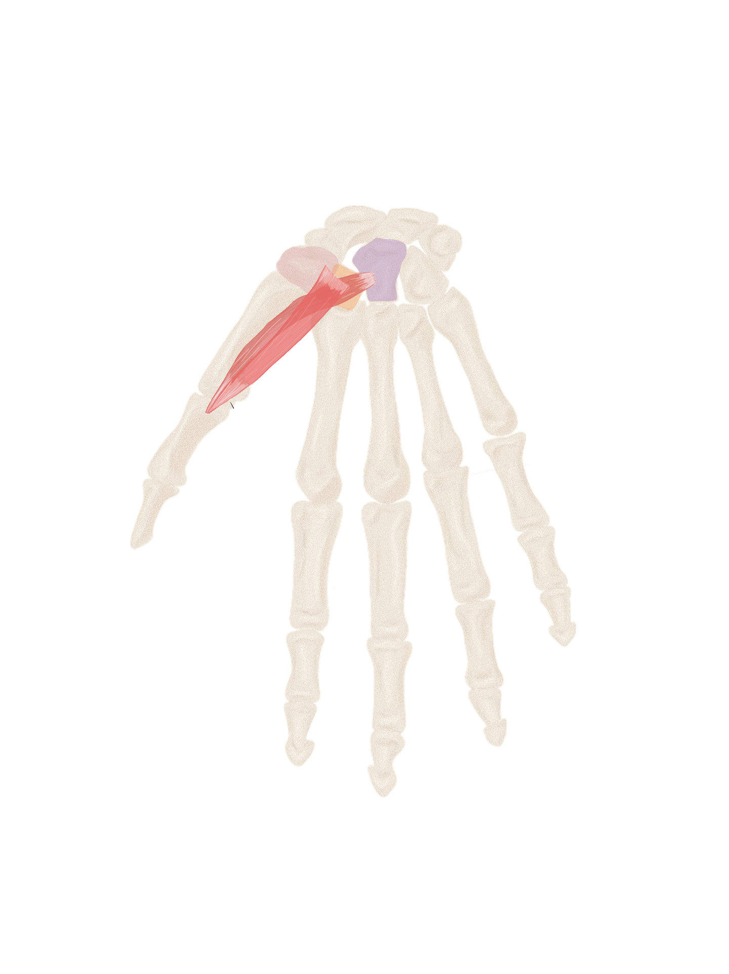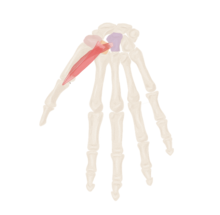 Rapproche le pouce de l’axe de la main, et associe au 1er IOP pour tous ses mouvements. Il participe à toutes les prises. Stabilisateur de la métacarpo-phalangienne