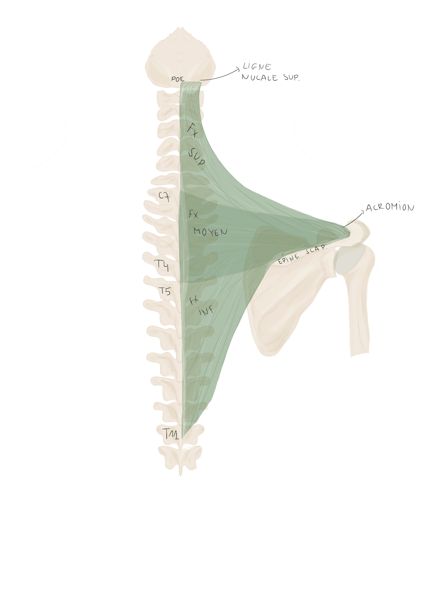 Trapèze face ant et partie lat du rétinaculum des fléchisseurs
