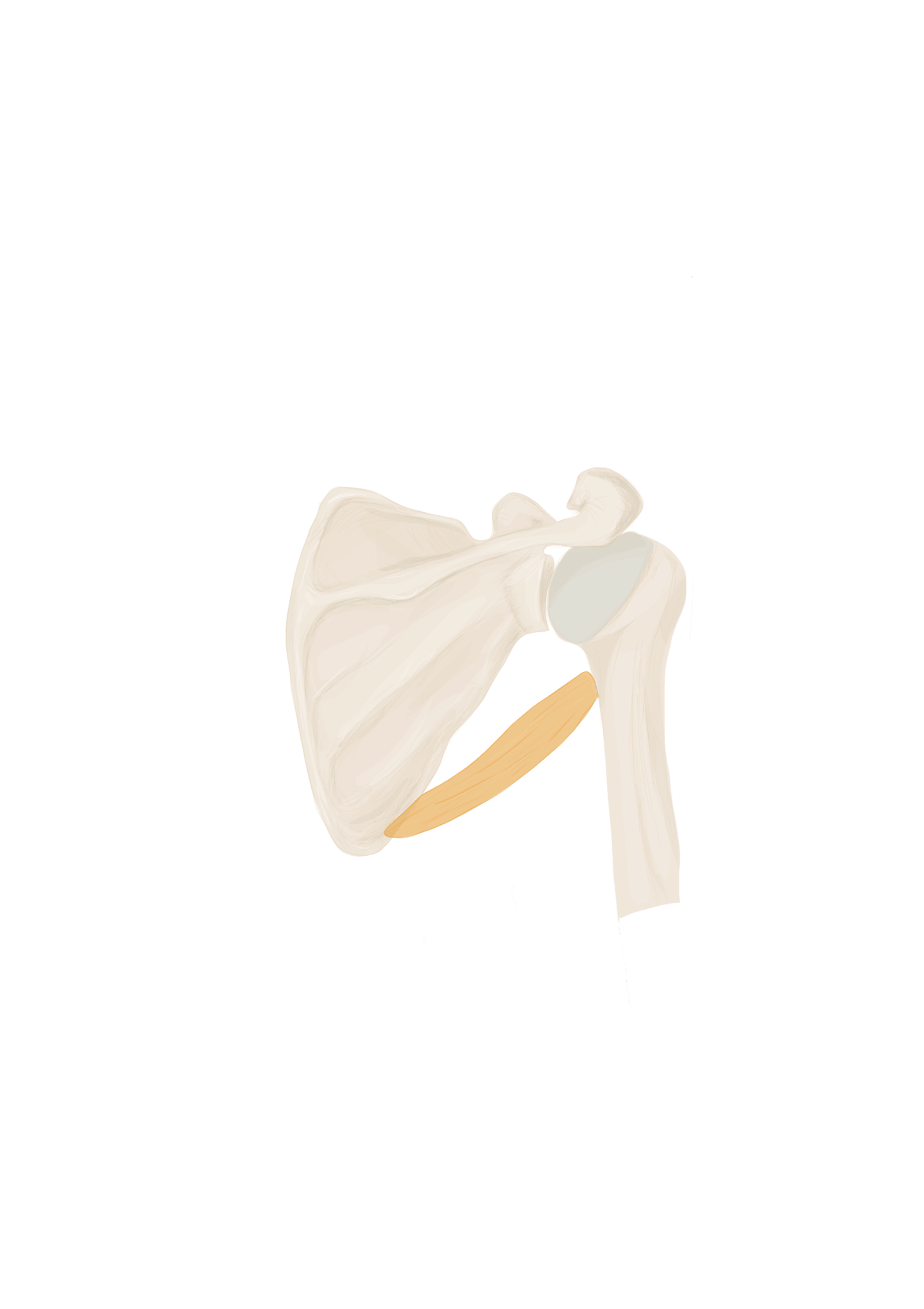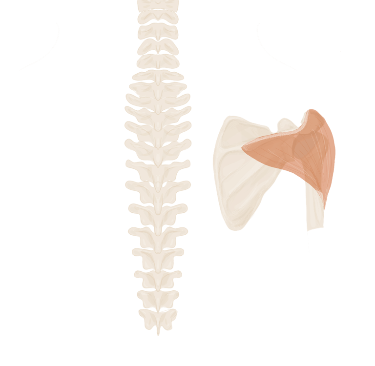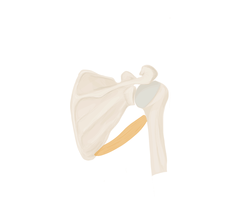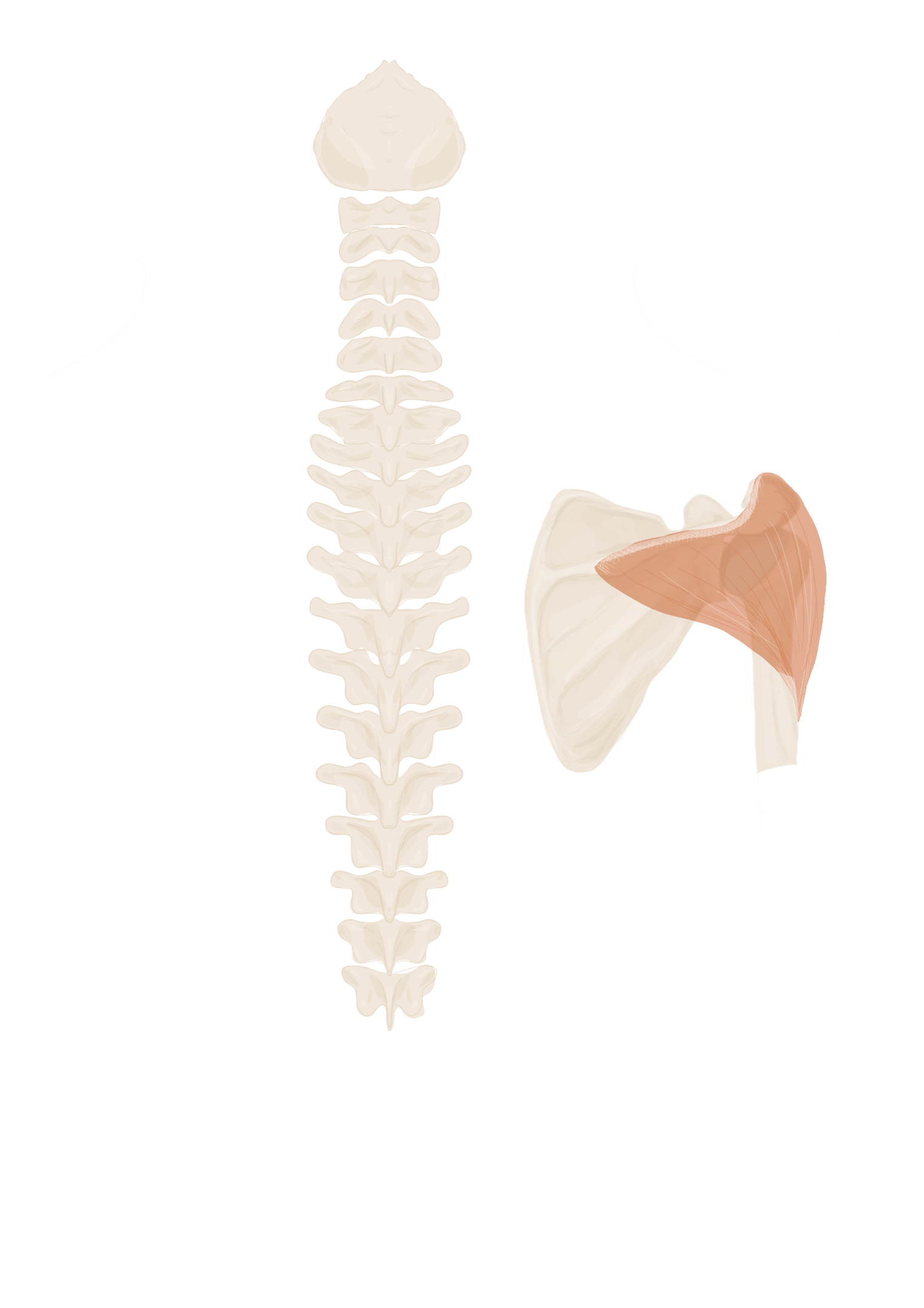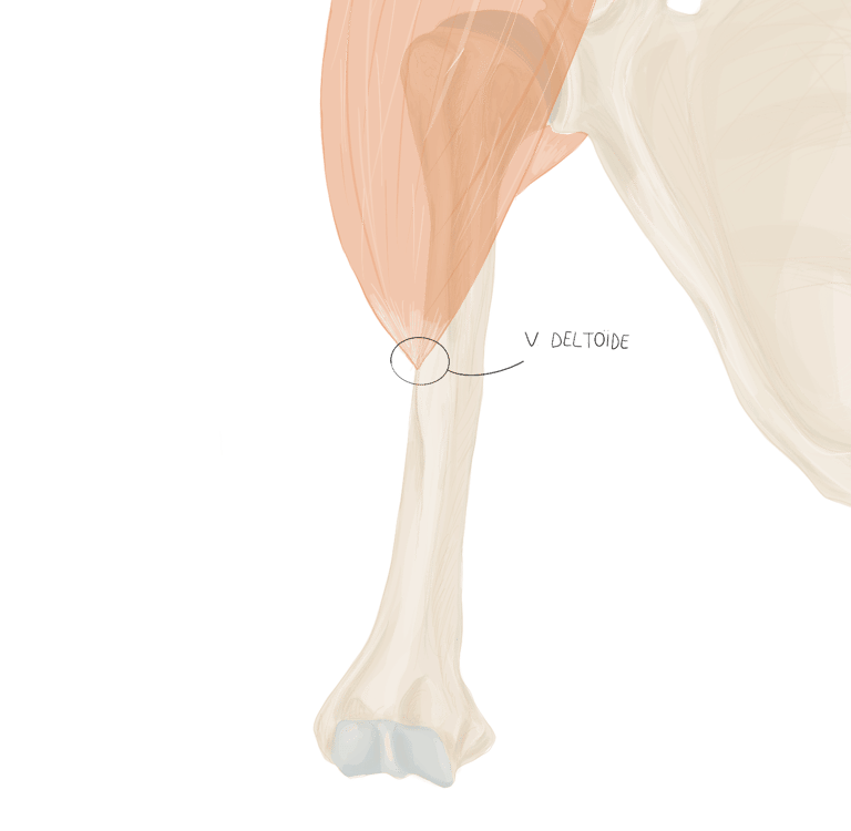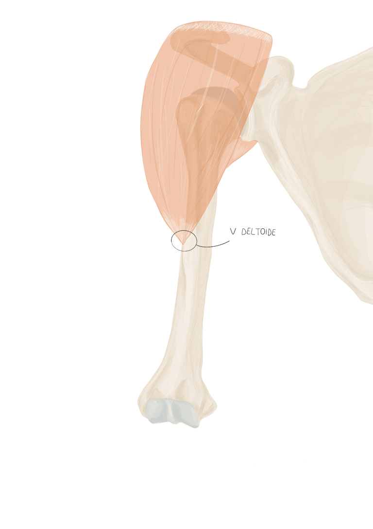 Épais, triangulaire, large en dedans, en avant de la scapula et de l’articulation scapulo-humérale.