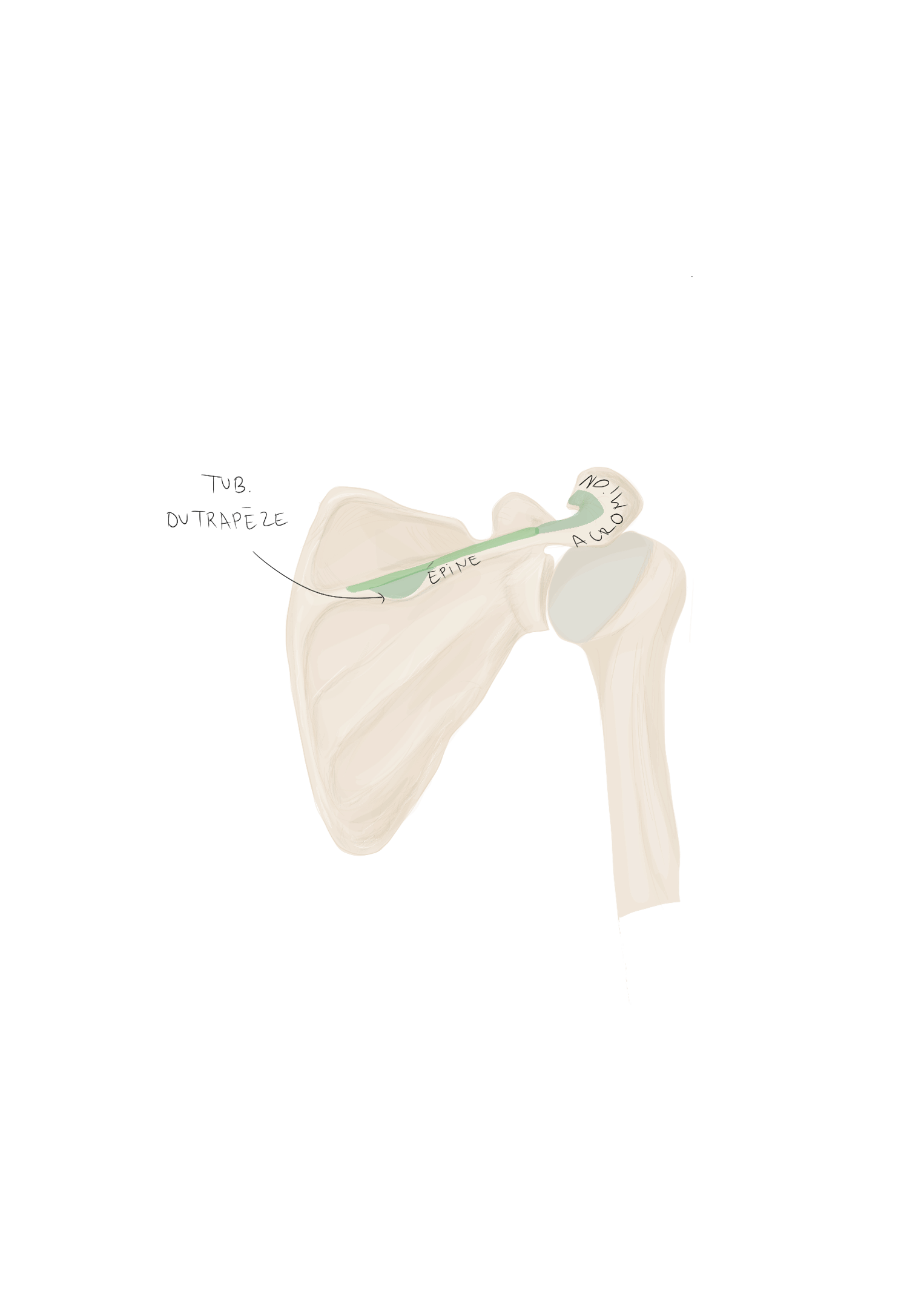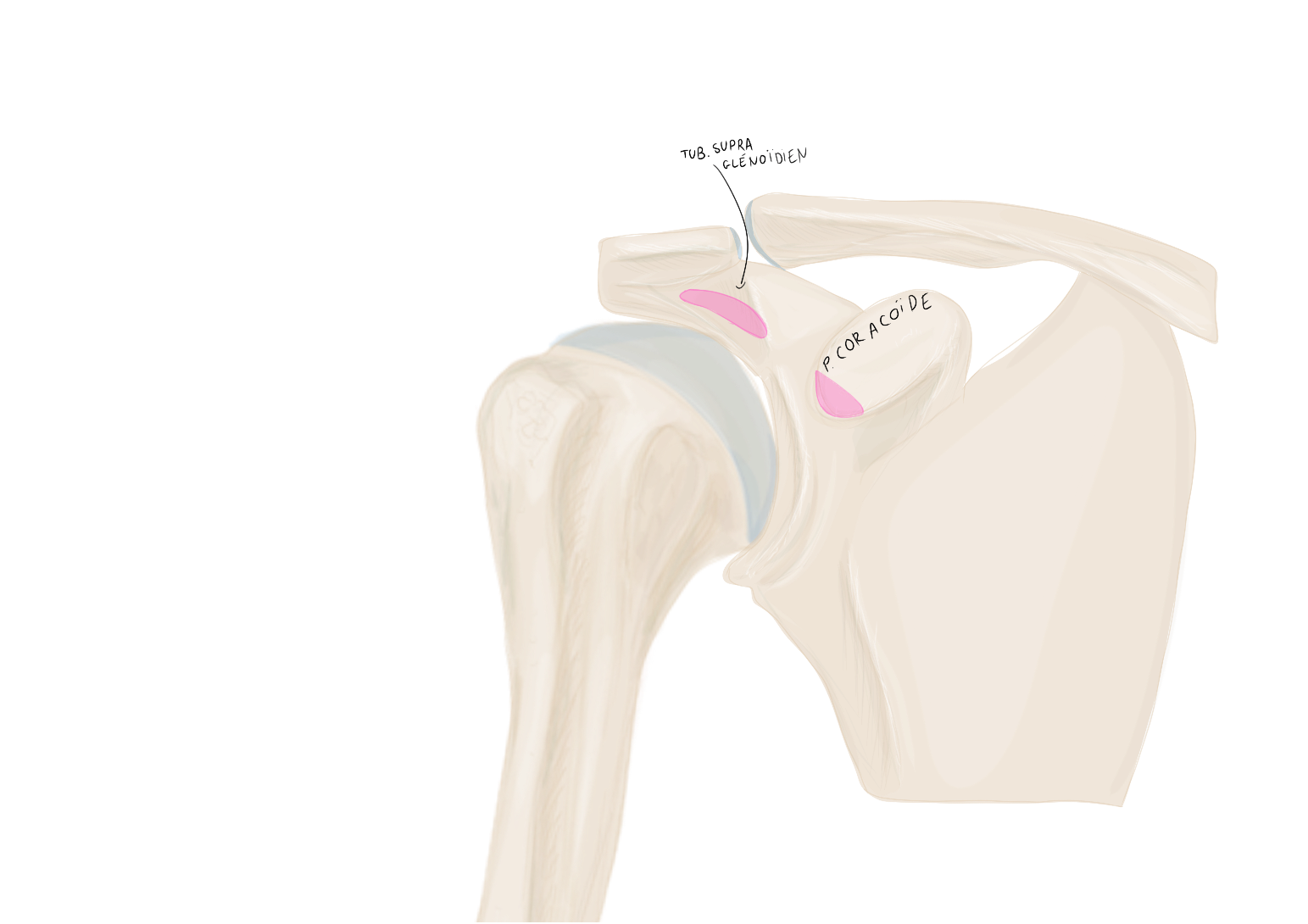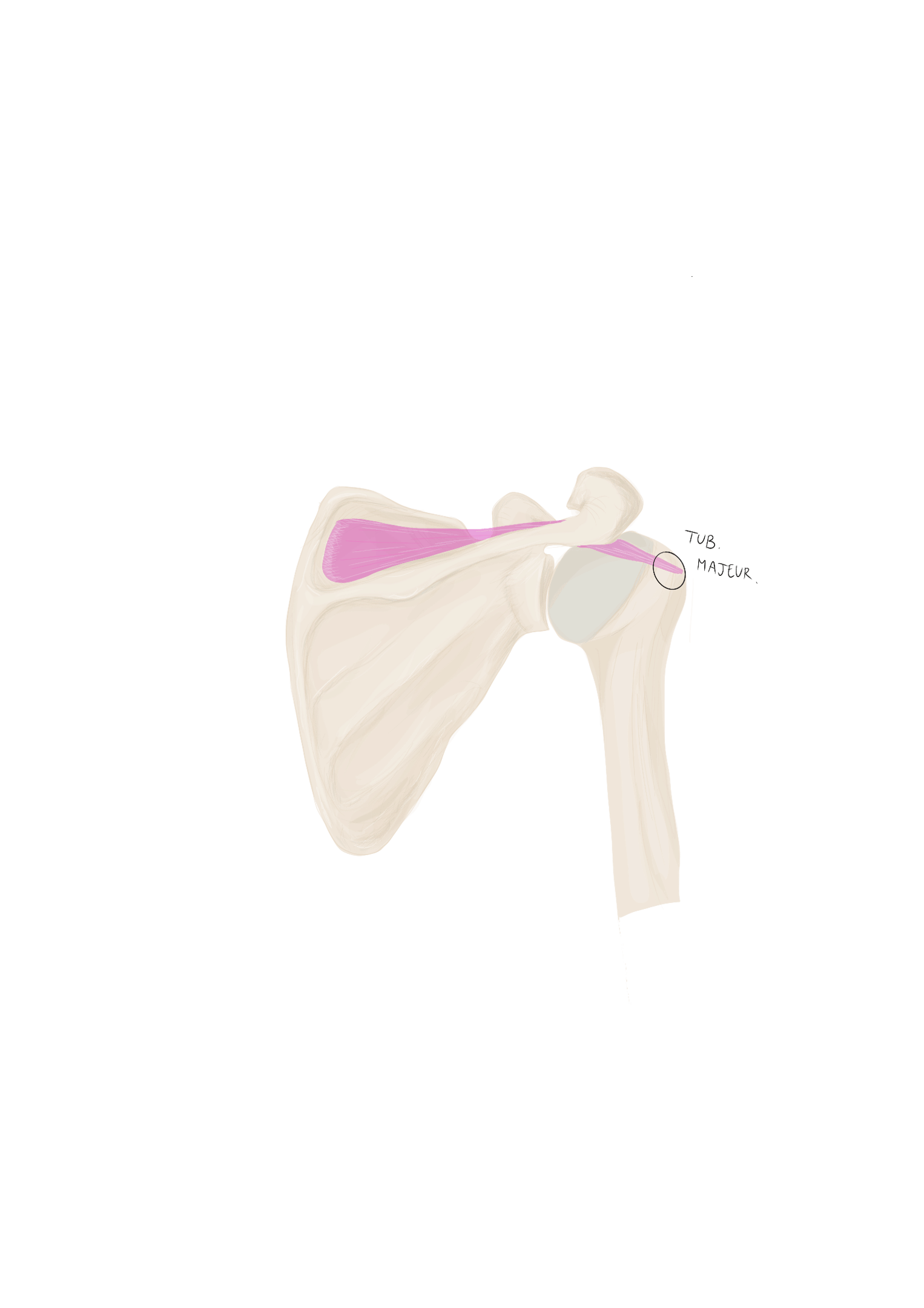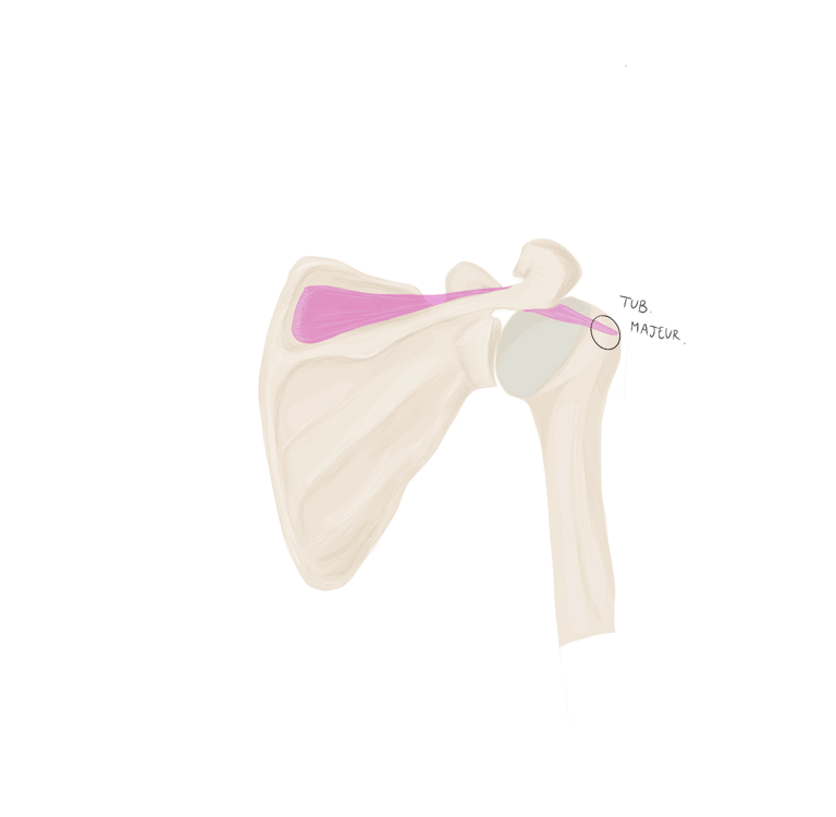 Il passe sous l’articulation acromio-claviculaire et au-dessus de l’articulation scapulo-humérale