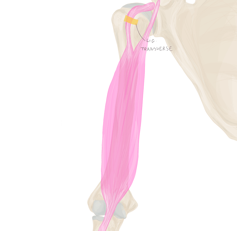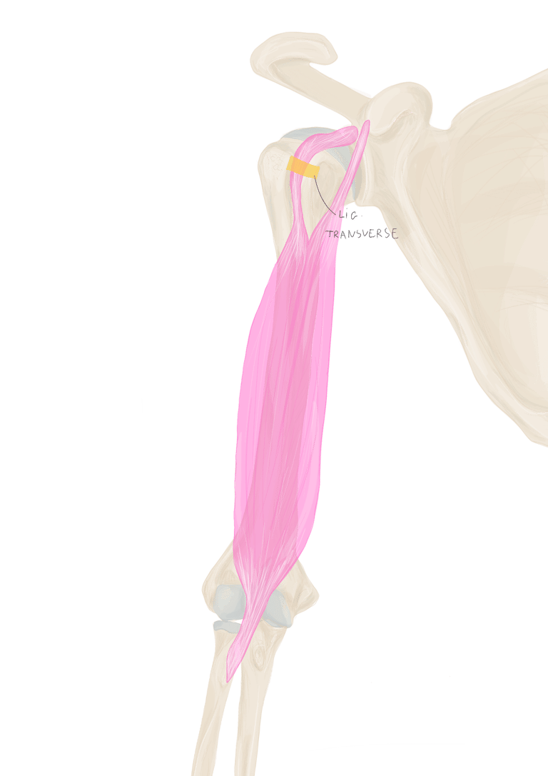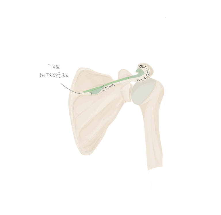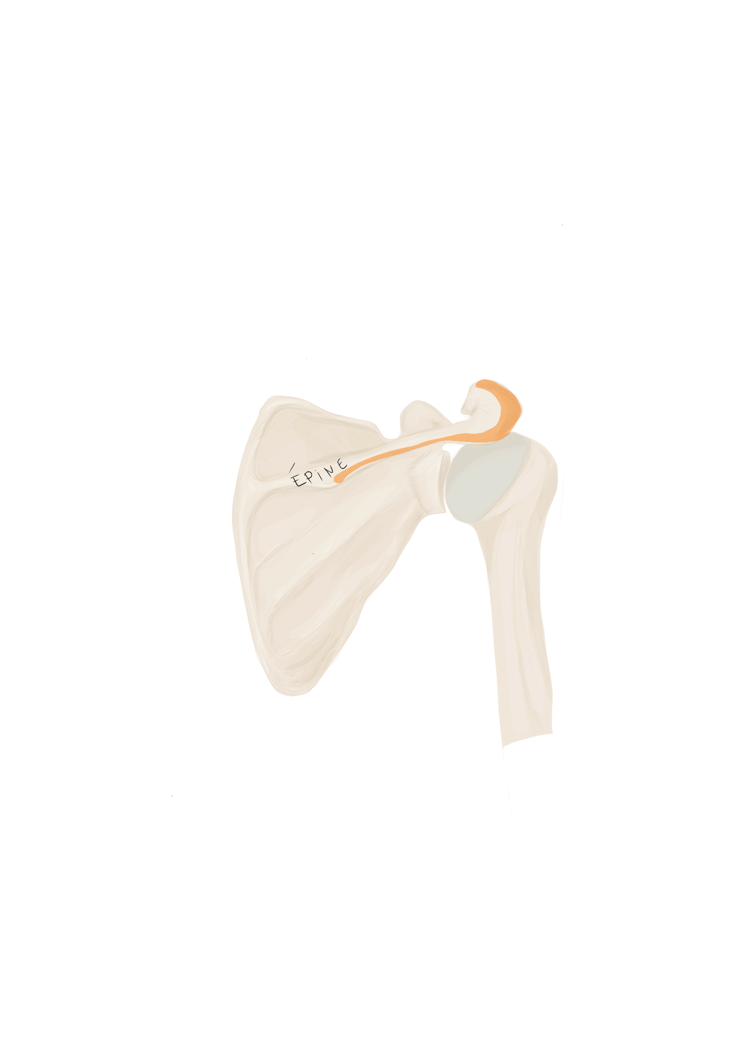 Il passe sous l’articulation acromio-claviculaire et au-dessus de l’articulation scapulo-humérale