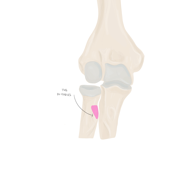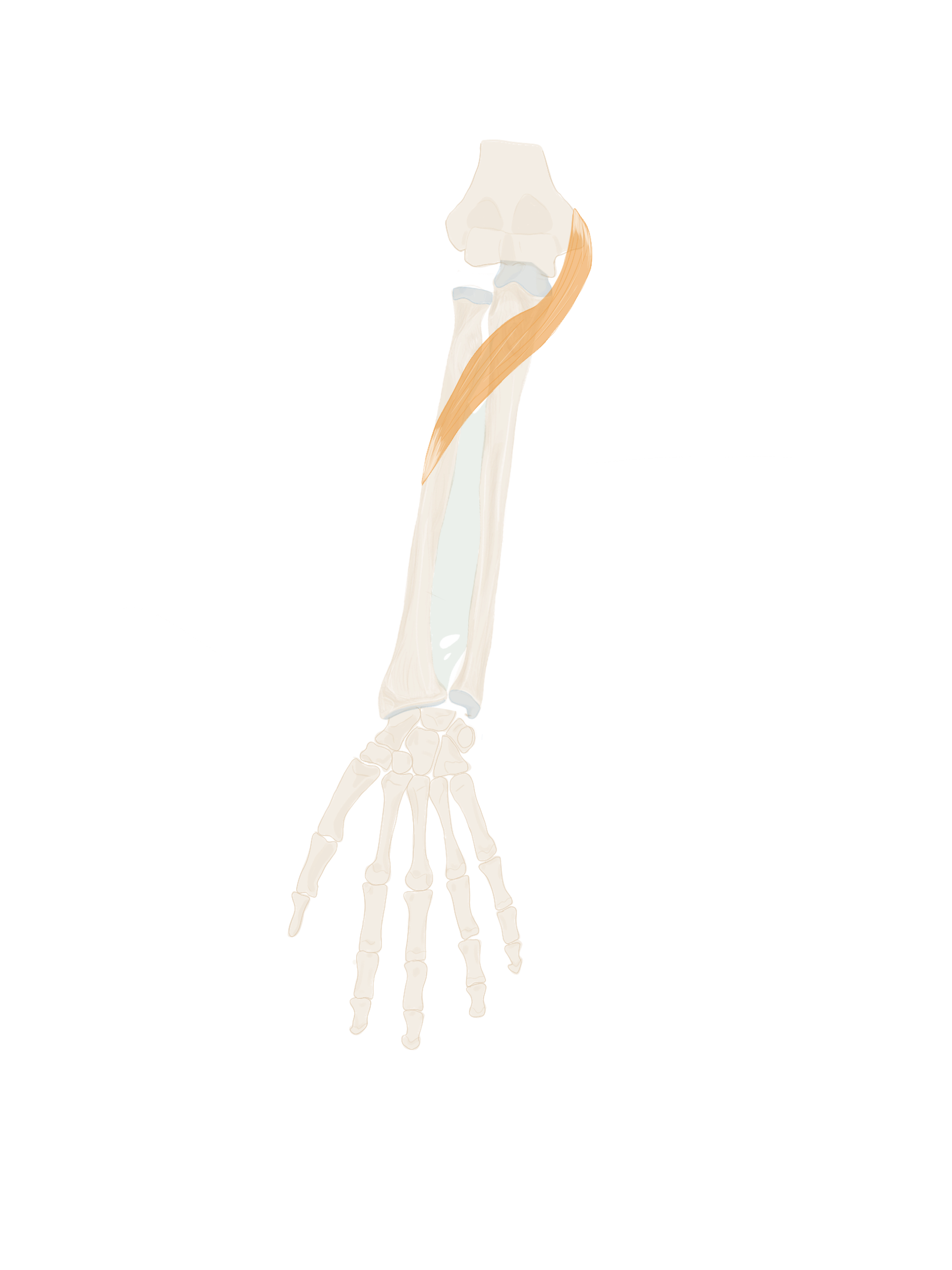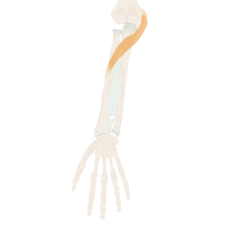 Ses fibres contournent en spirale le 1/3 SUP du radius.
