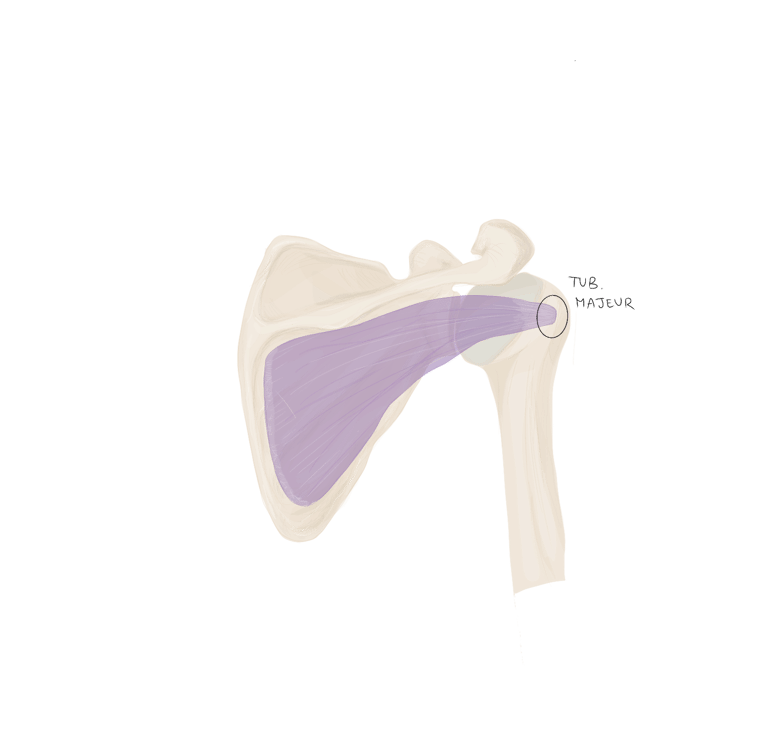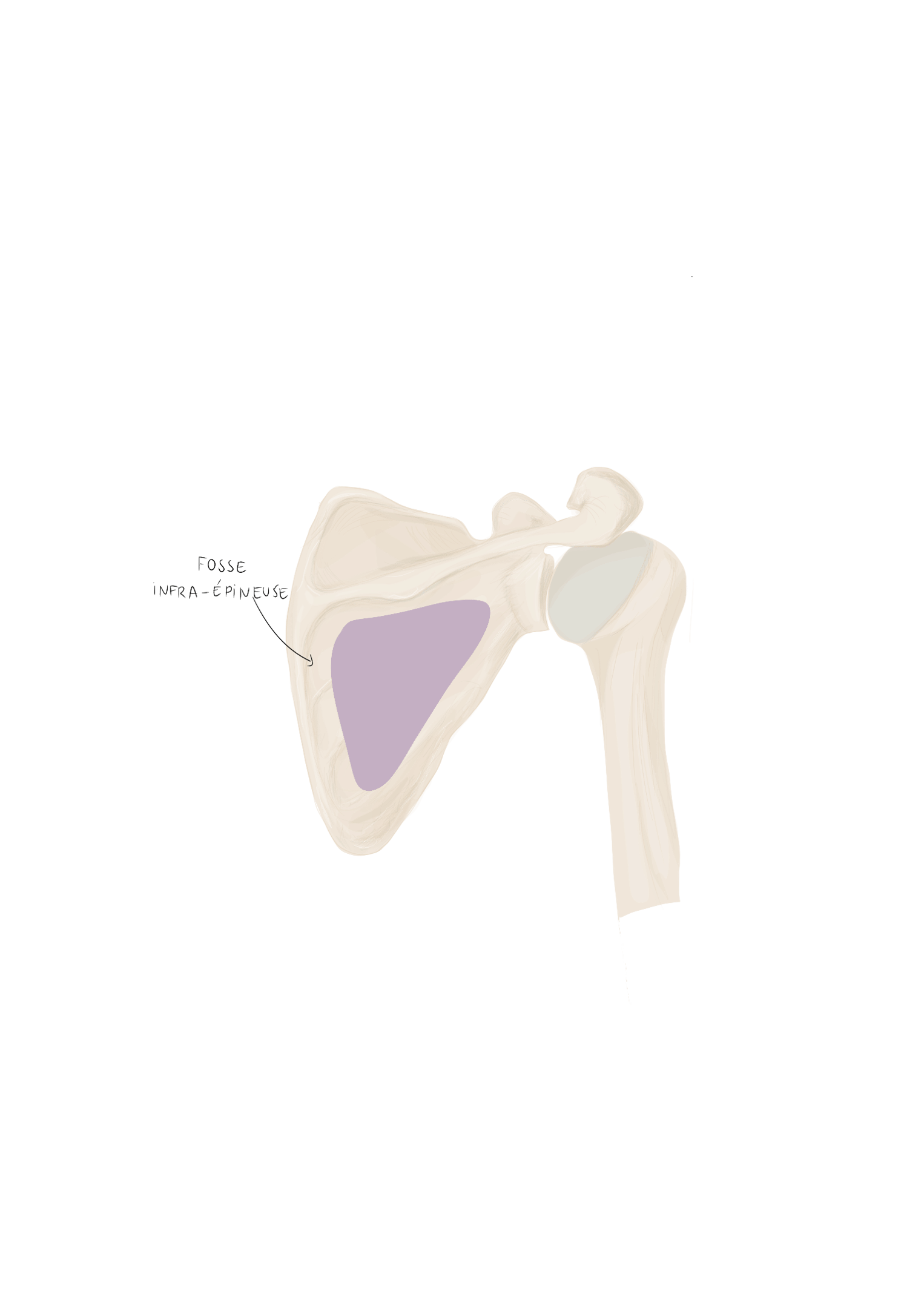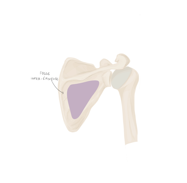 Le tendon est aplati et apparaît au milieu de la fosse infra-épineuse