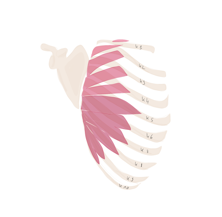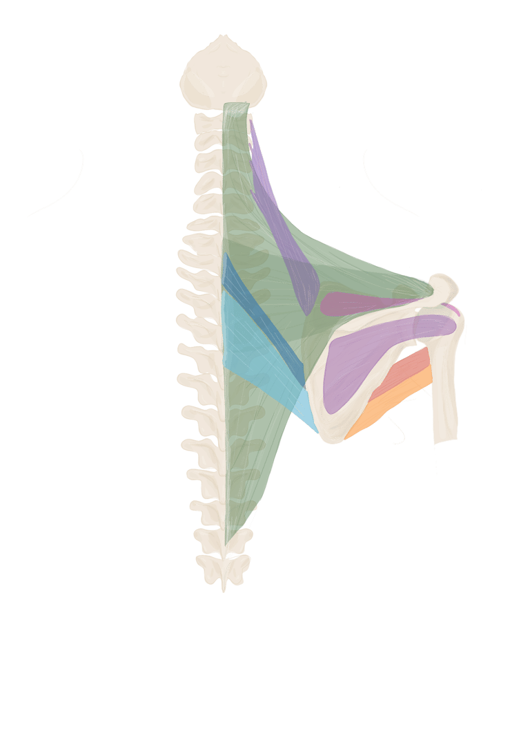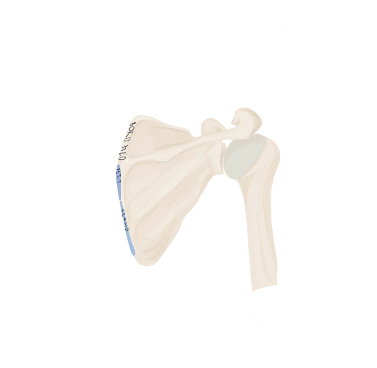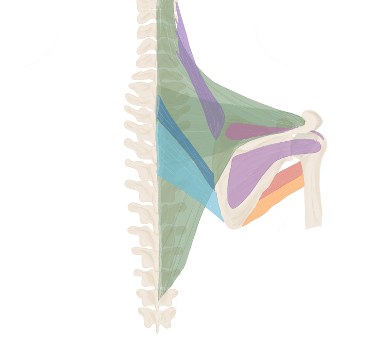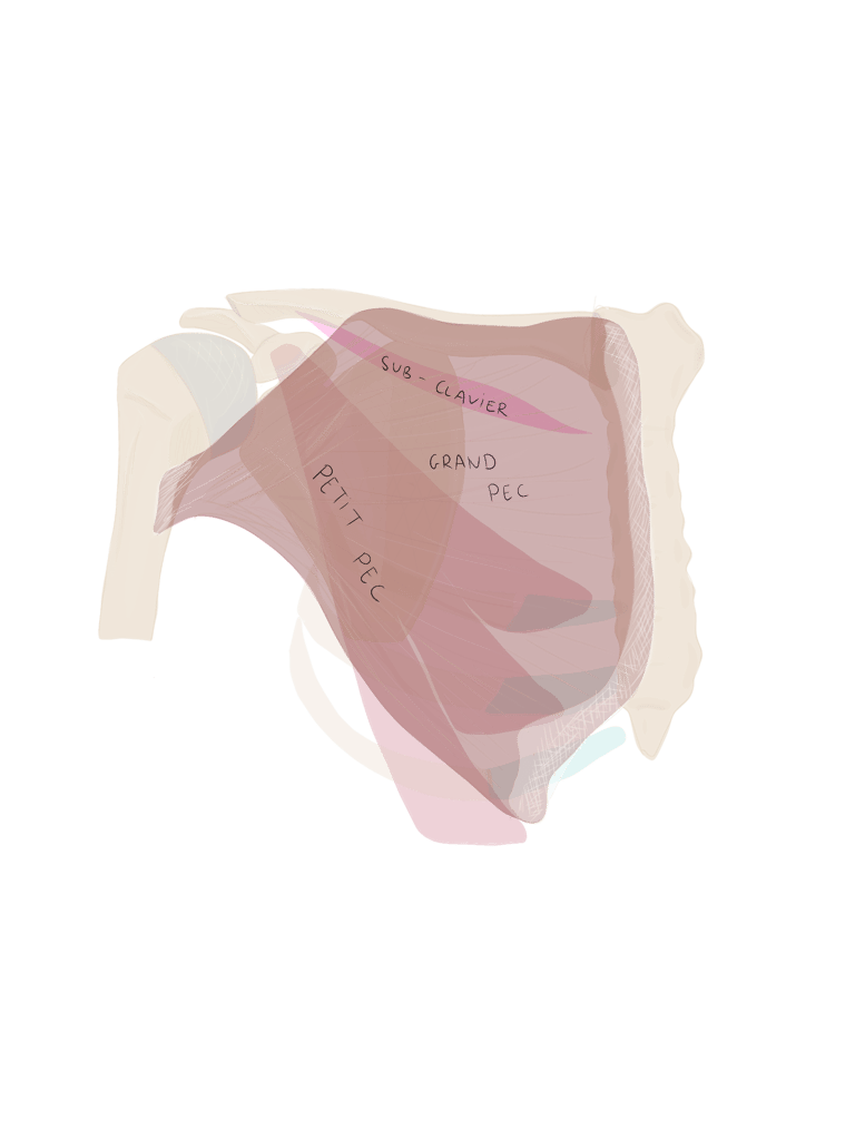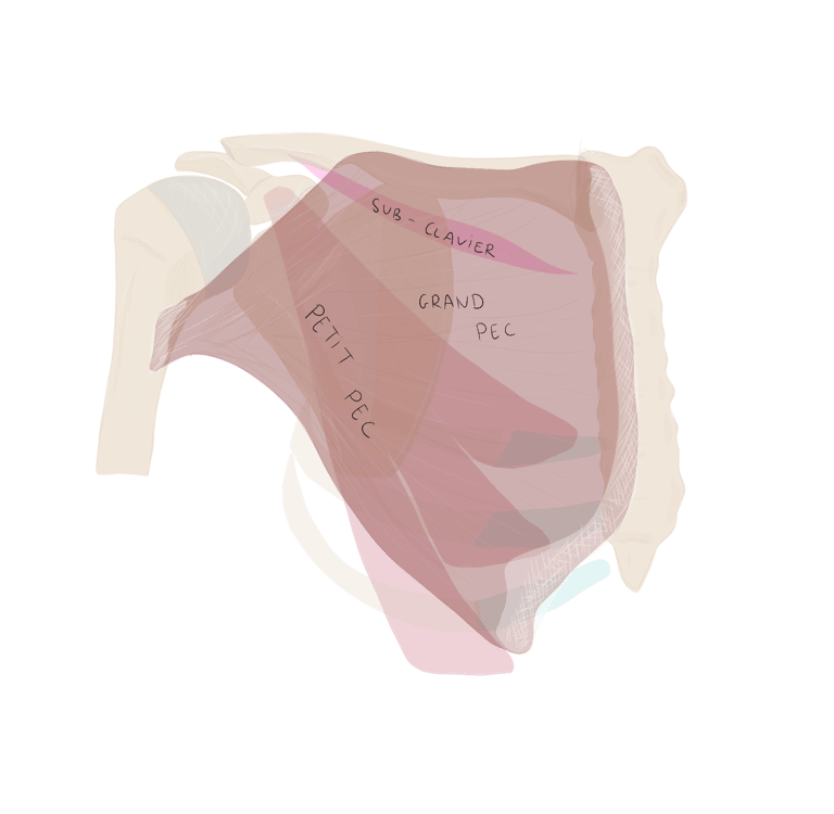 en avant : plan de glissement scapulo-thoracique, dentelé, antérieur