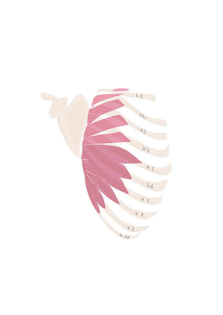 En bas : insertion du dentelé antérieur et de l’oblique externe