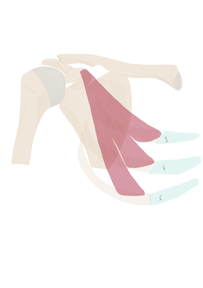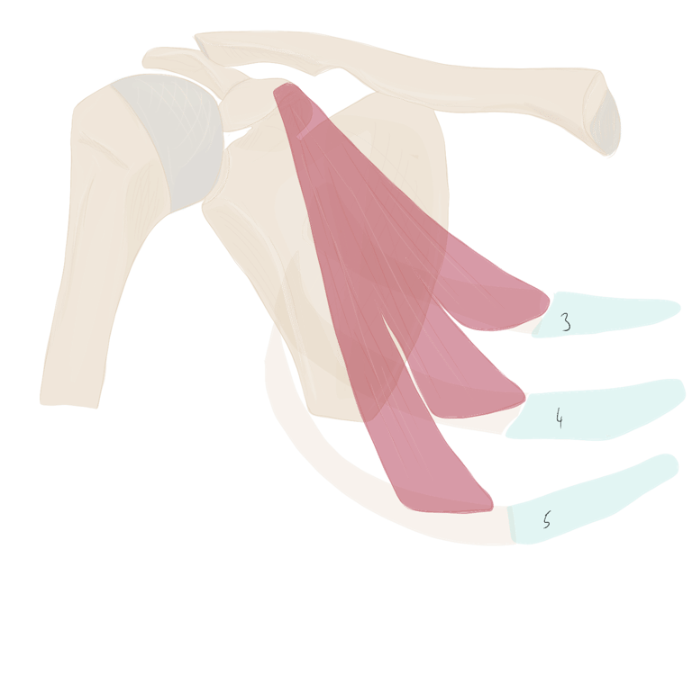 Bord supérieur de la face externe de la 3ᵉ, 4ᵉ, 5ᵉ cotes, proche du cartilage costal