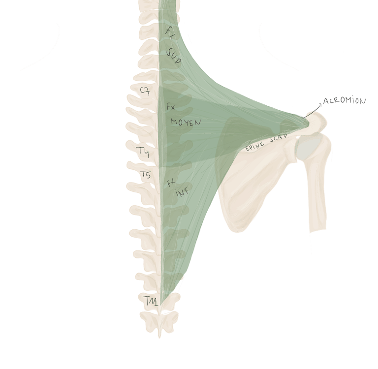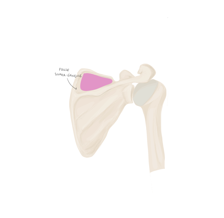 sur les 3/4 interne de la fosse supra -épineuse et la partie interne de l’aponévrose qui le recouvre