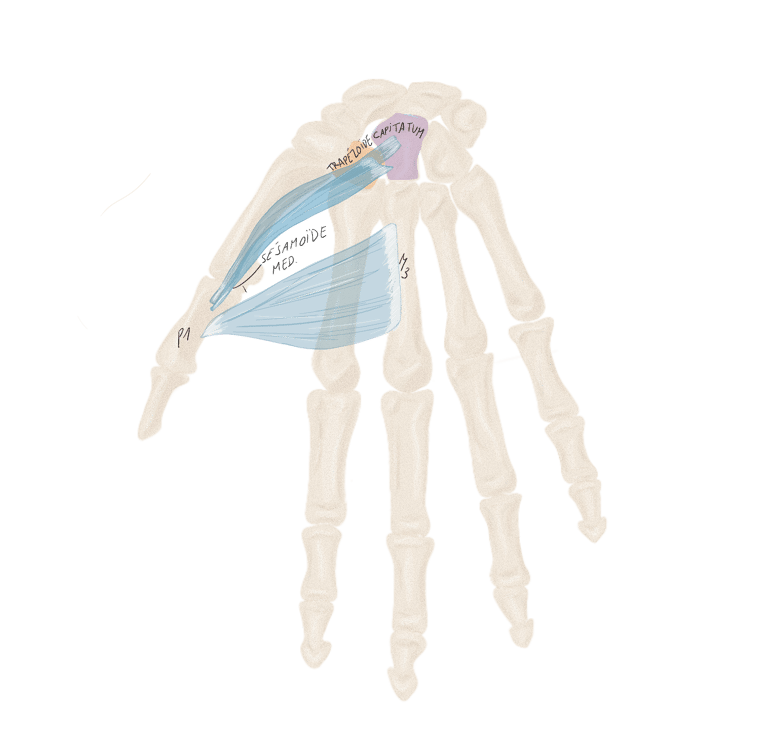 En stabilisant P1, ils permettent l’action des fléchisseurs et des extenseurs des doigts sur les phalanges distales